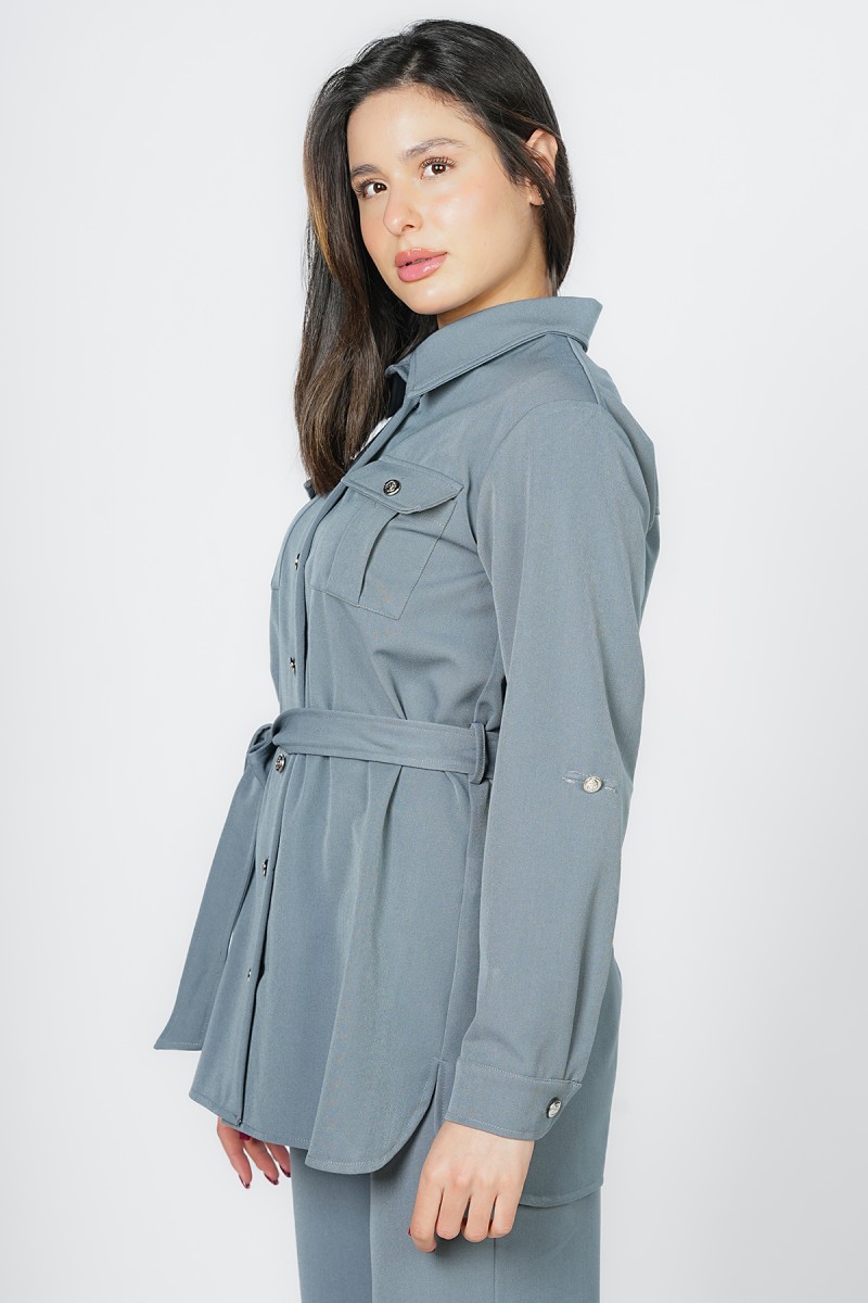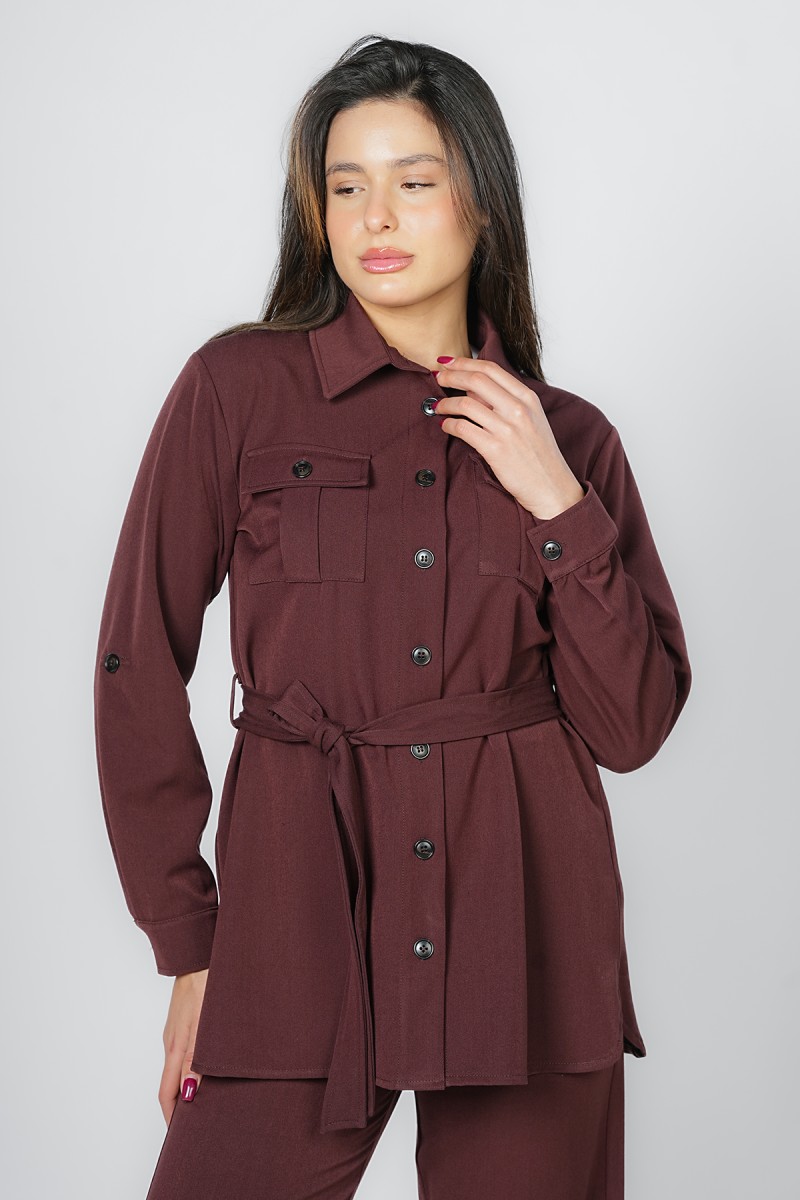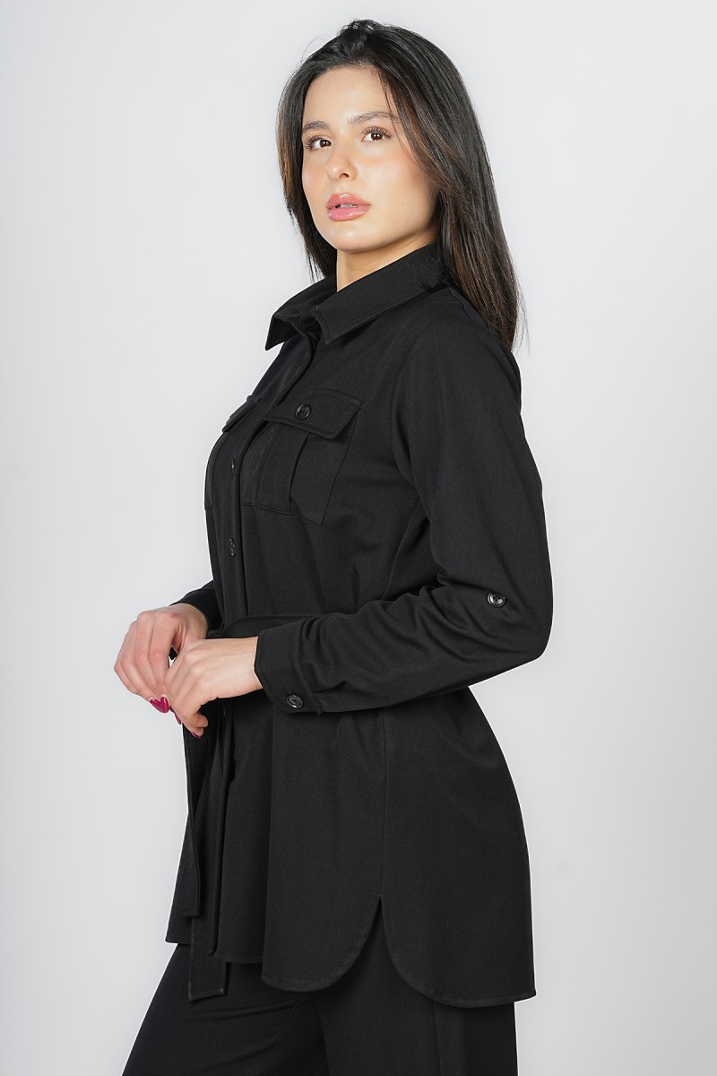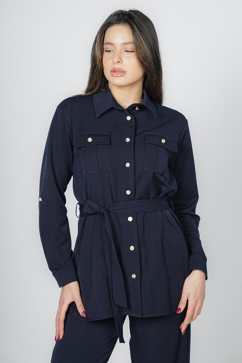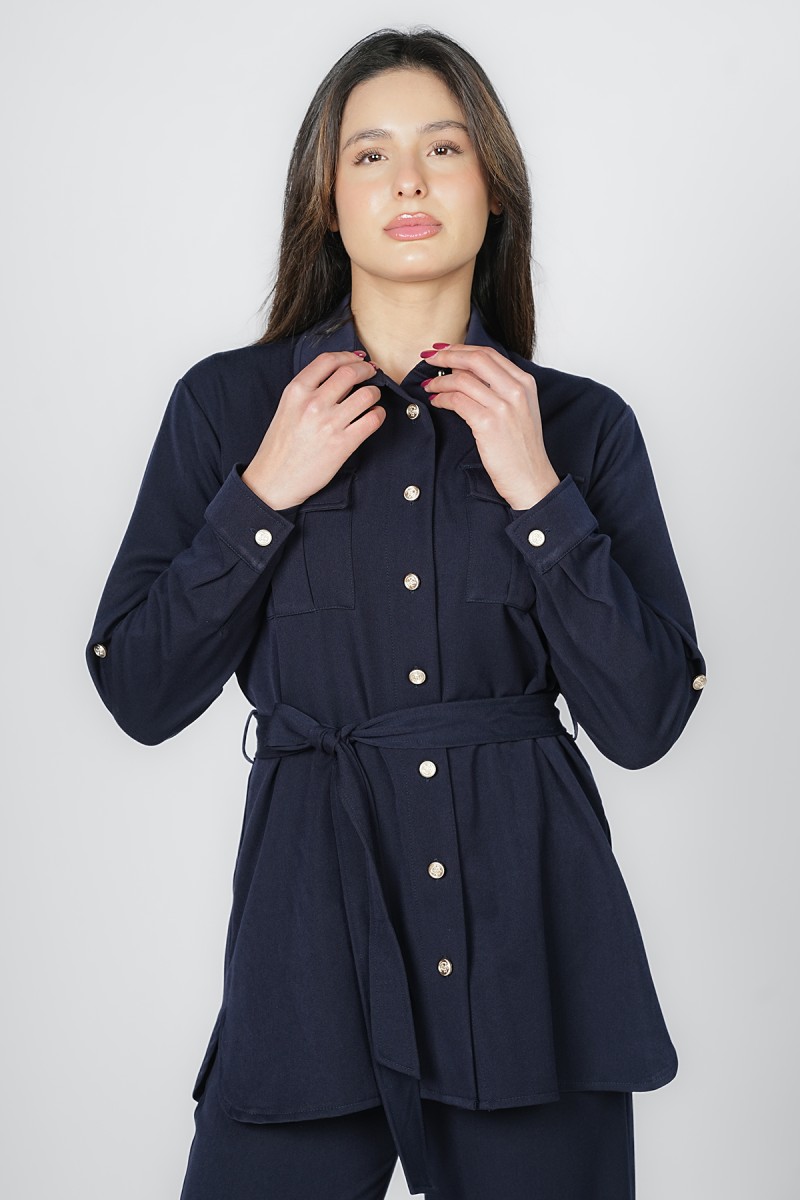 Affirmez votre style avec cette chemise longue ajustée. Dotée d'une ceinture à nouer pour marquer la taille et de poches poitrine structurées, elle offre une allure moderne et polyvalente. Idéale pour un look professionnel ou décontracté chic