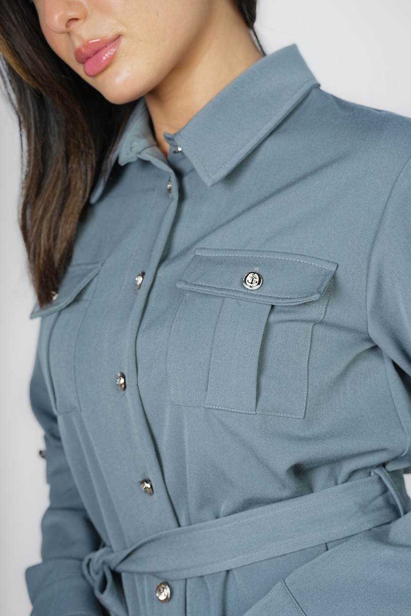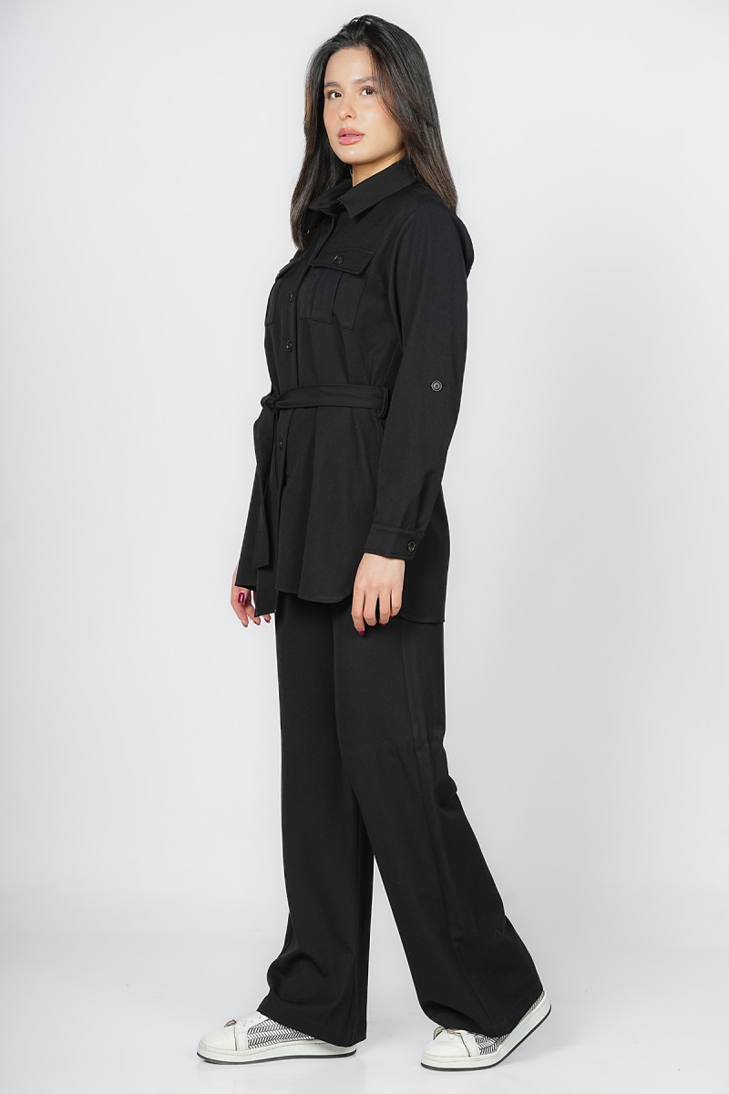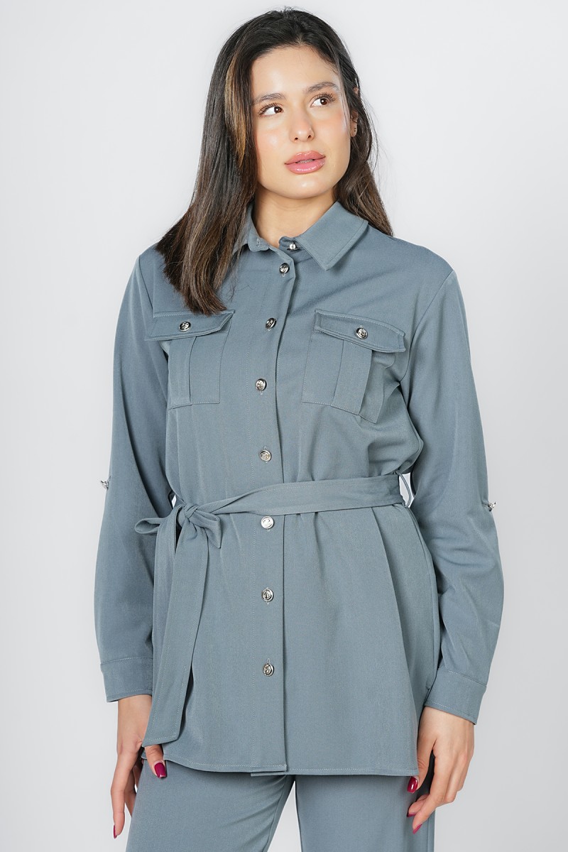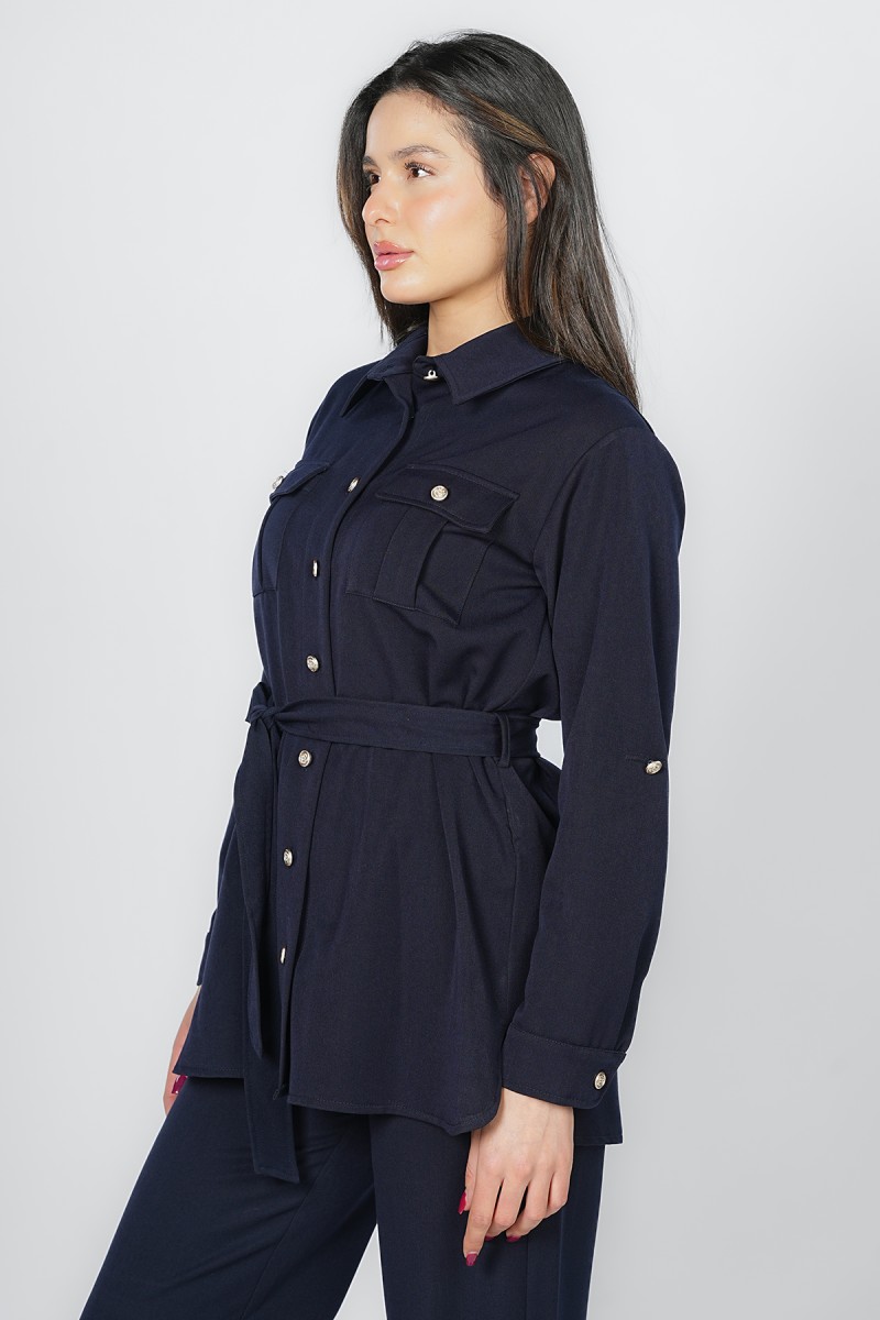 Affirmez votre style avec cette chemise longue ajustée. Dotée d'une ceinture à nouer pour marquer la taille et de poches poitrine structurées, elle offre une allure moderne et polyvalente. Idéale pour un look professionnel ou décontracté chic