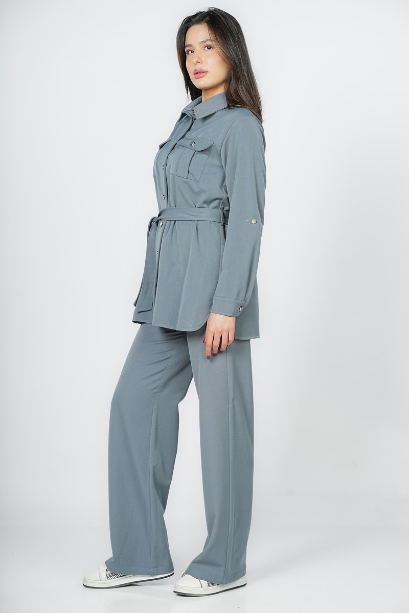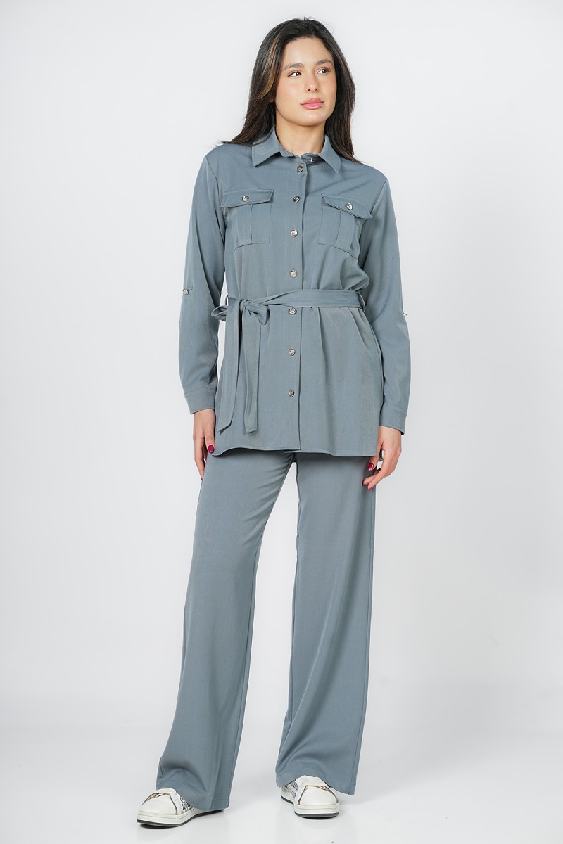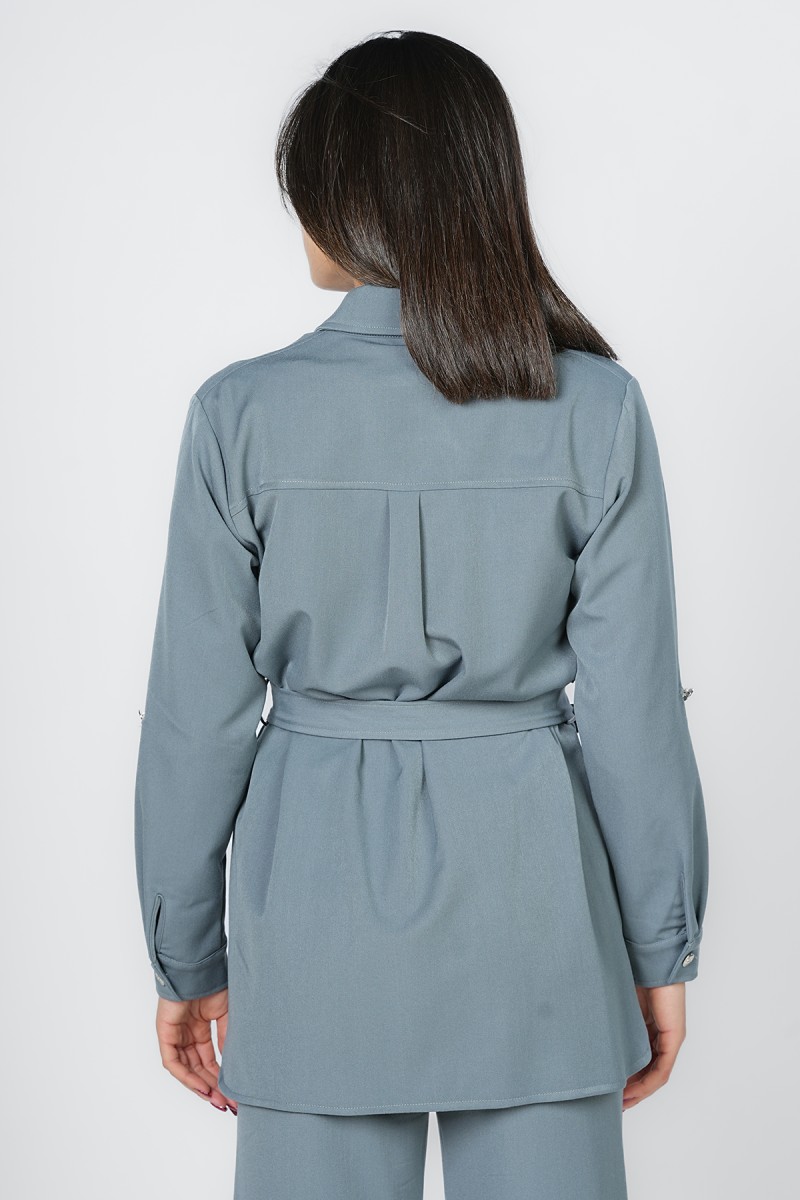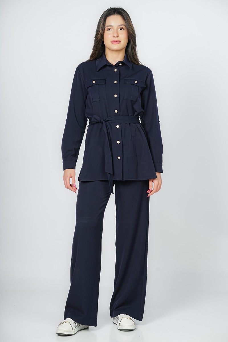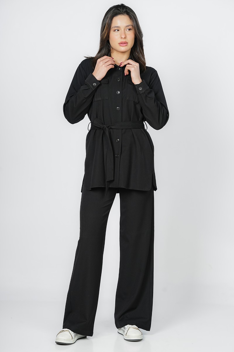 Affirmez votre style avec cette chemise longue ajustée. Dotée d'une ceinture à nouer pour marquer la taille et de poches poitrine structurées, elle offre une allure moderne et polyvalente. Idéale pour un look professionnel ou décontracté chic
