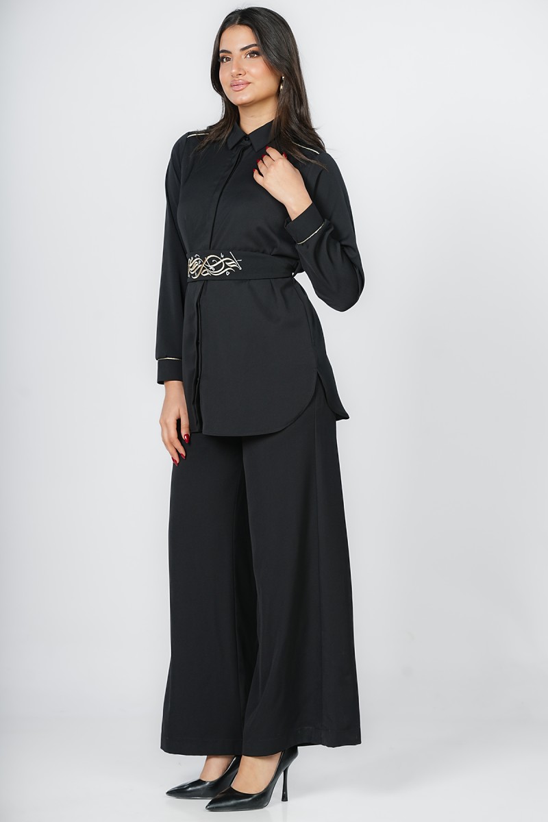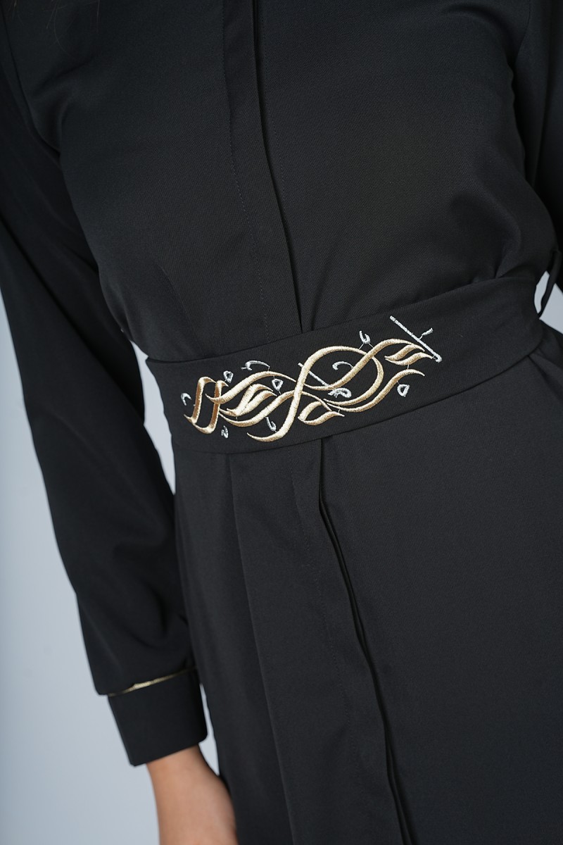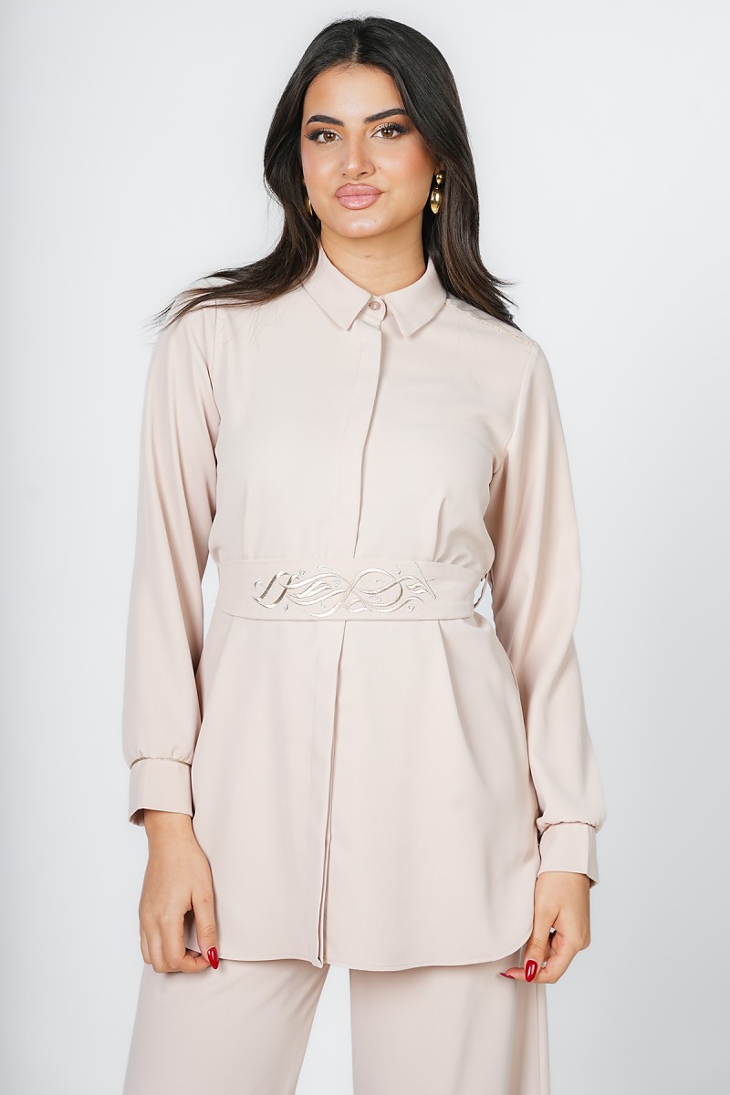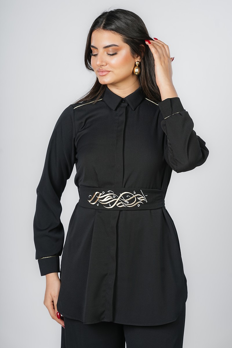 Accueil > Chemises > Chemisier Long à Ceinture Brodée Calligraphie