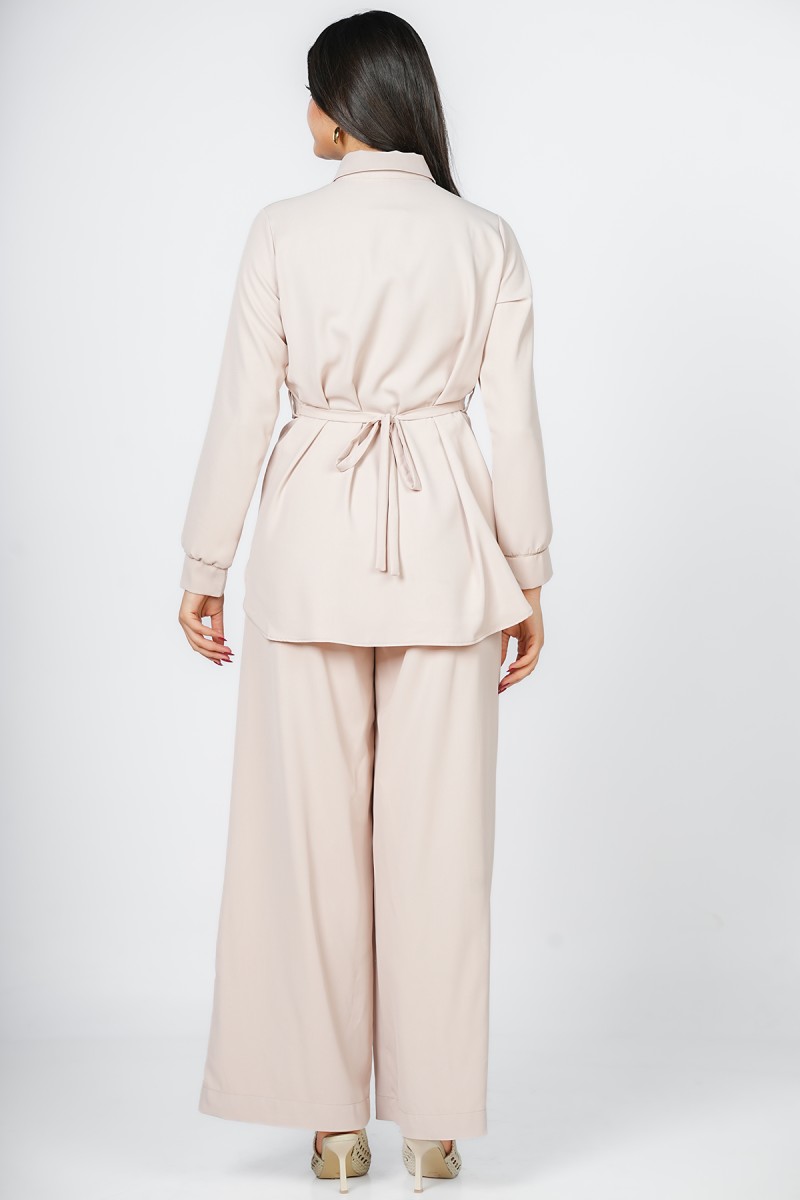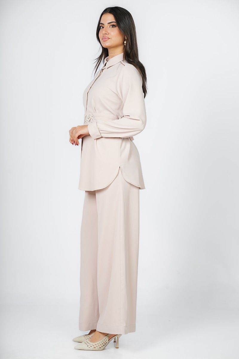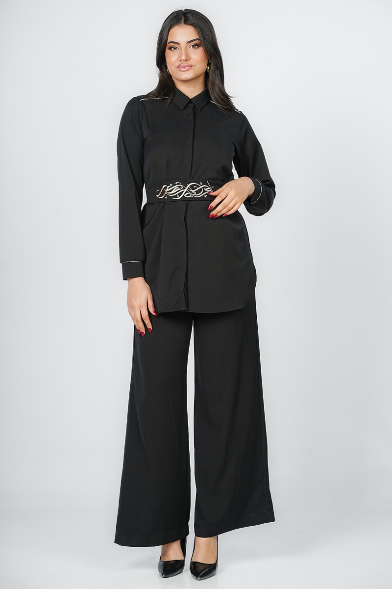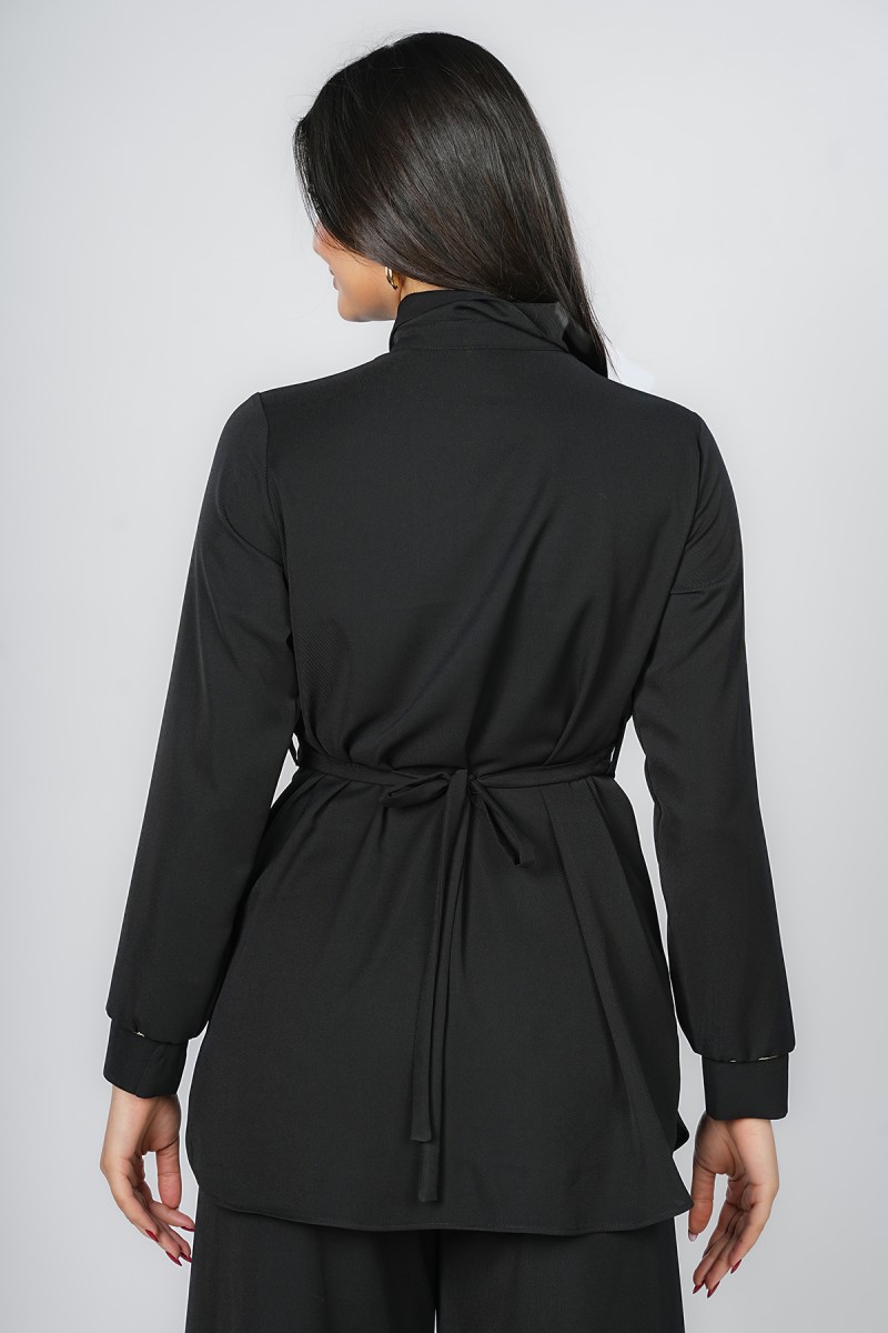 Accueil > Chemises > Chemisier Long à Ceinture Brodée Calligraphie