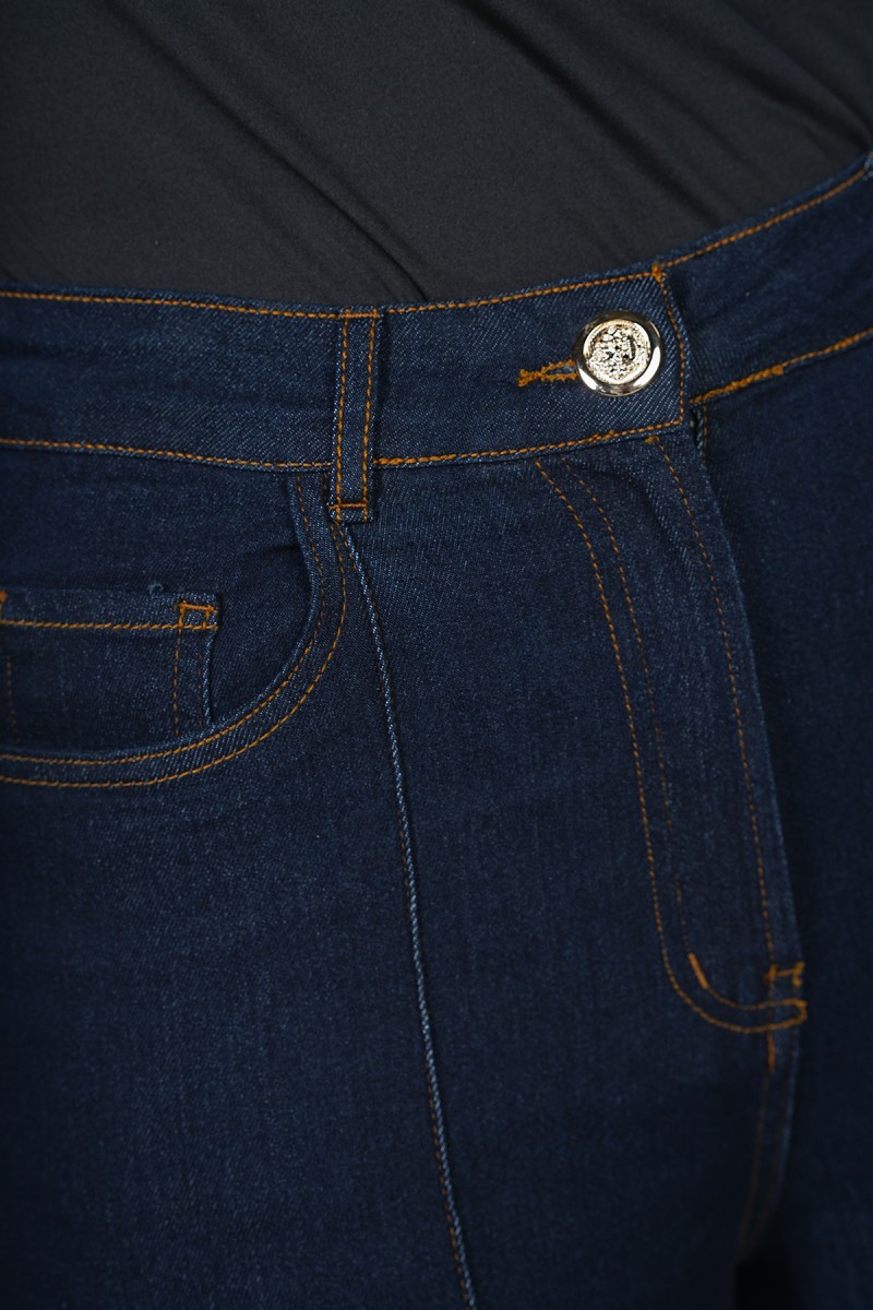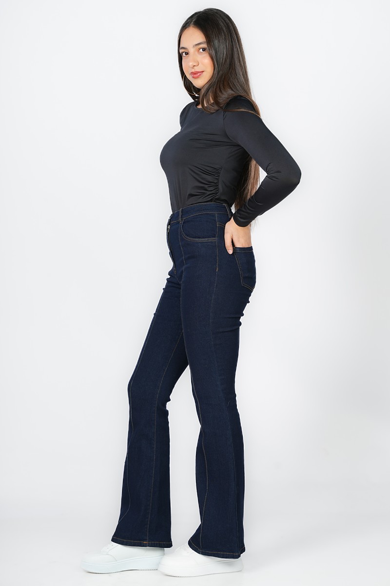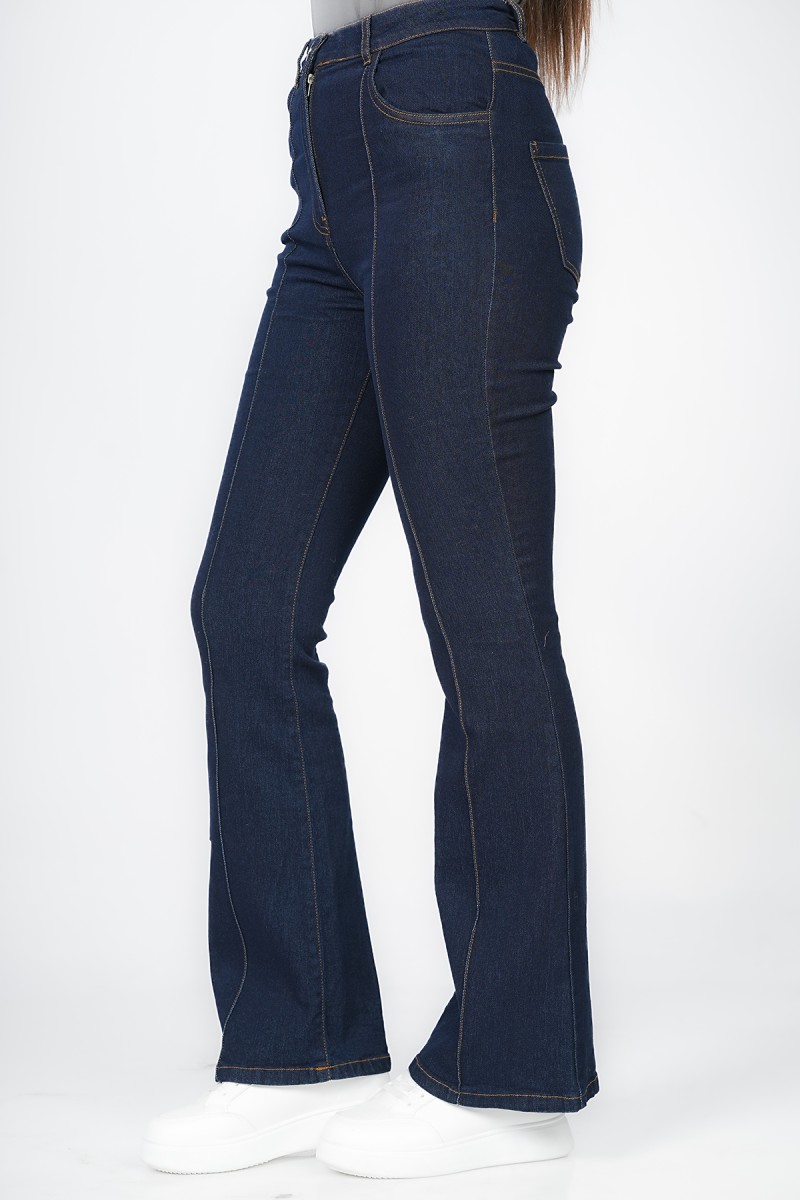 Sublimez votre silhouette avec ce jean flare à taille haute. Sa coupe évasée iconique et ses coutures verticales structurantes sur le devant allongent la jambe pour un look rétro-moderne irrésistible. L'alliance parfaite du style et de la structure.