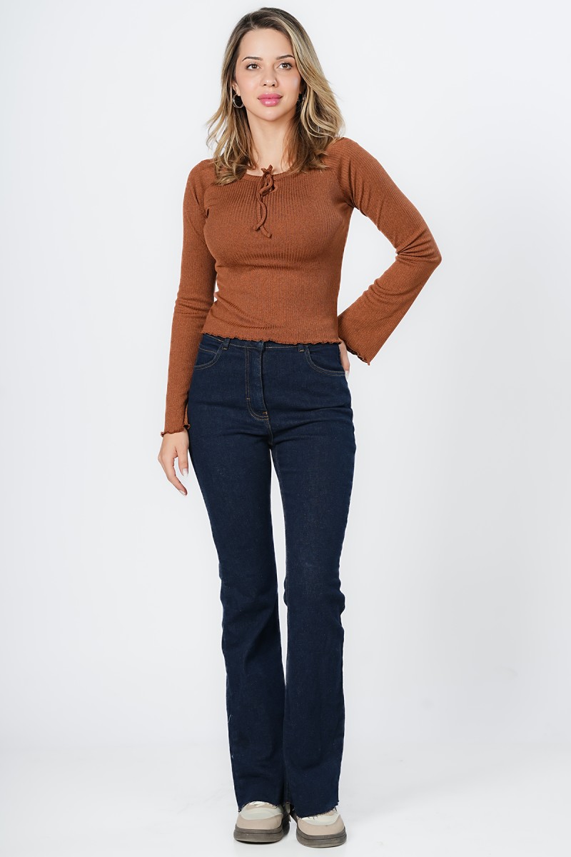 Jean flare taille haute, confortable et tendance, ce jean met en valeur la silhouette avec sa coupe évasée et sa finition brute. Parfait pour un look moderne et casual.