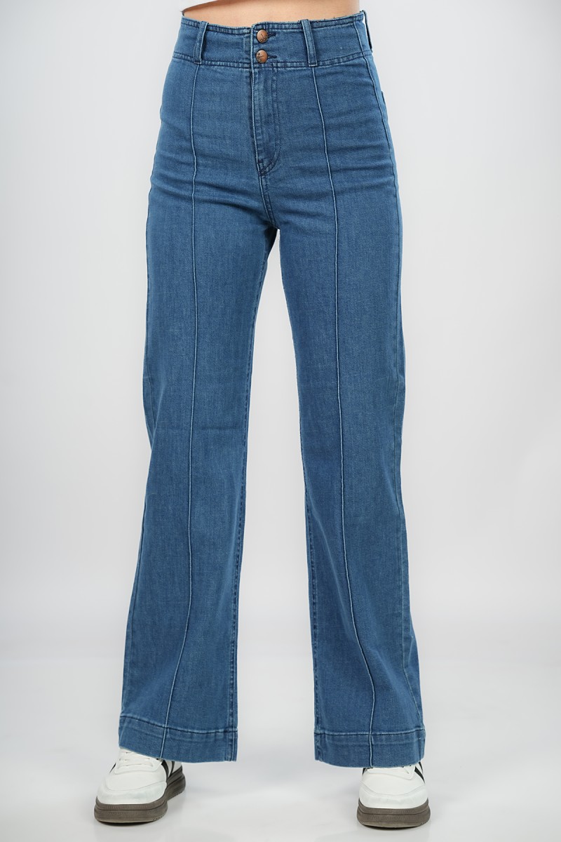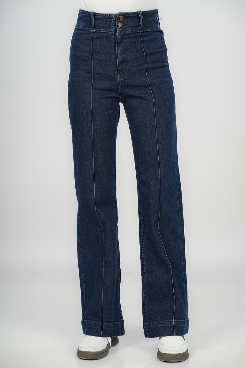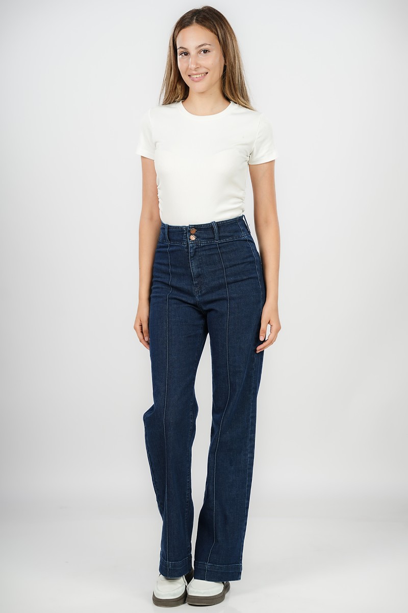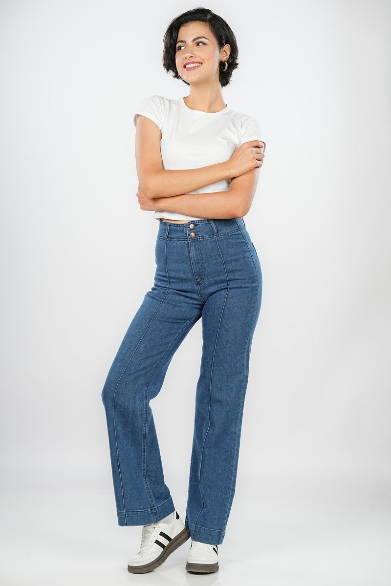 Jean taille haute à coupe straight avec nervure sur le devant, classique et intemporel, alliant confort et style au quotidien.