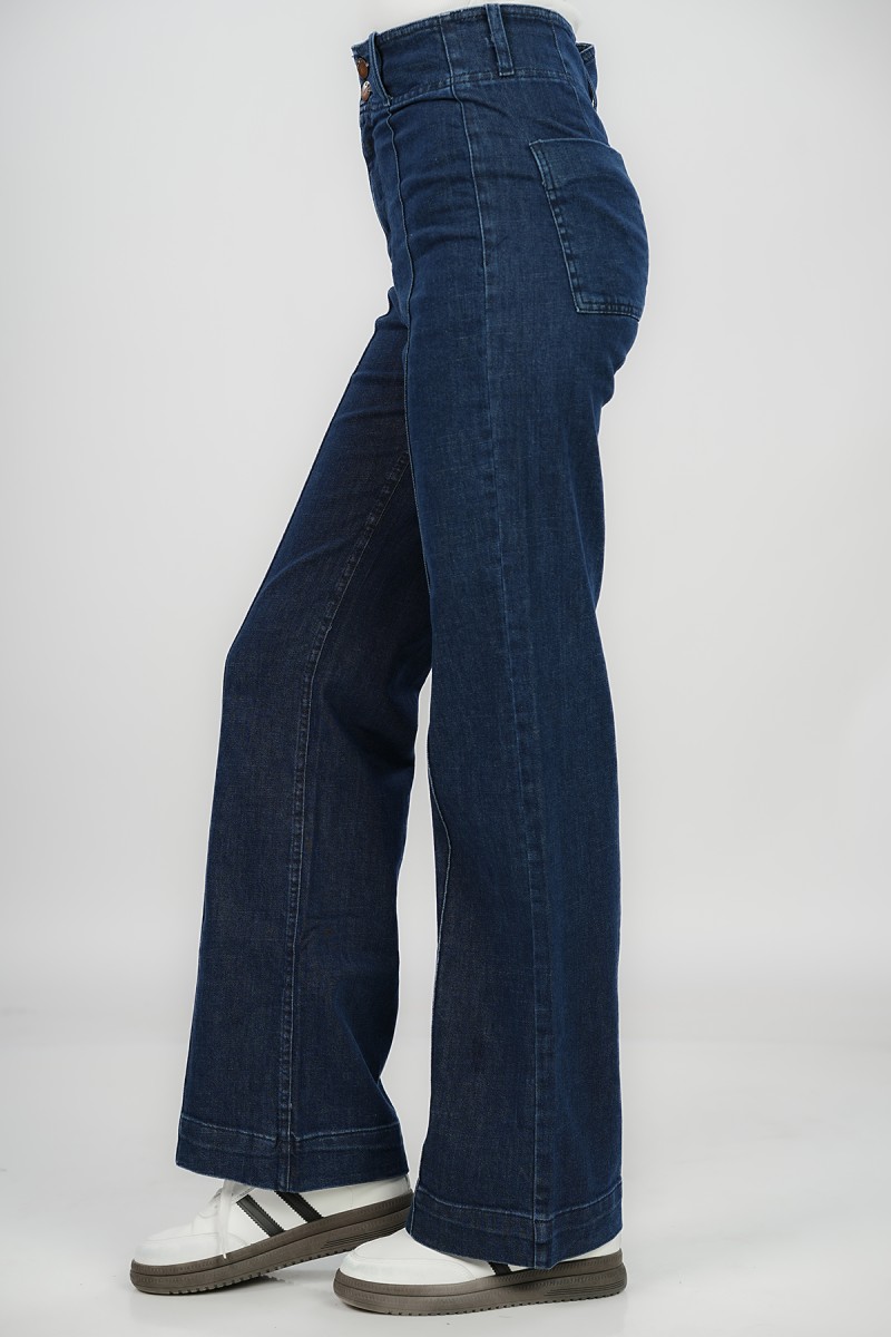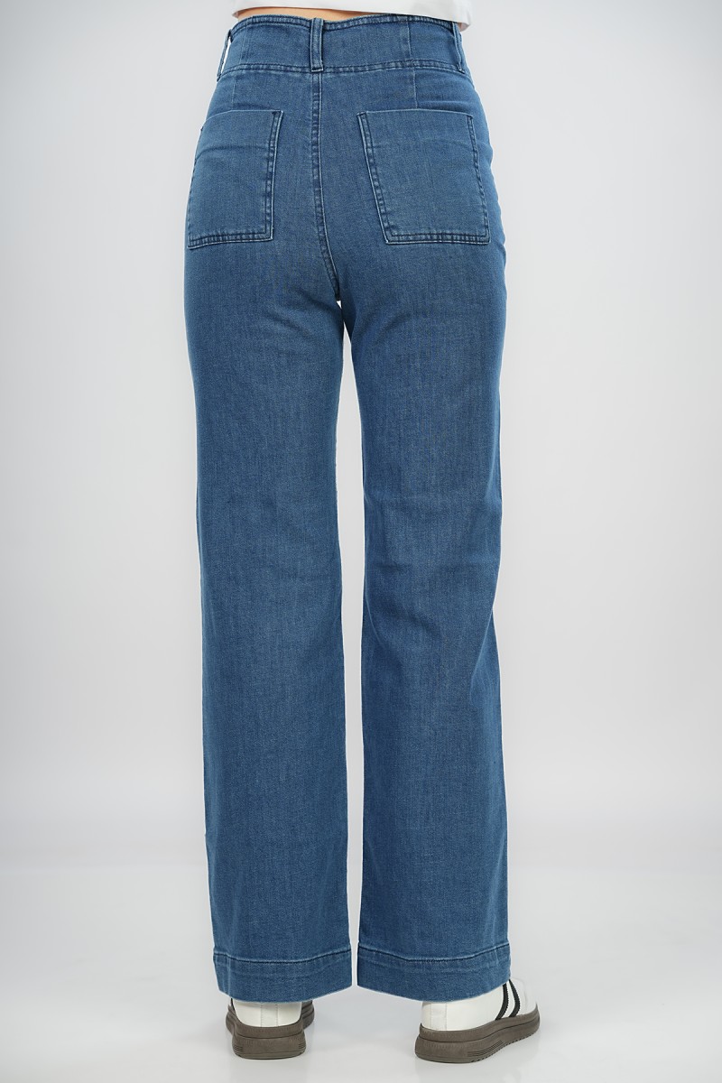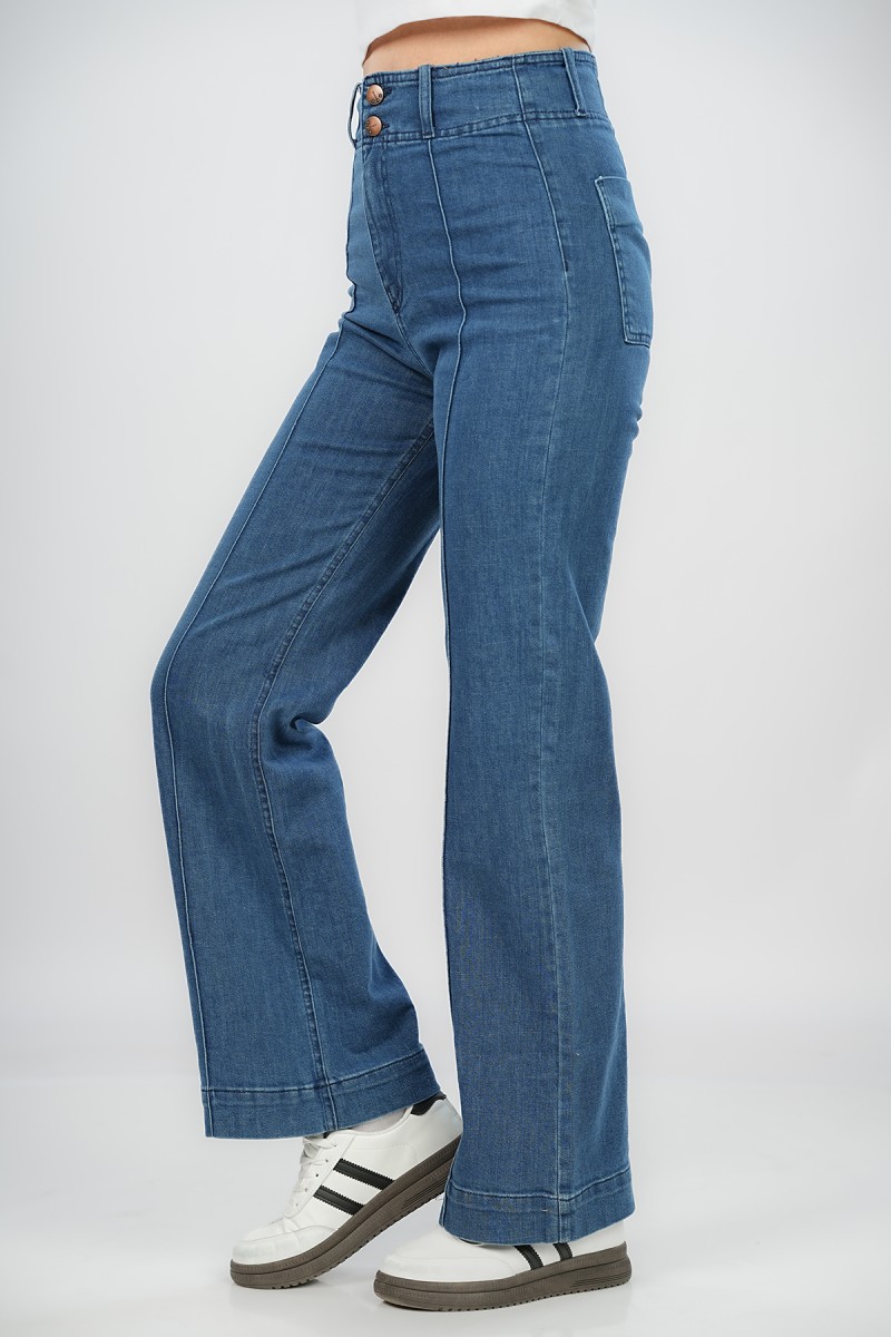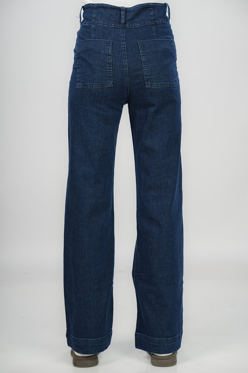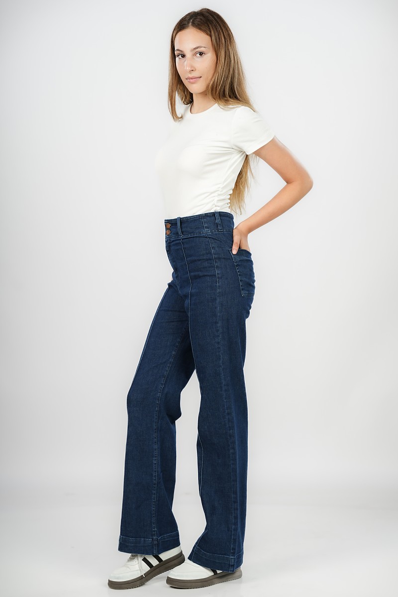 Jean taille haute à coupe straight avec nervure sur le devant, classique et intemporel, alliant confort et style au quotidien.