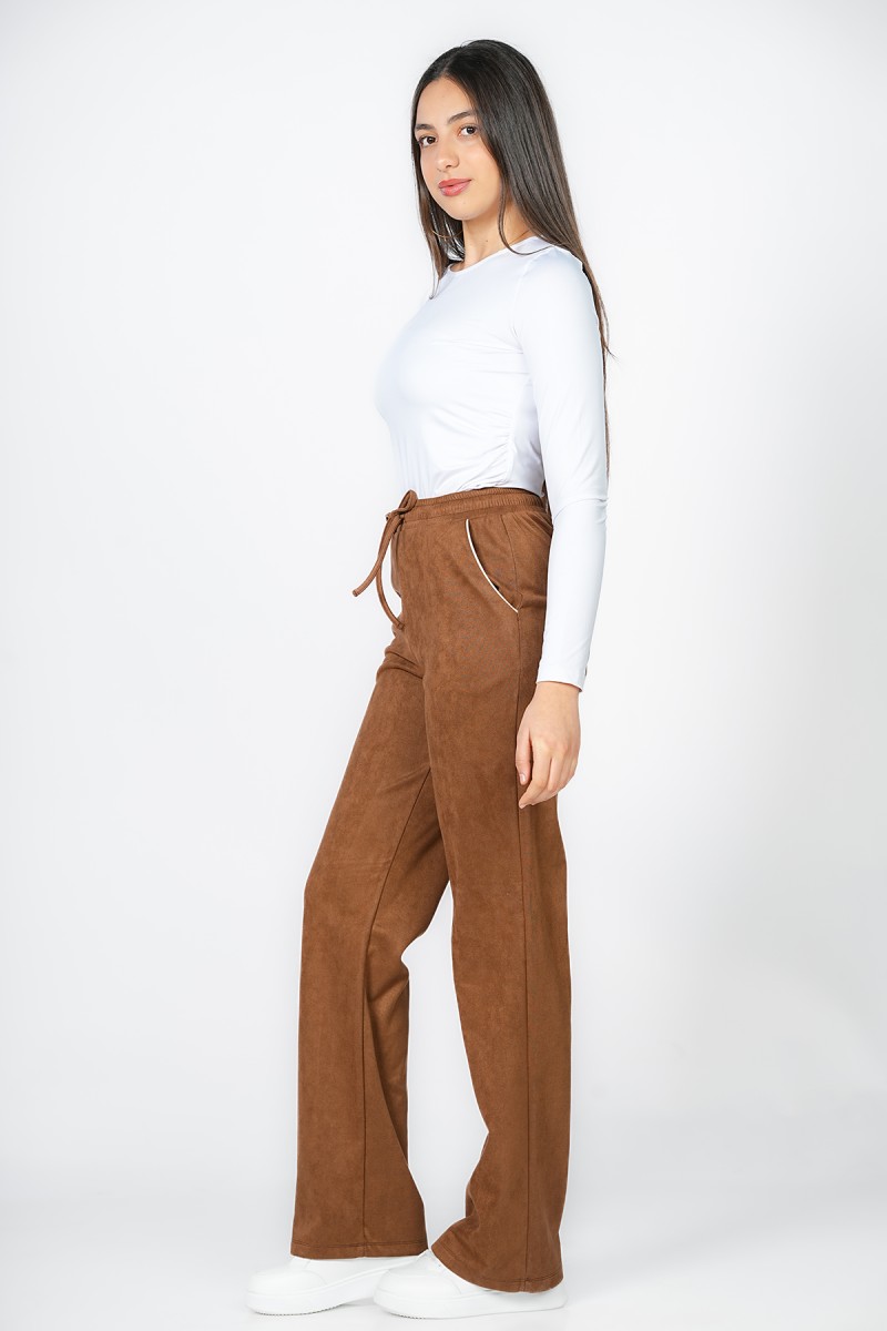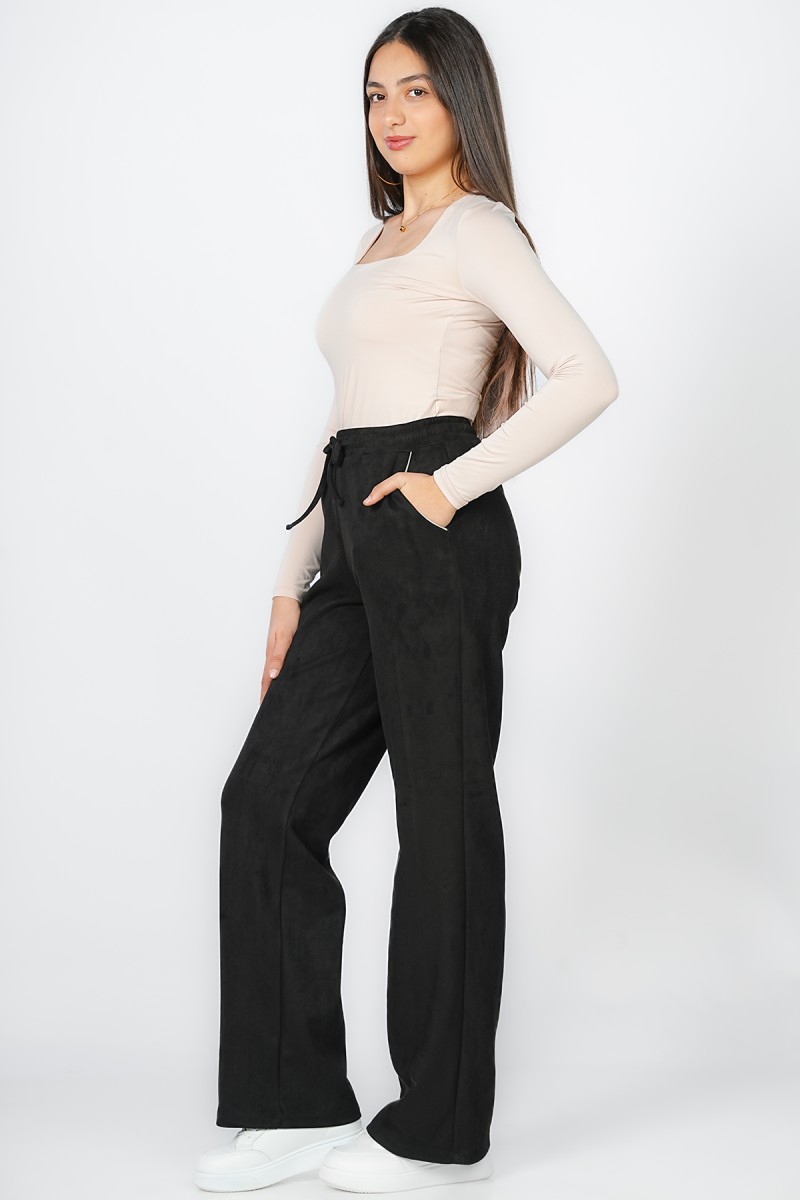 Alliez confort et style avec ce jogger en suédine au toucher ultra-doux. Sa taille élastiquée avec cordon de serrage et sa coupe droite offrent une silhouette moderne et décontractée. Un essentiel polyvalent pour vos moments de détente ou vos sorties citadines.
