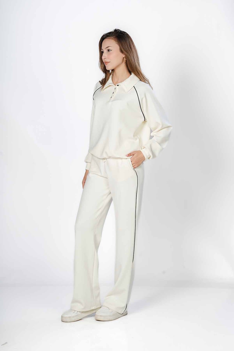 Pantalon confortable à taille élastique, doté de poches latérales pratiques. Sa coupe décontractée assure une aisance optimale, idéale pour un look moderne et facile à porter au quotidien