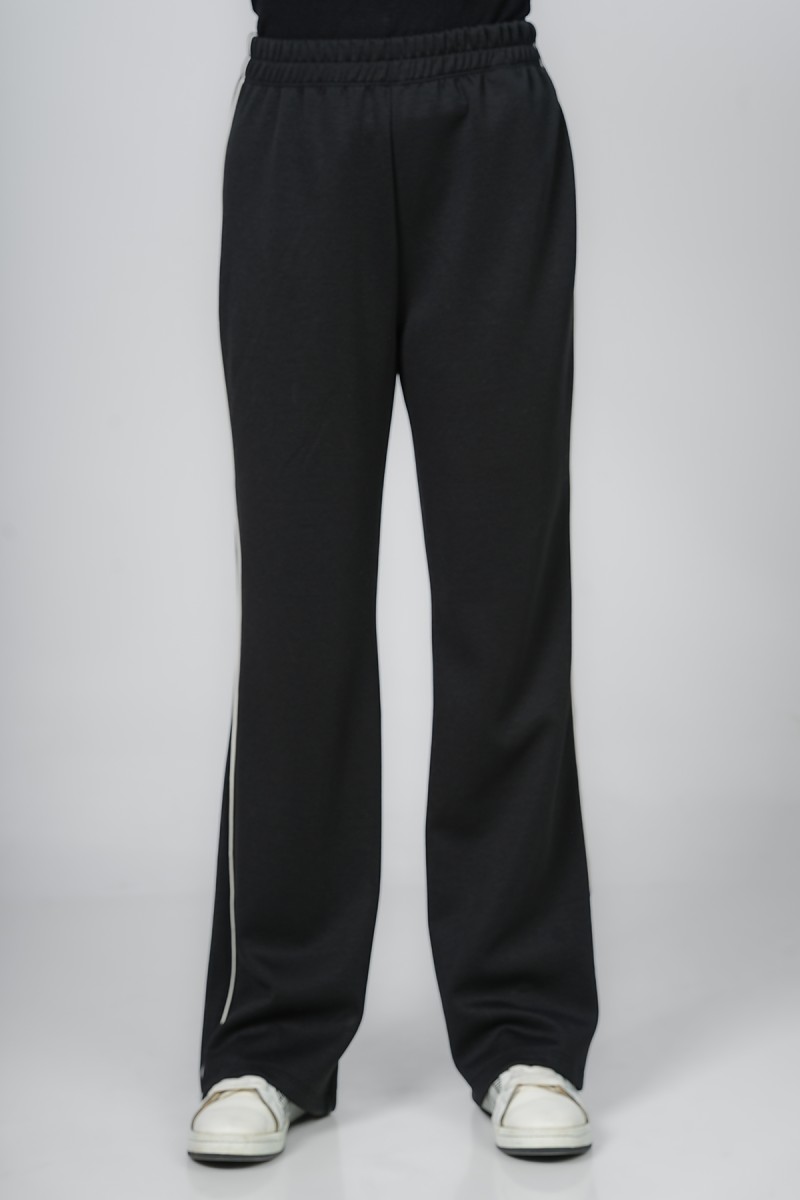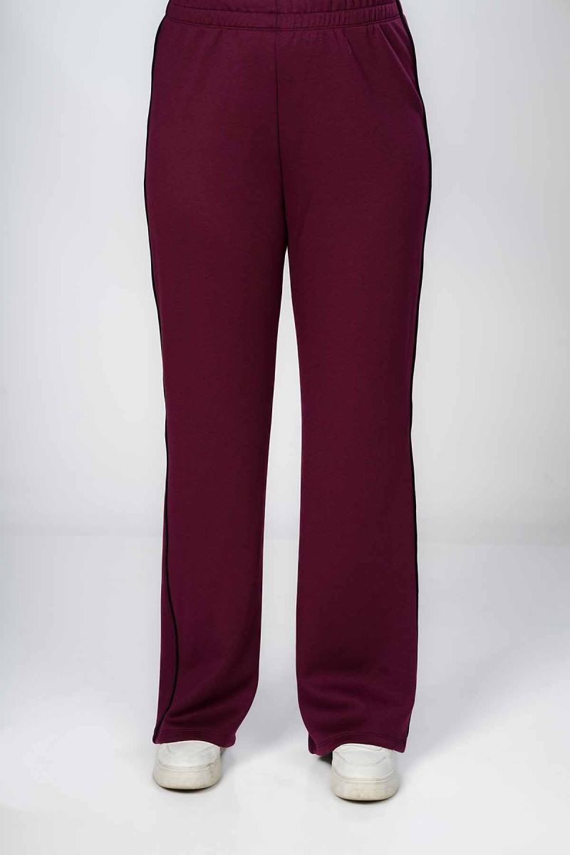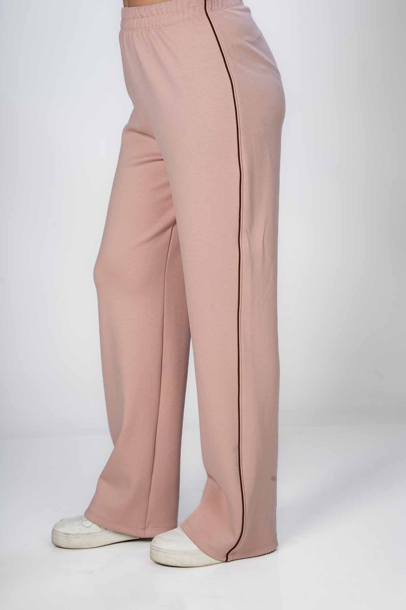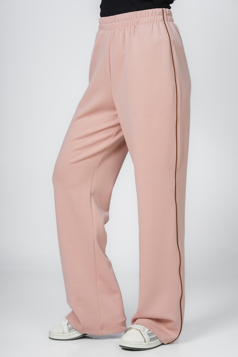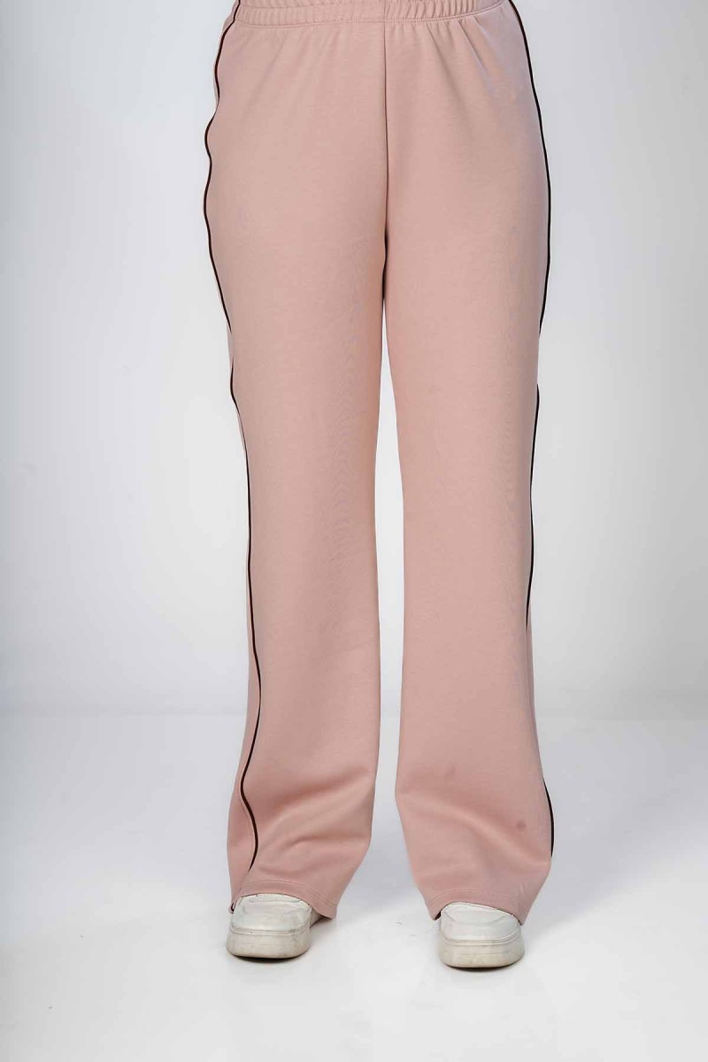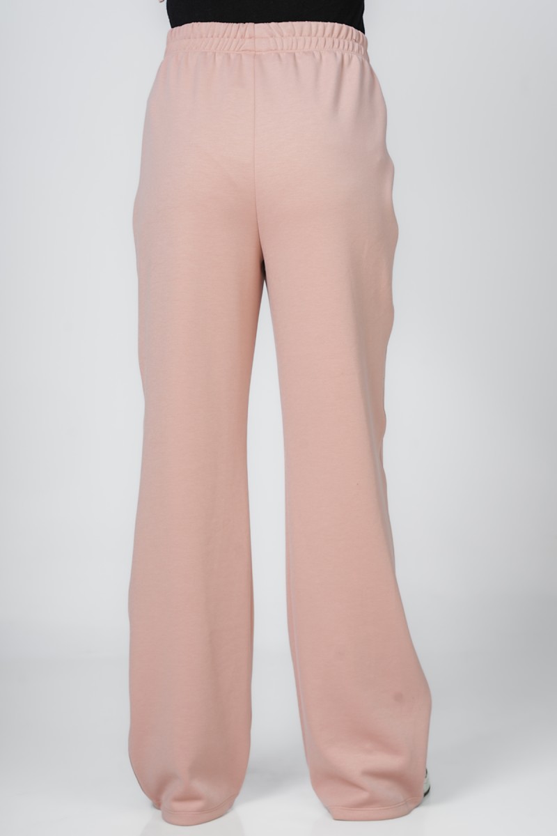 Ceci est un pantalon jogger avec une coupe ample et confortable au niveau des cuisses. Il présente une taille entièrement élastiquée et des chevilles resserrées. La coupe est légèrement fuselée et la matière semble être en molleton