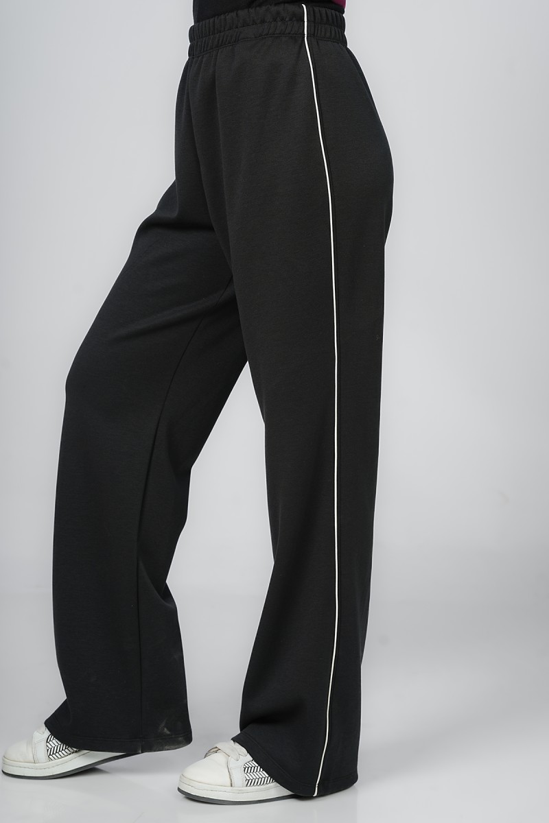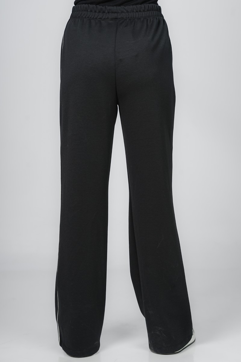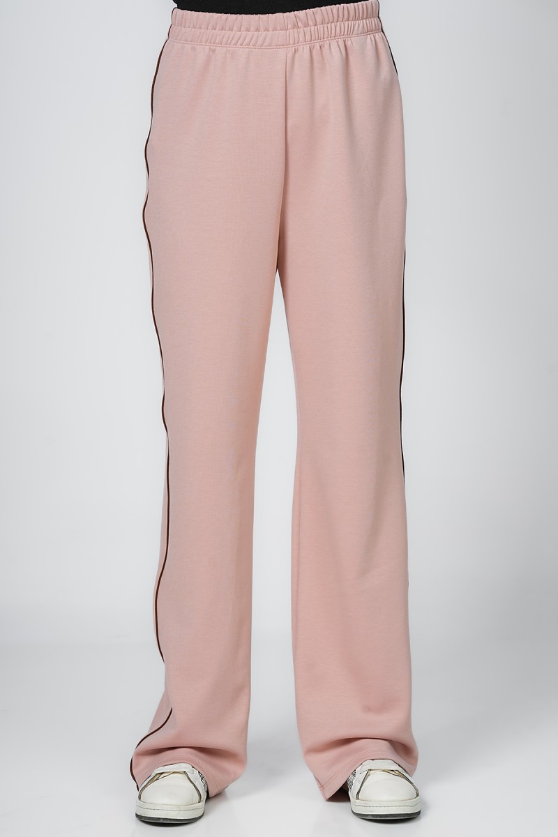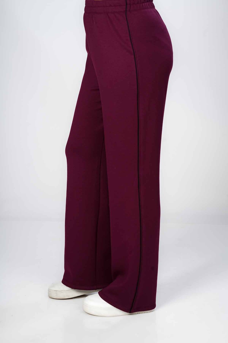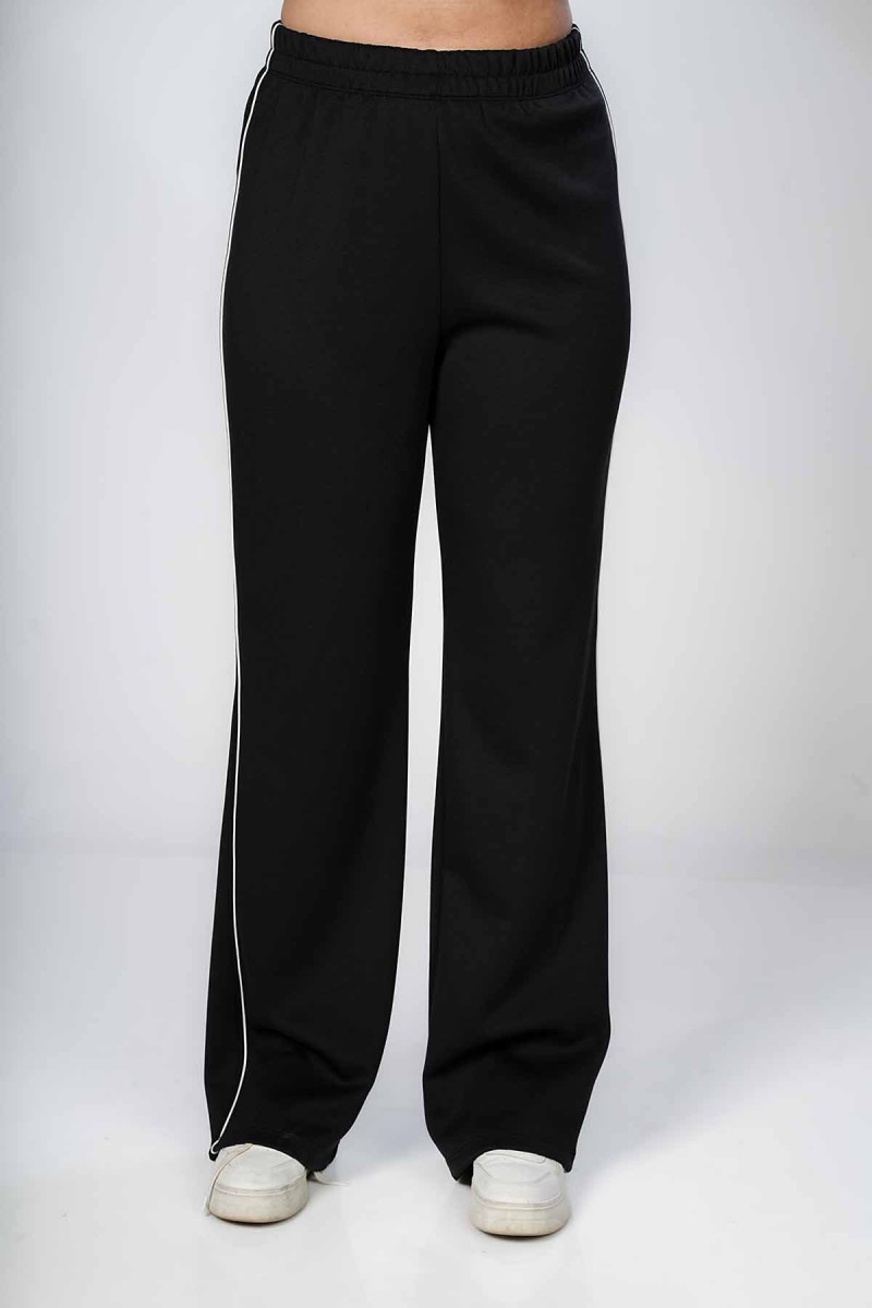 Ceci est un pantalon jogger avec une coupe ample et confortable au niveau des cuisses. Il présente une taille entièrement élastiquée et des chevilles resserrées. La coupe est légèrement fuselée et la matière semble être en molleton
