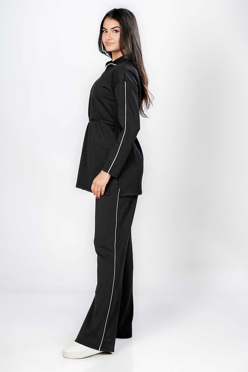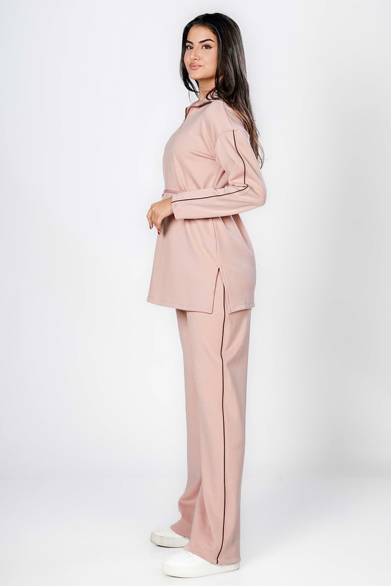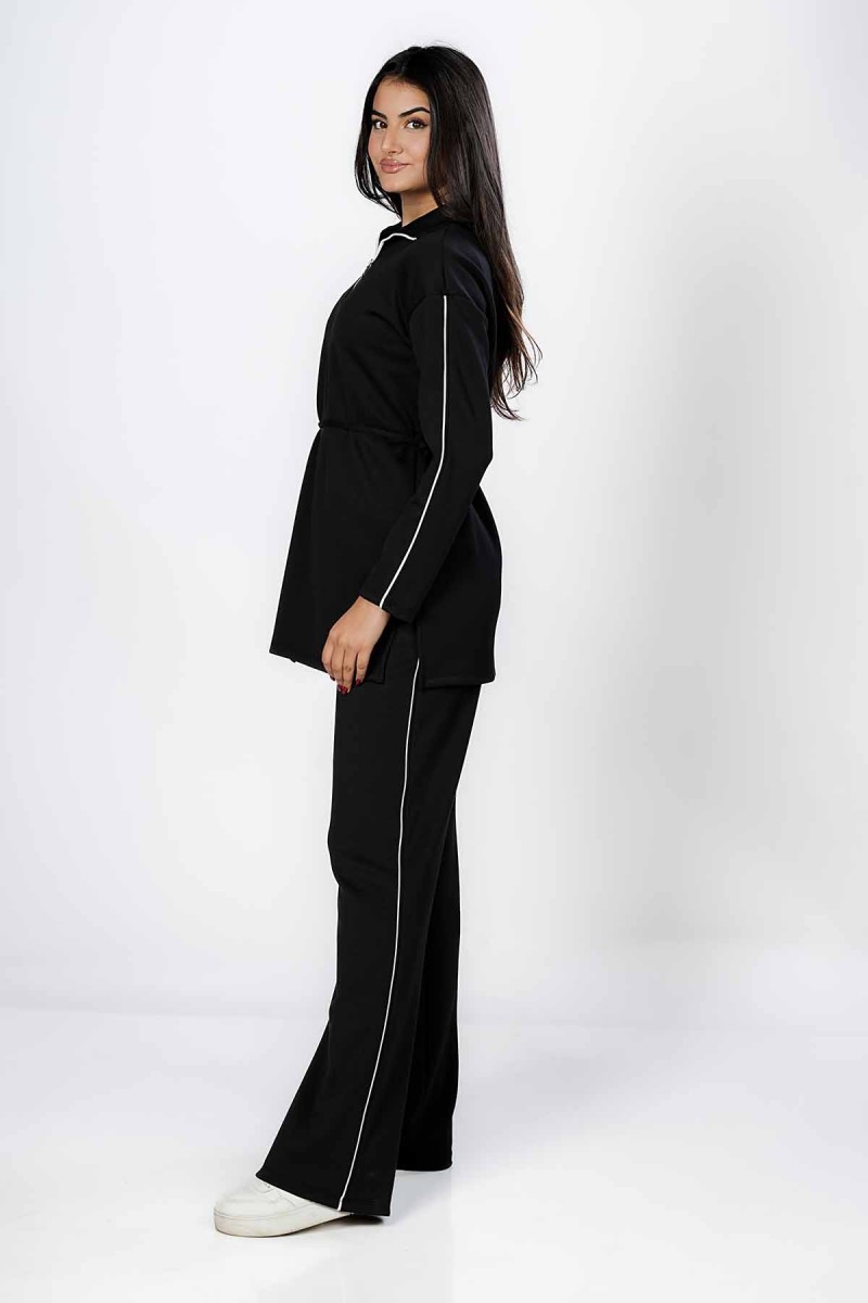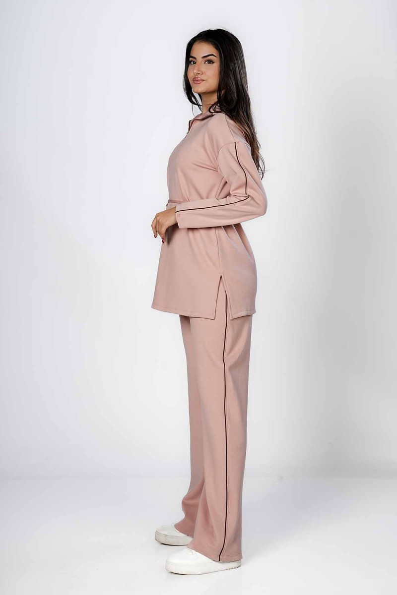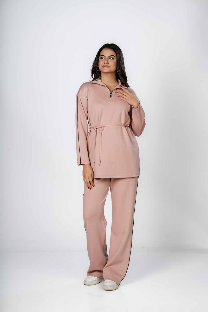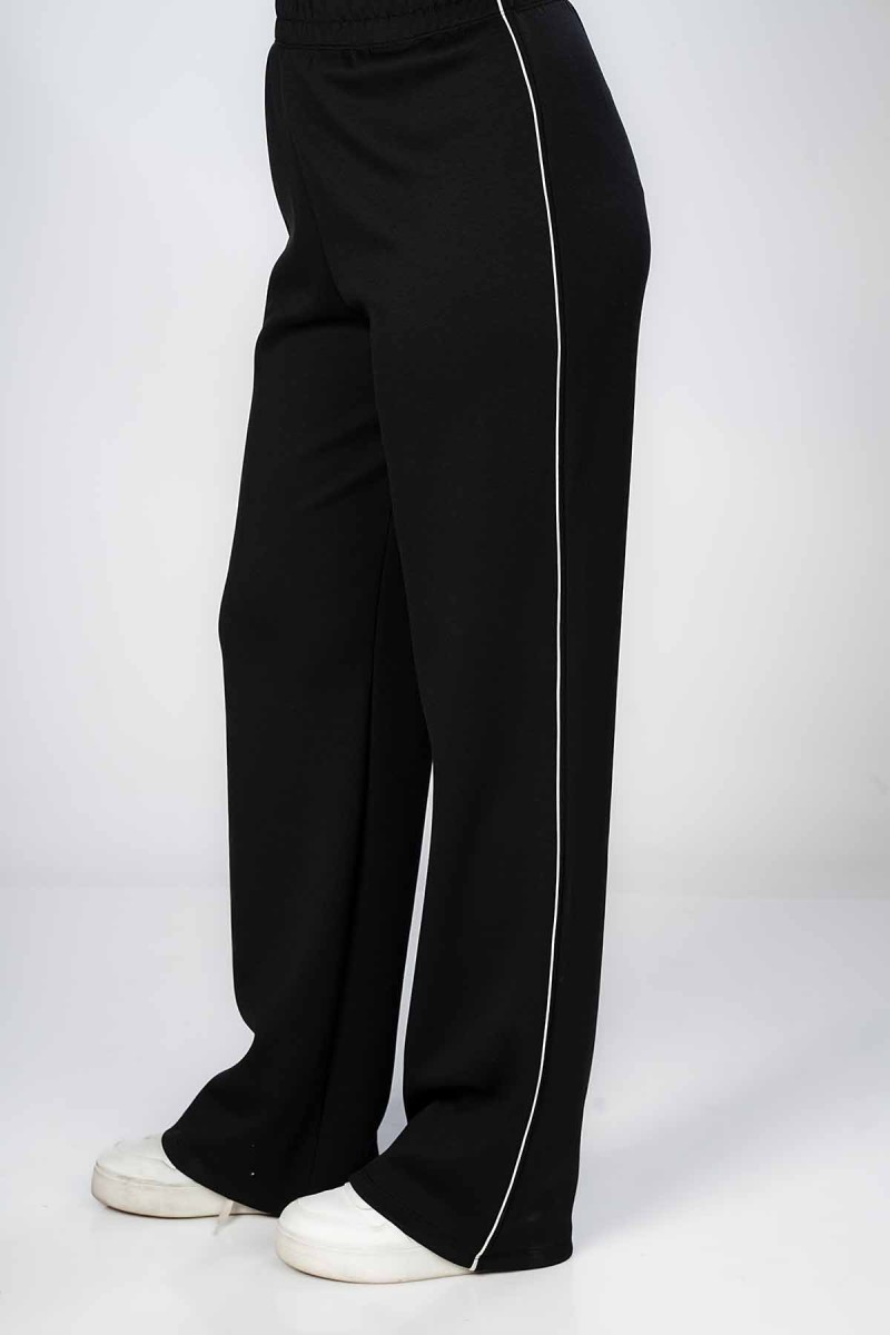 Ceci est un pantalon jogger avec une coupe ample et confortable au niveau des cuisses. Il présente une taille entièrement élastiquée et des chevilles resserrées. La coupe est légèrement fuselée et la matière semble être en molleton