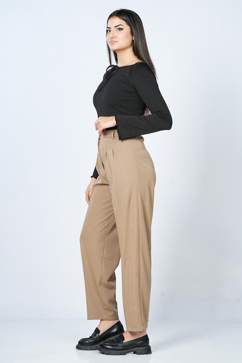 Accueil > Pantalons > Pantalon à Pinces Coupe Carotte et Taille Haute