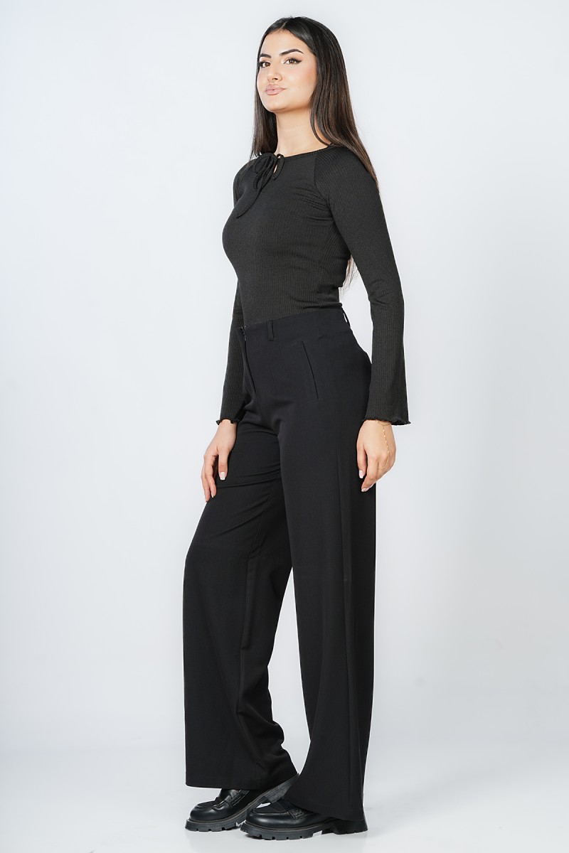 Indispensable du vestiaire féminin, ce pantalon à coupe large offre un tombé impeccable. Sa taille haute flatteuse et sa matière fluide allongent la jambe pour un confort absolu et un style intemporel.