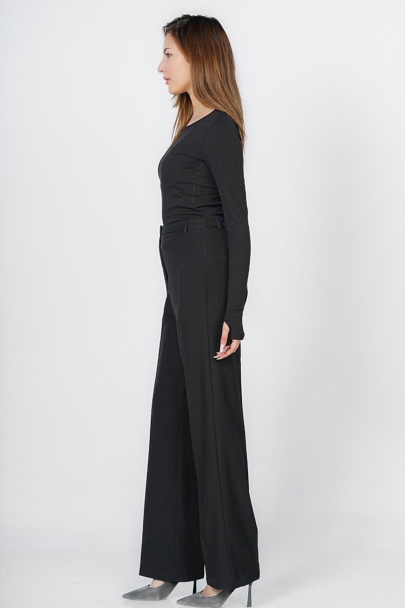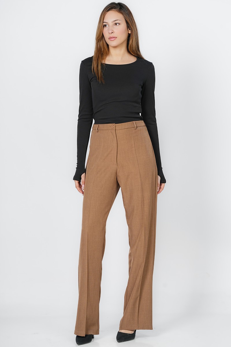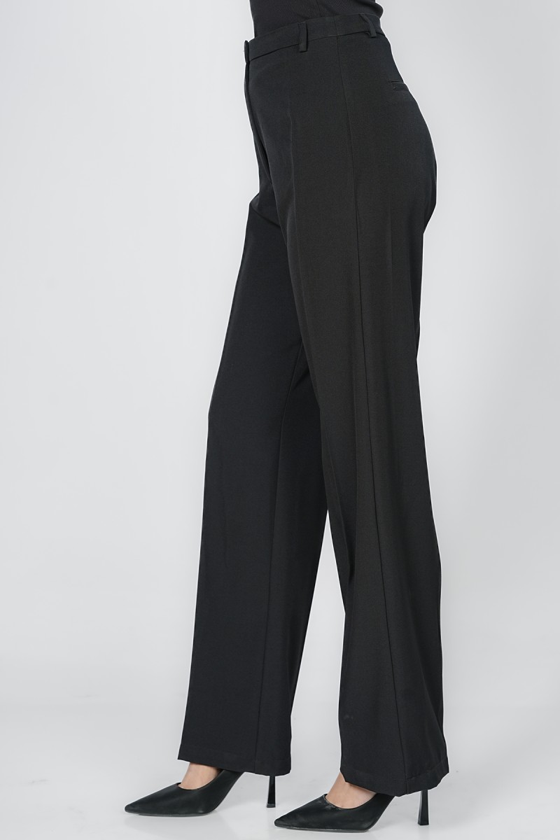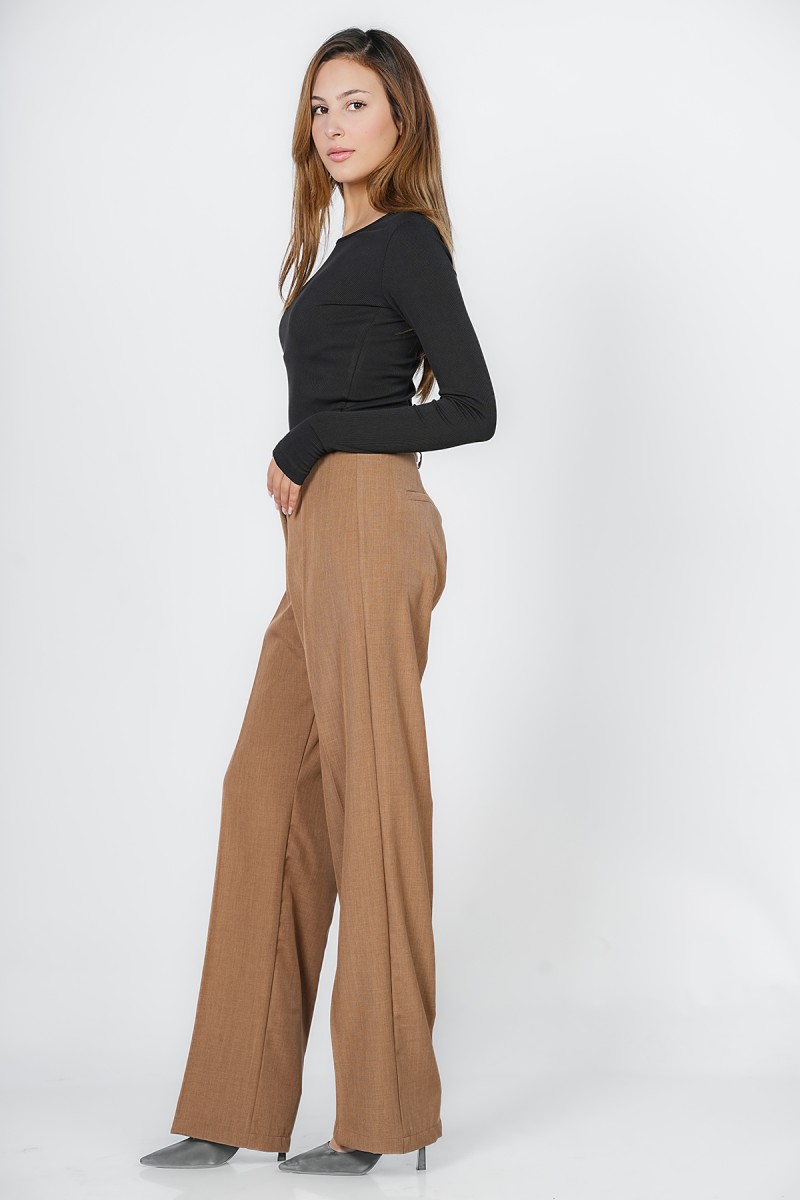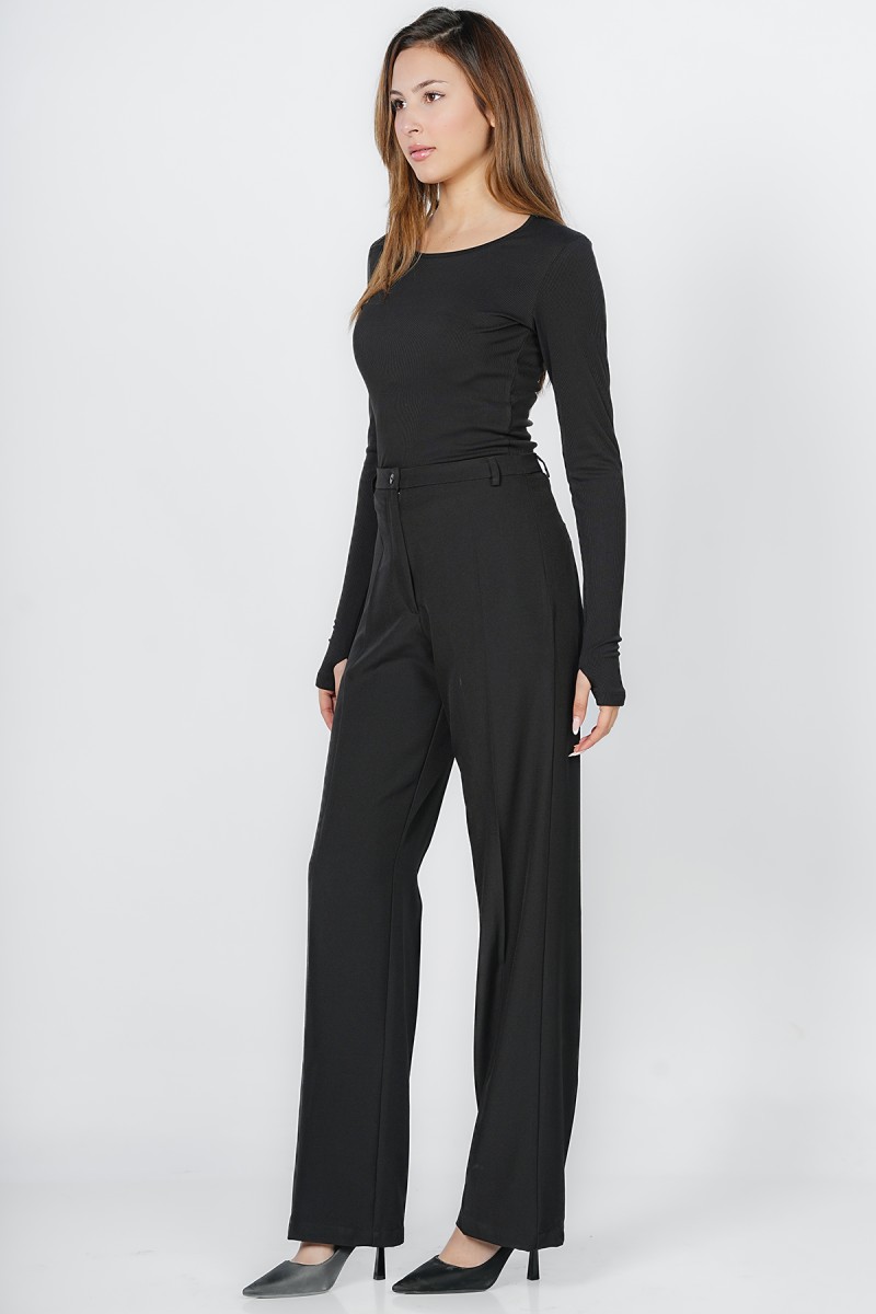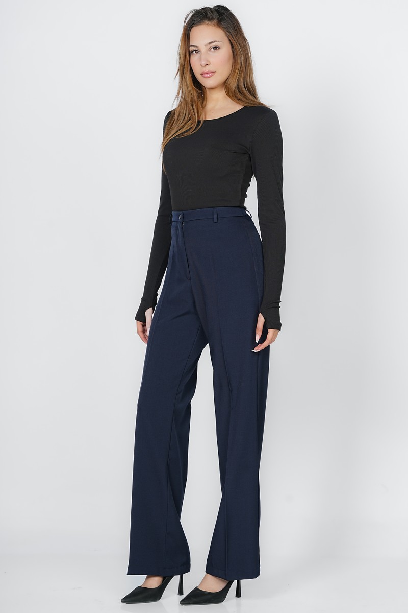 Adoptez une allure sophistiquée et une silhouette élancée avec ce pantalon large coupe Palazzo Élégante à taille haute, Véritable basique du vestiaire professionnel et chic, il offre un tomber impeccable pour toutes les occasions formelles ou citadines.