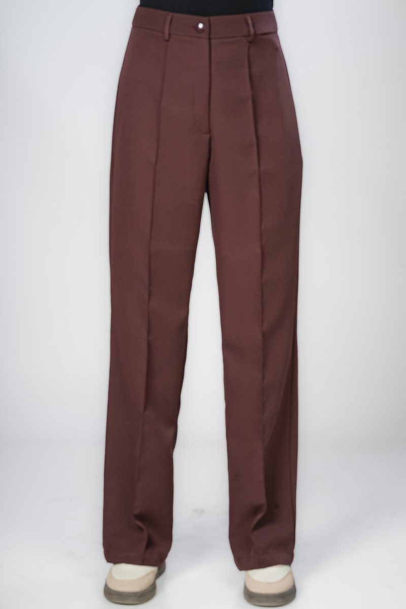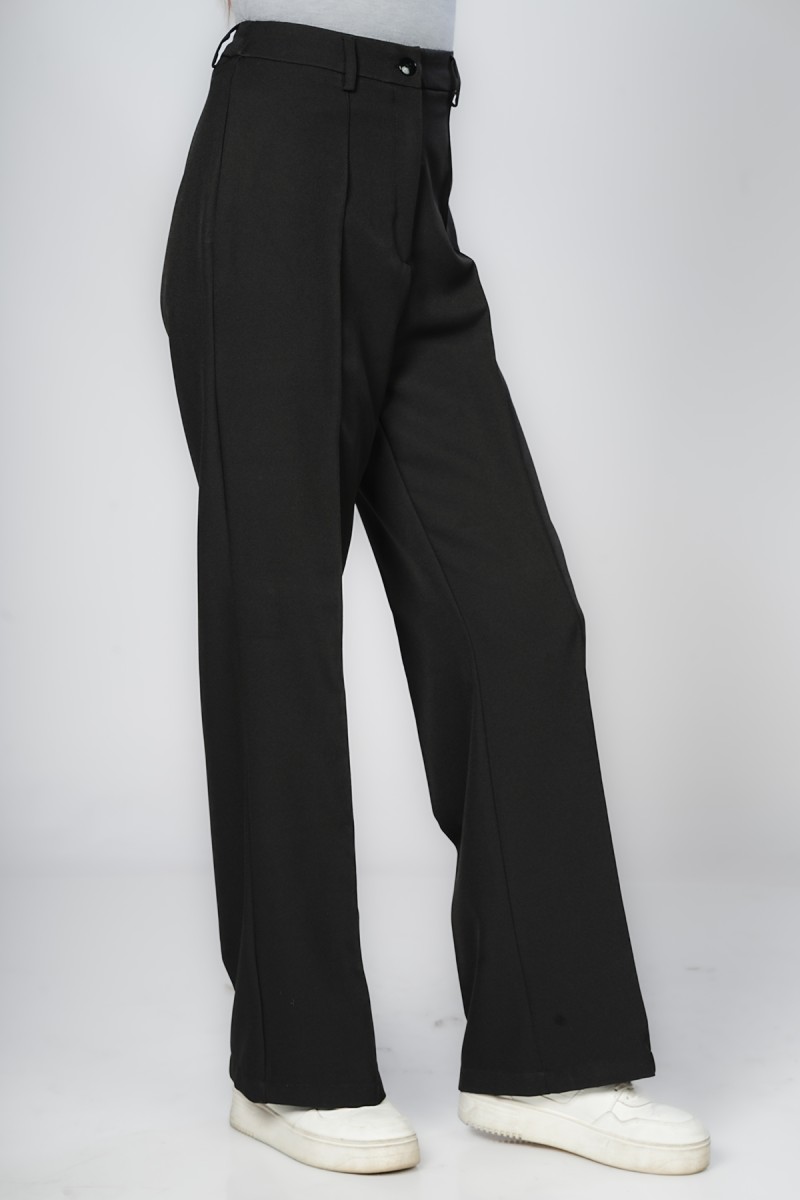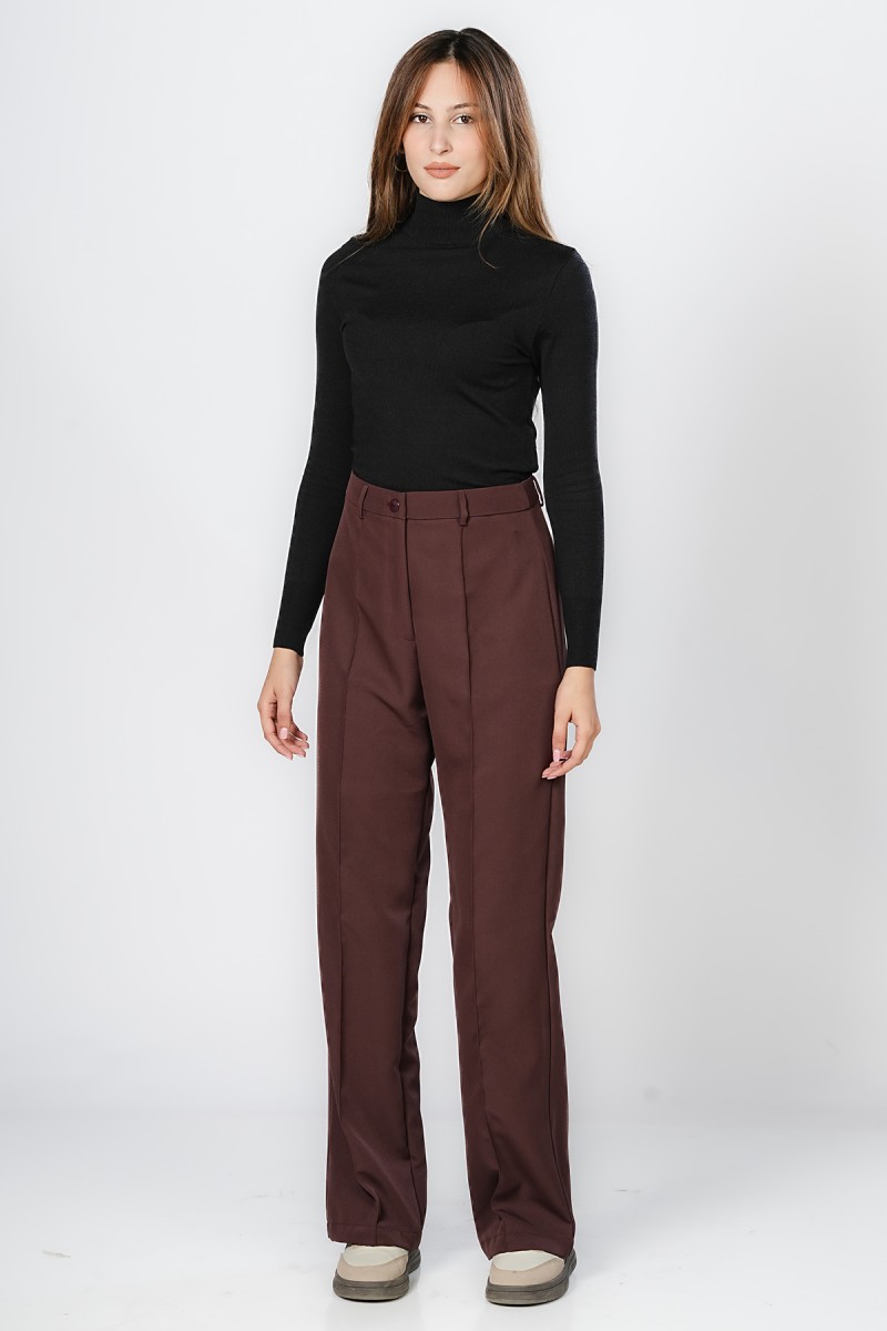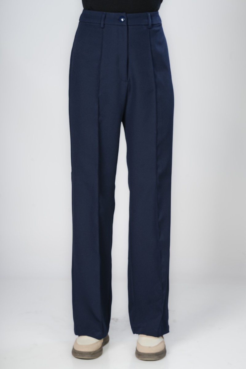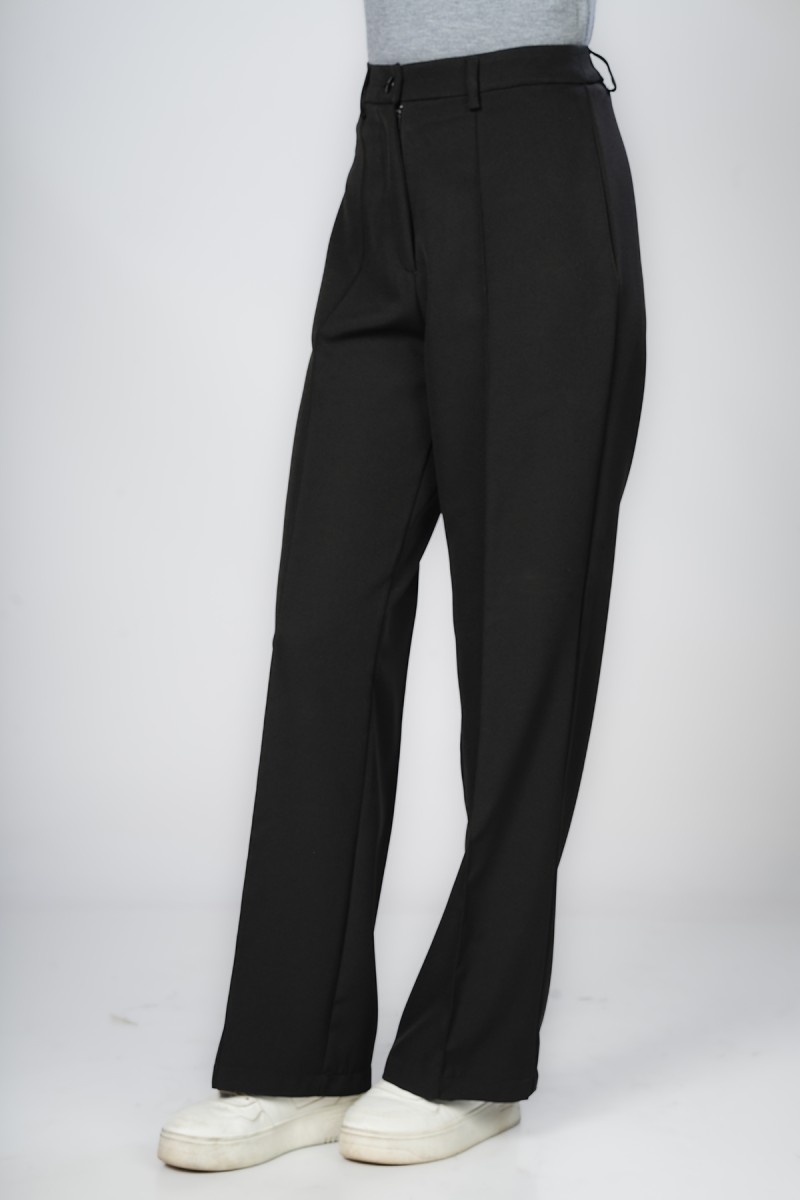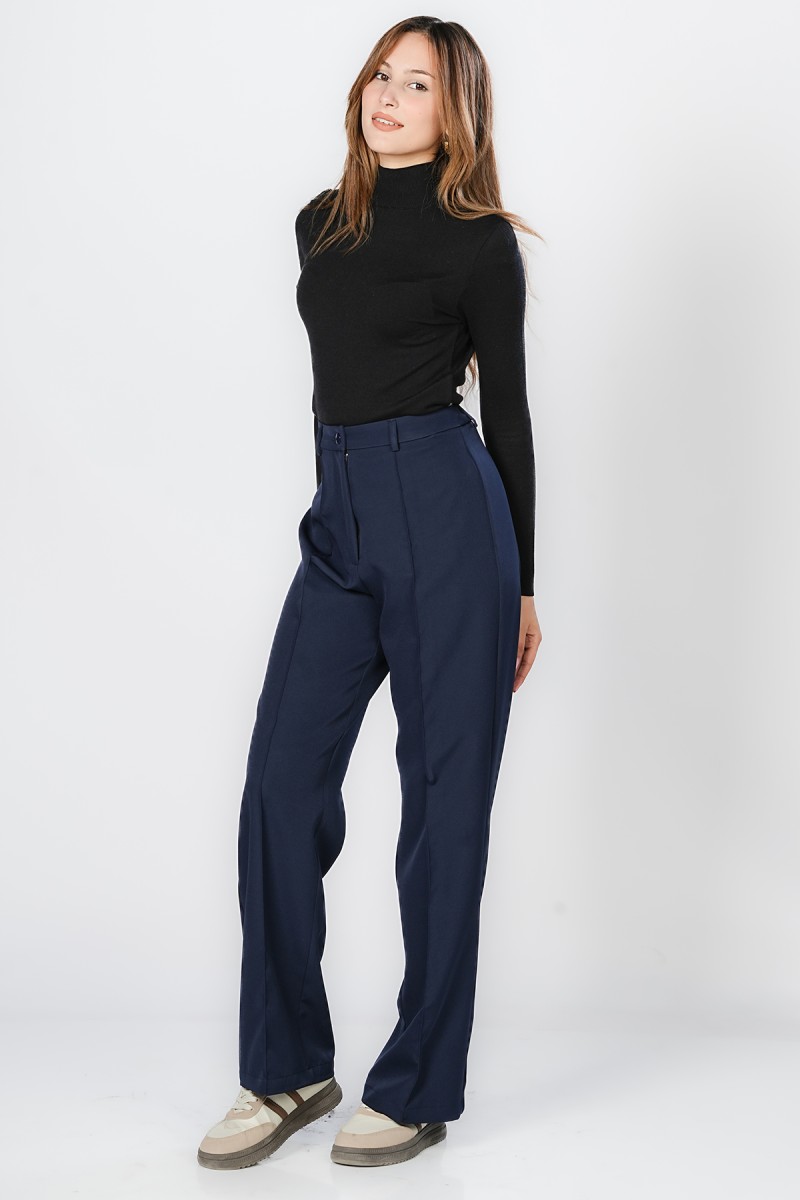 Pantalon taille haute à coupe droite, confortable et élégant. Plis centraux pour un look tailleur soigné, parfait pour le bureau ou une tenue chic décontractée.
