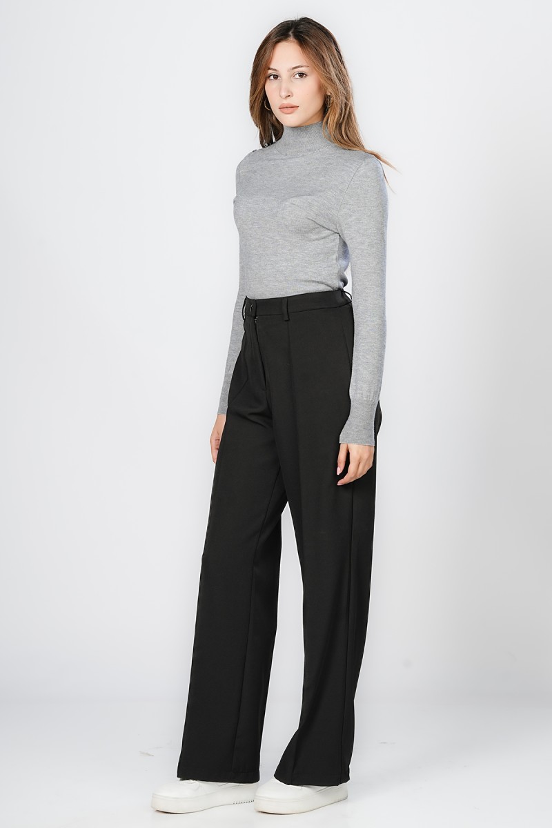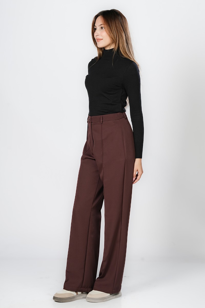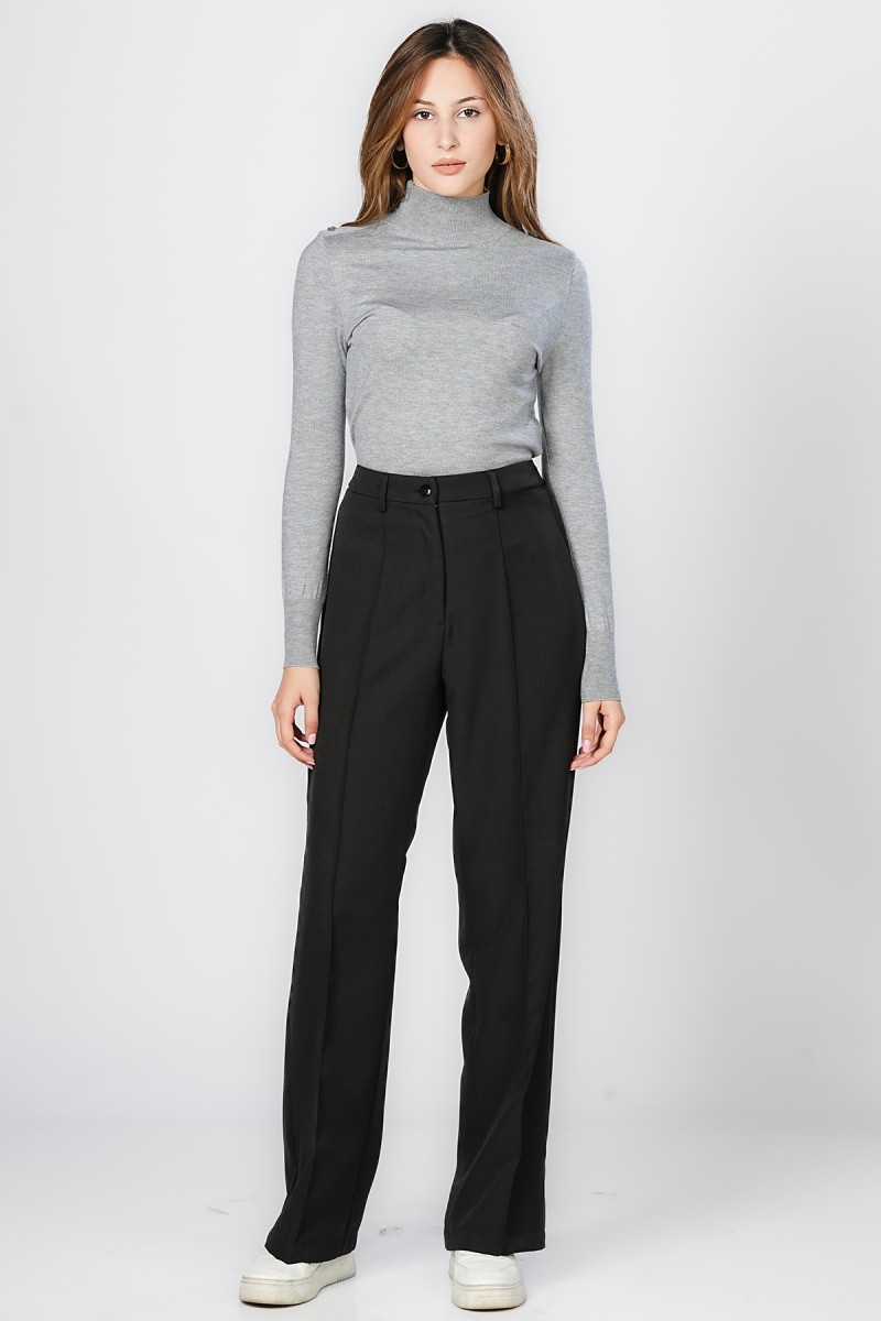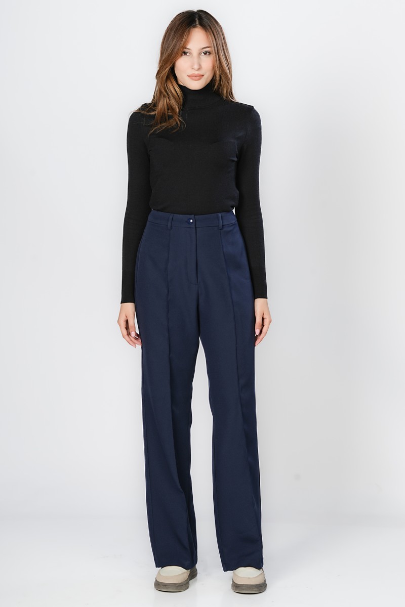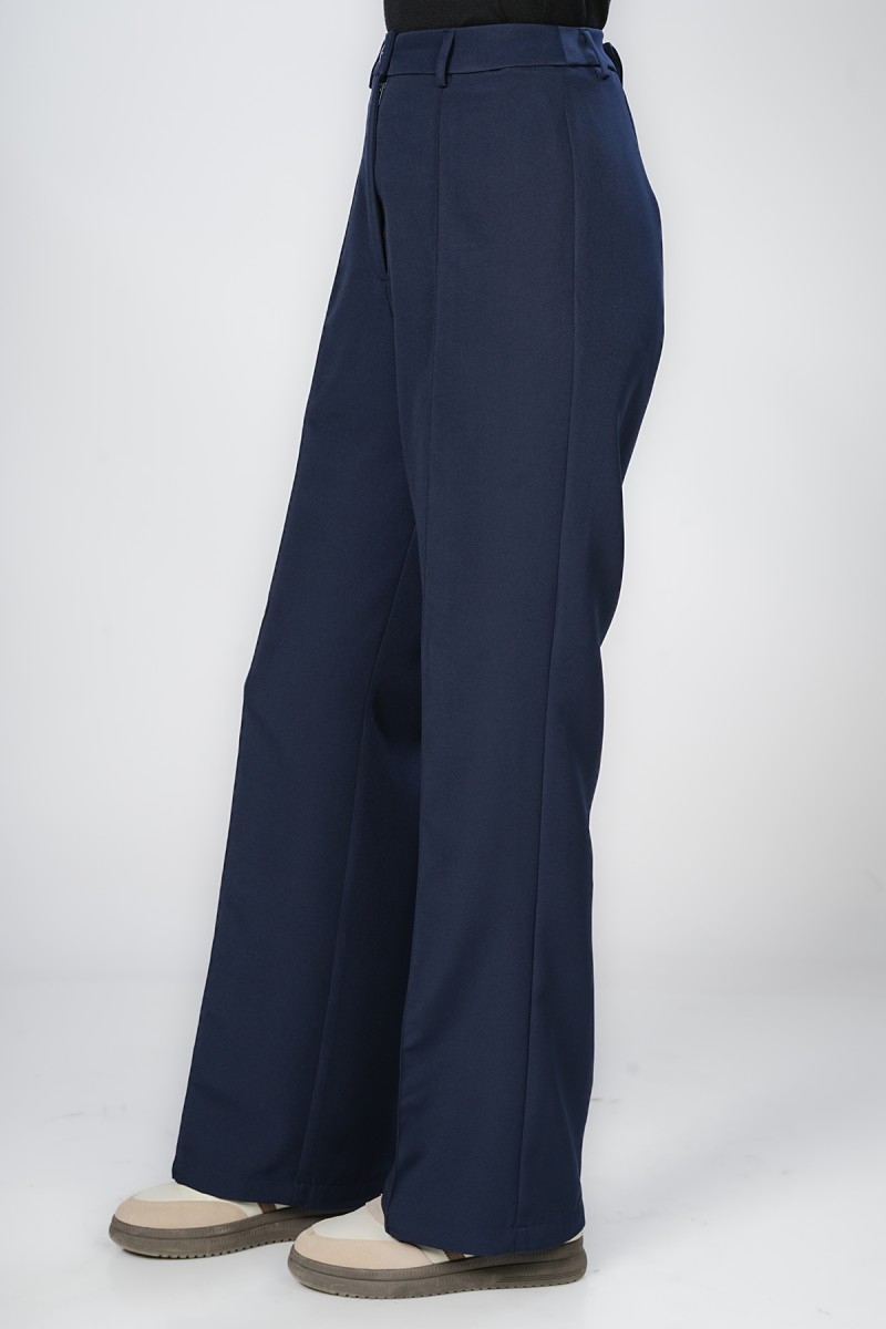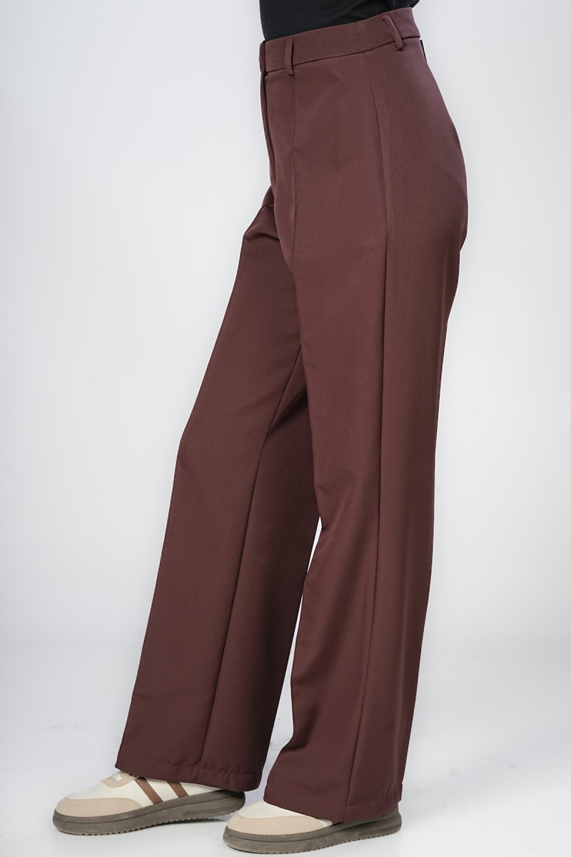 Pantalon taille haute à coupe droite, confortable et élégant. Plis centraux pour un look tailleur soigné, parfait pour le bureau ou une tenue chic décontractée.