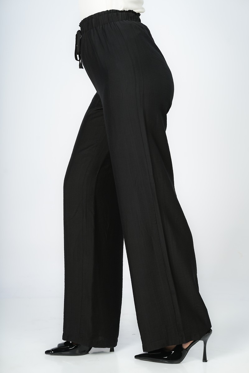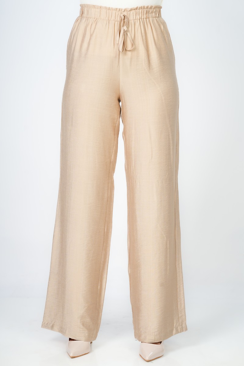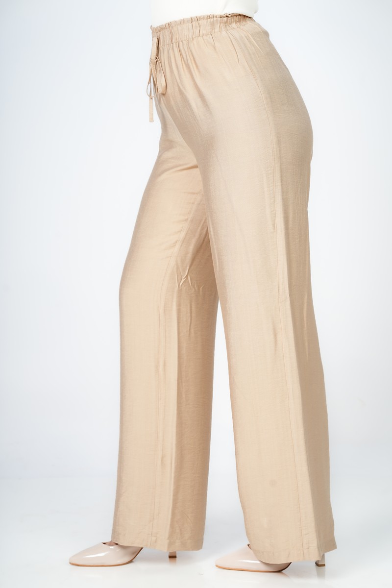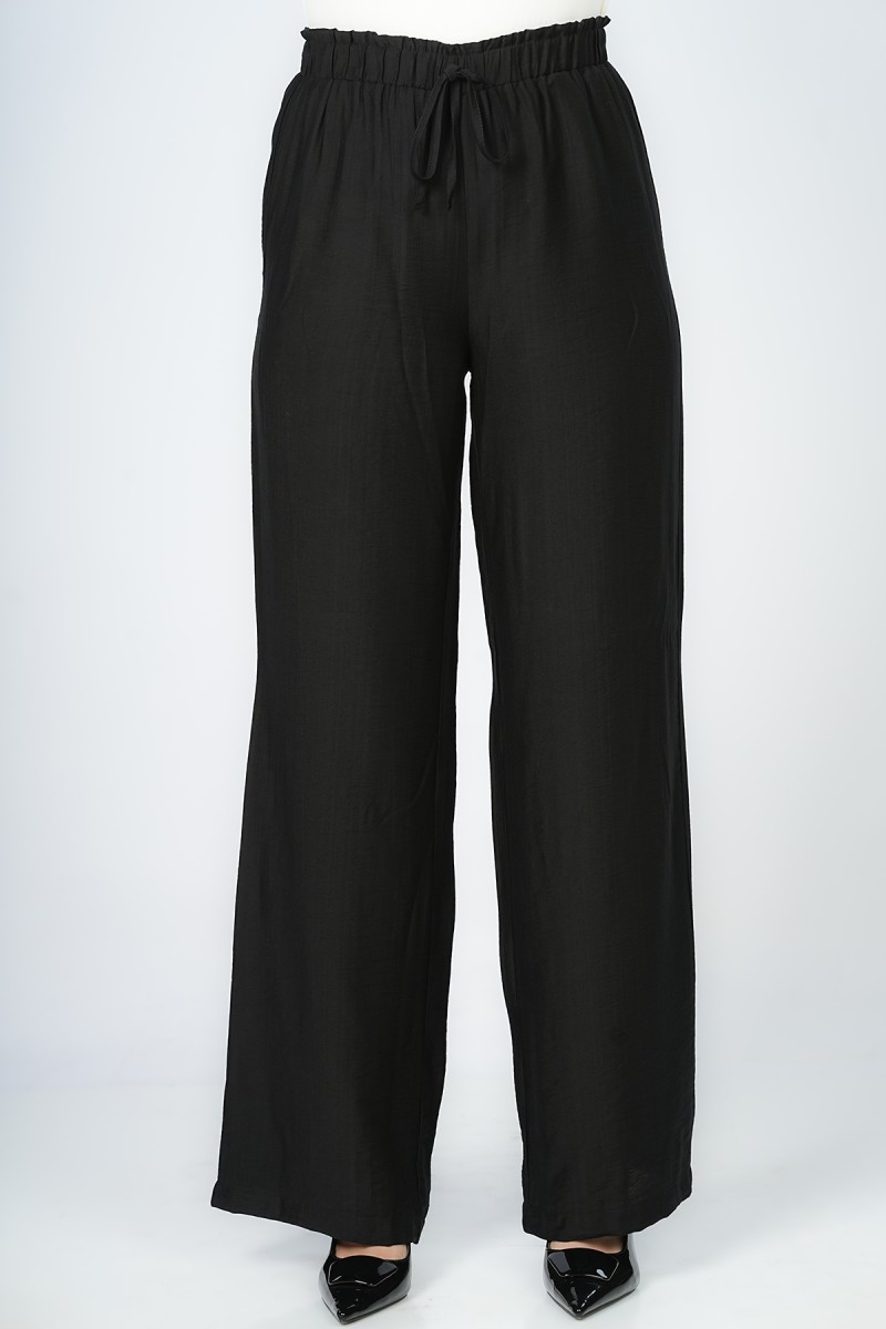 Pantalon Wide-leg à ceinture élastique sans fermeture offrant une silhouette fluide et épurée pour une allure Contemporary Minimalist, un essentiel Modern Tailoring qui allie confort absolu et élégance sophistiquée.