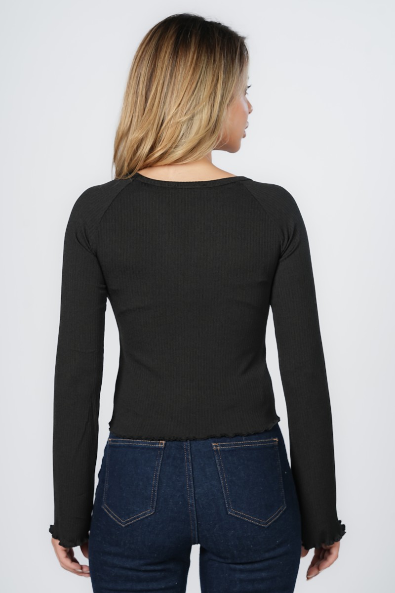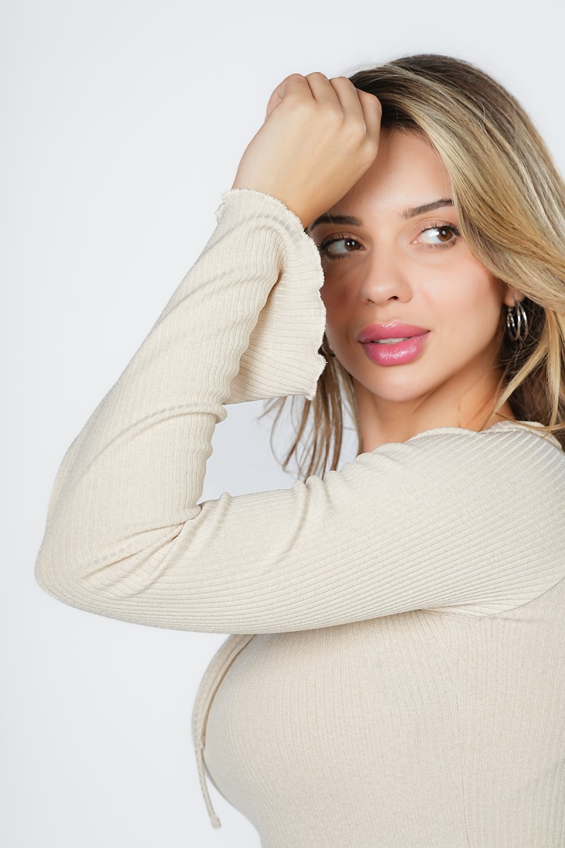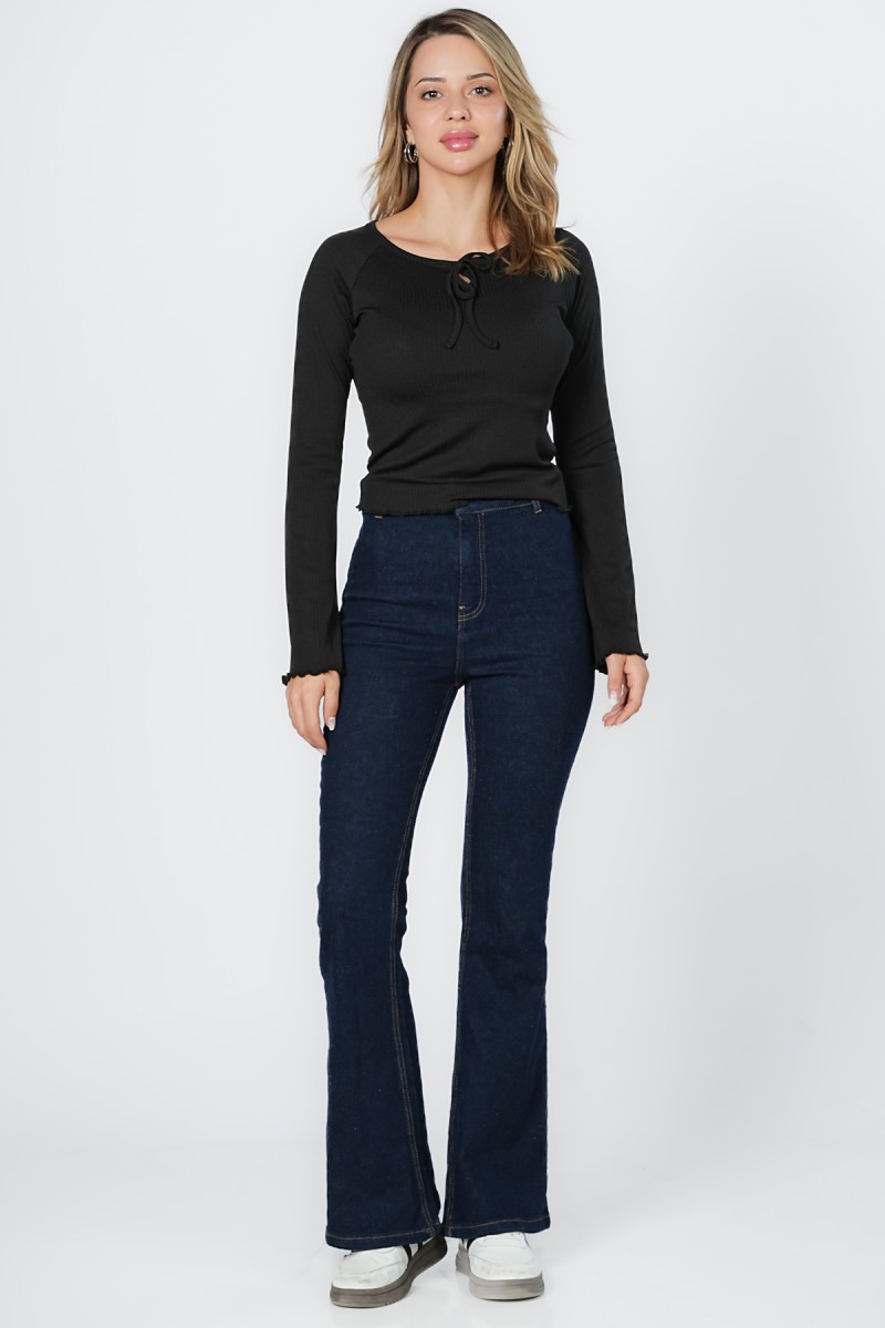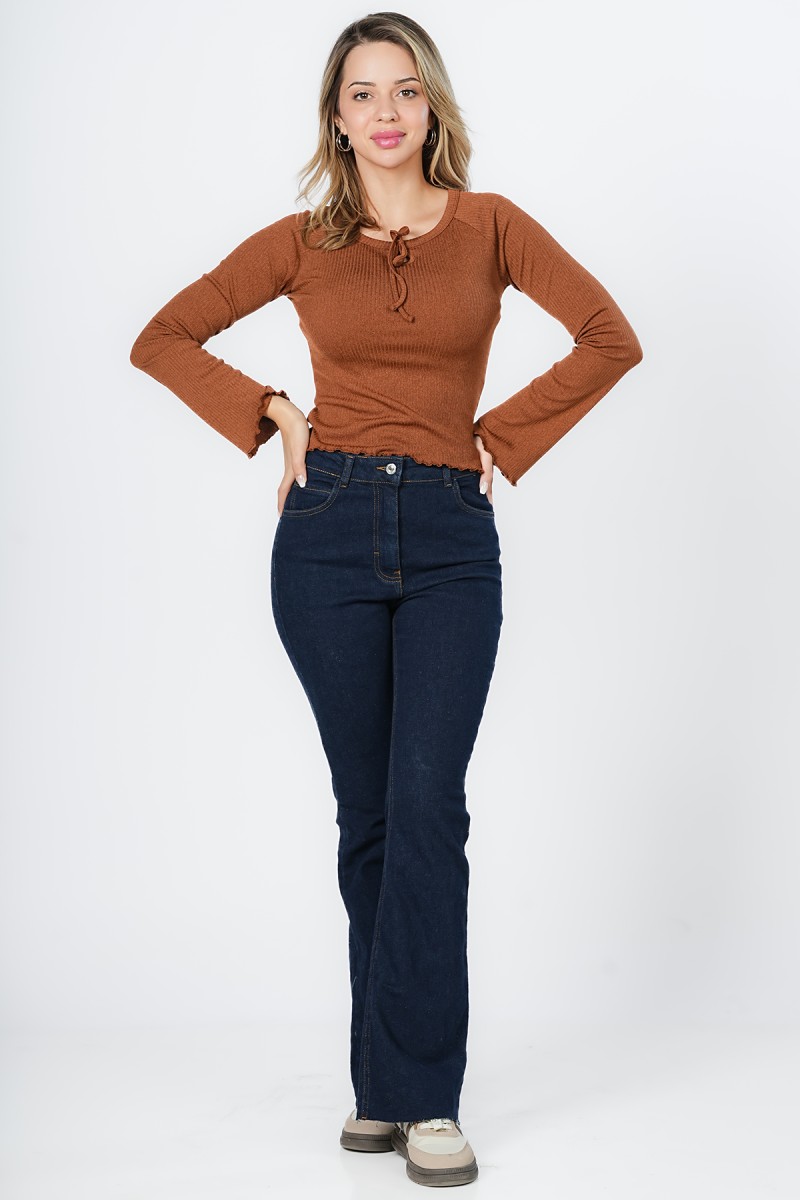 Pull fin à manches longues avec lien à nouer à l’encolure. Sa maille côtelée offre confort et style tout au long de la journée, parfait pour un look casual et décontracté