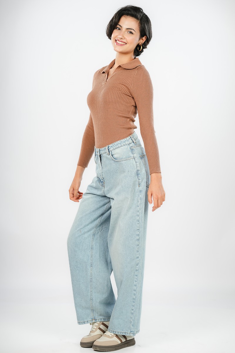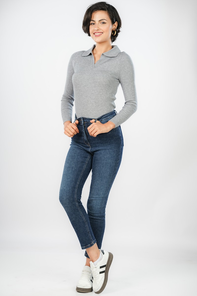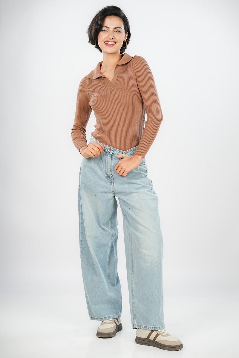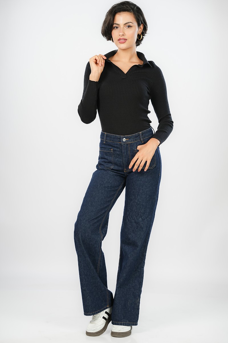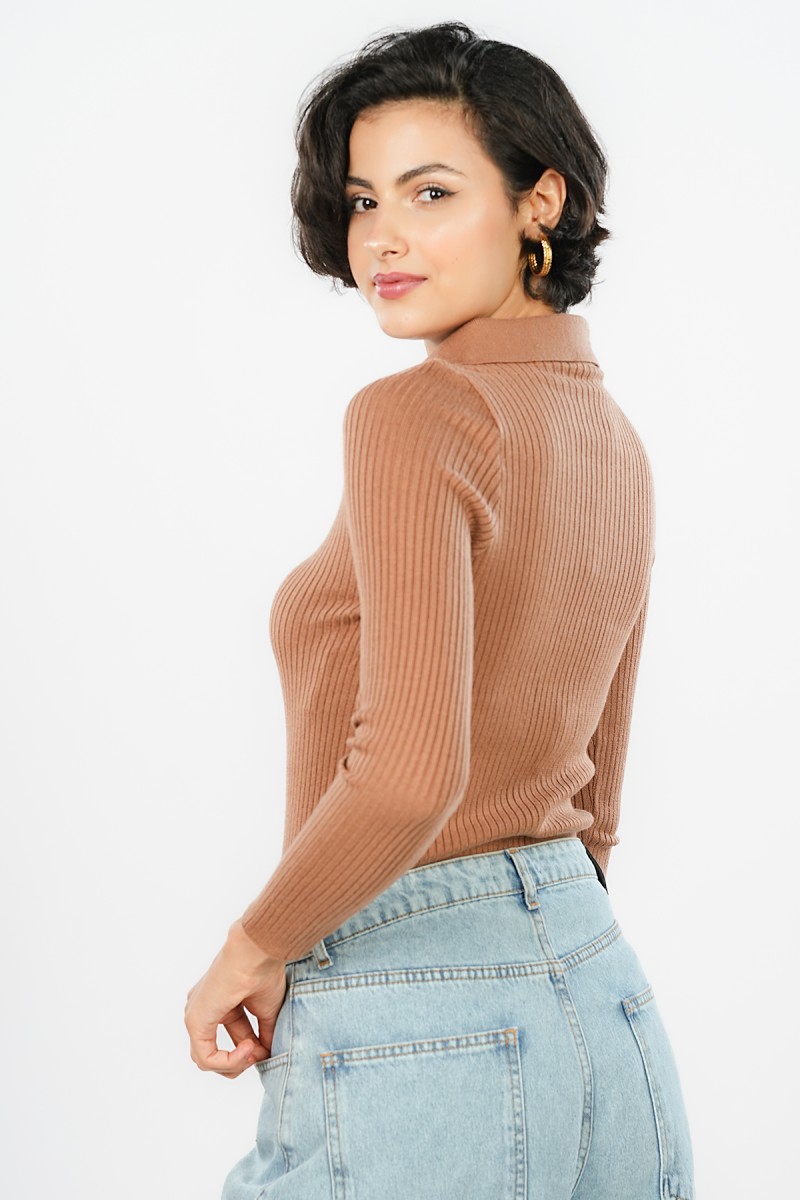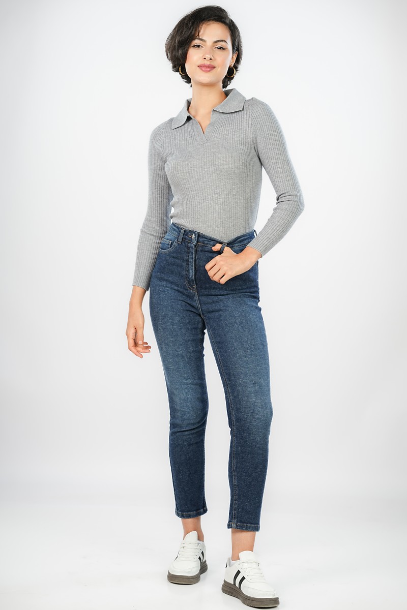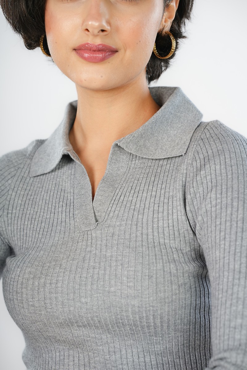 Pull maille fine courte à col polo, confortable et ajusté. Facile à porter avec jean, pantalon ou jupe pour un look moderne au quotidien.