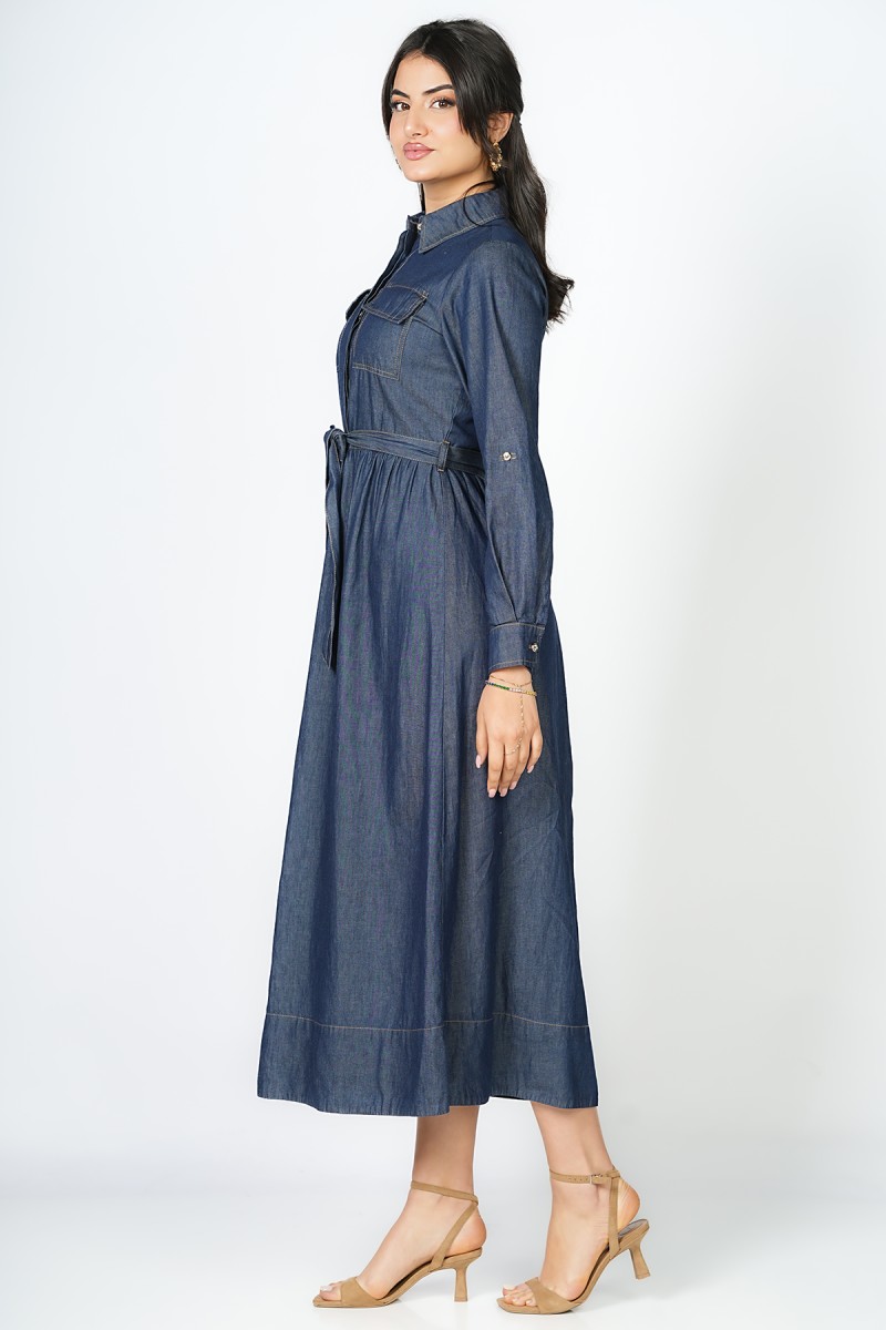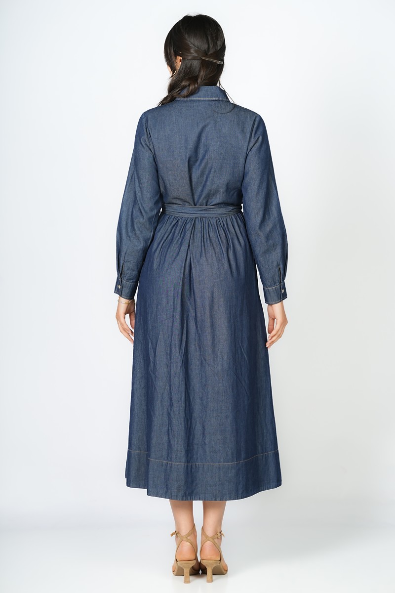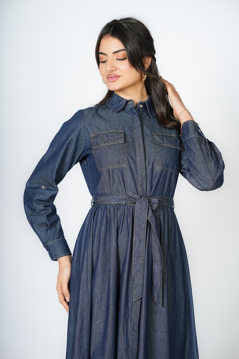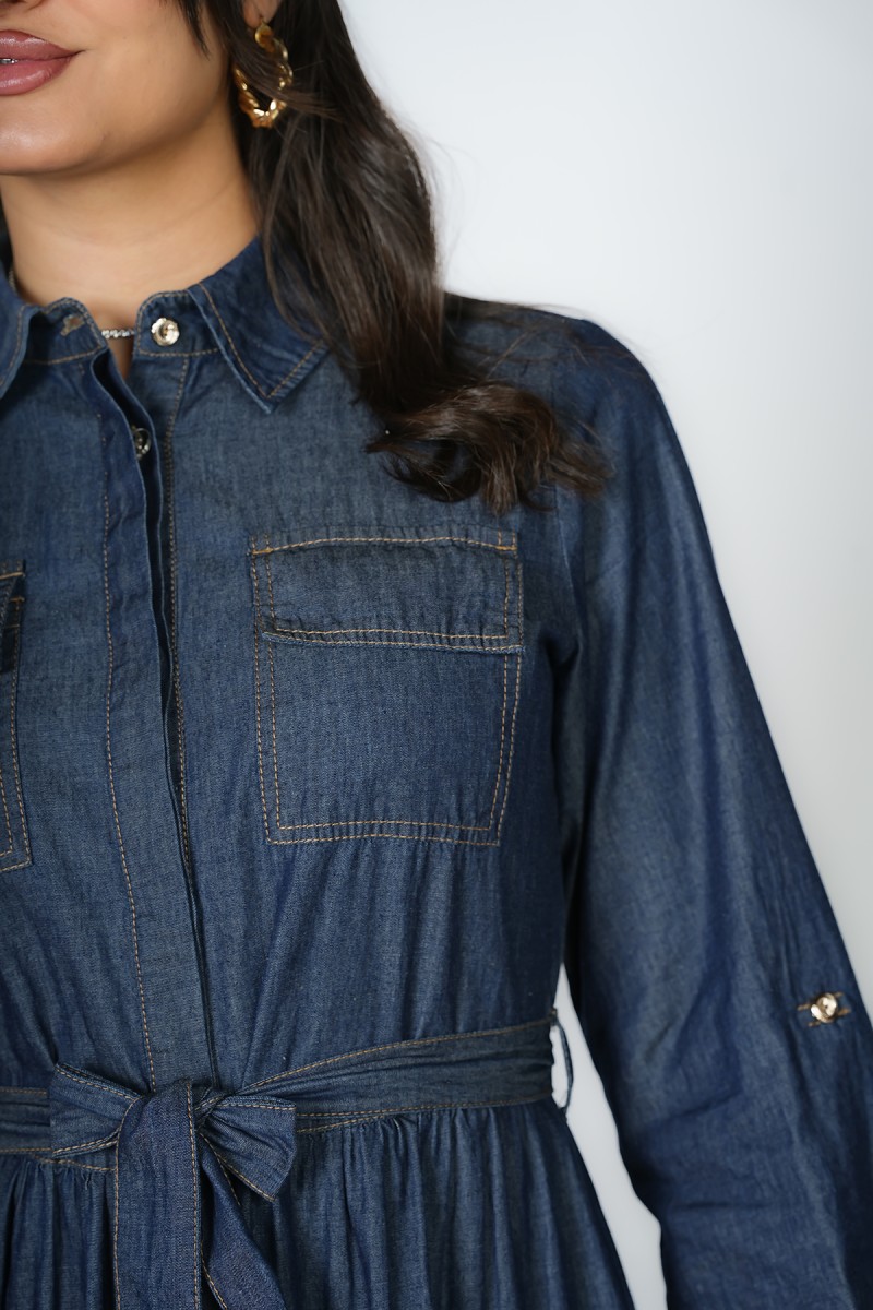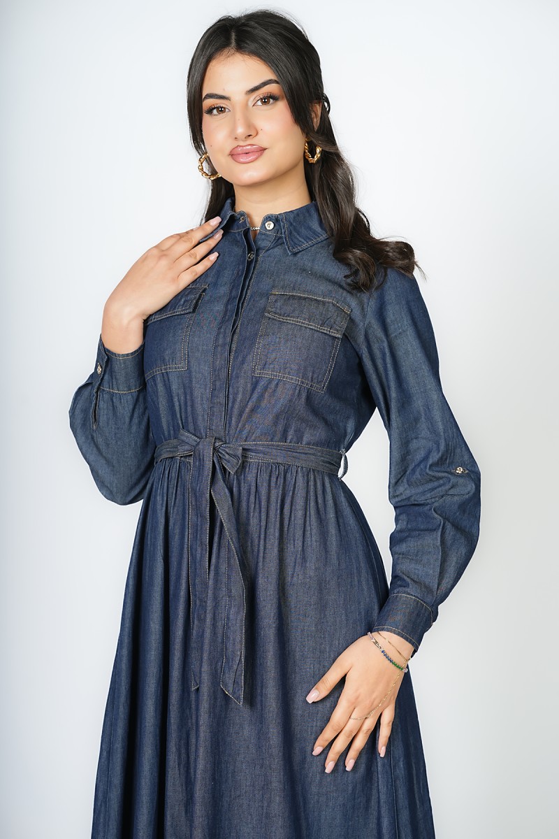 Accueil > Robes > Robe longue ample à col chemise avec ceinture et poches