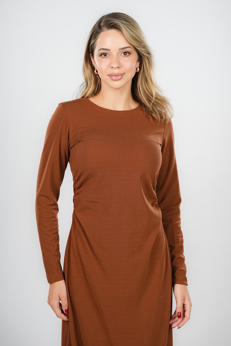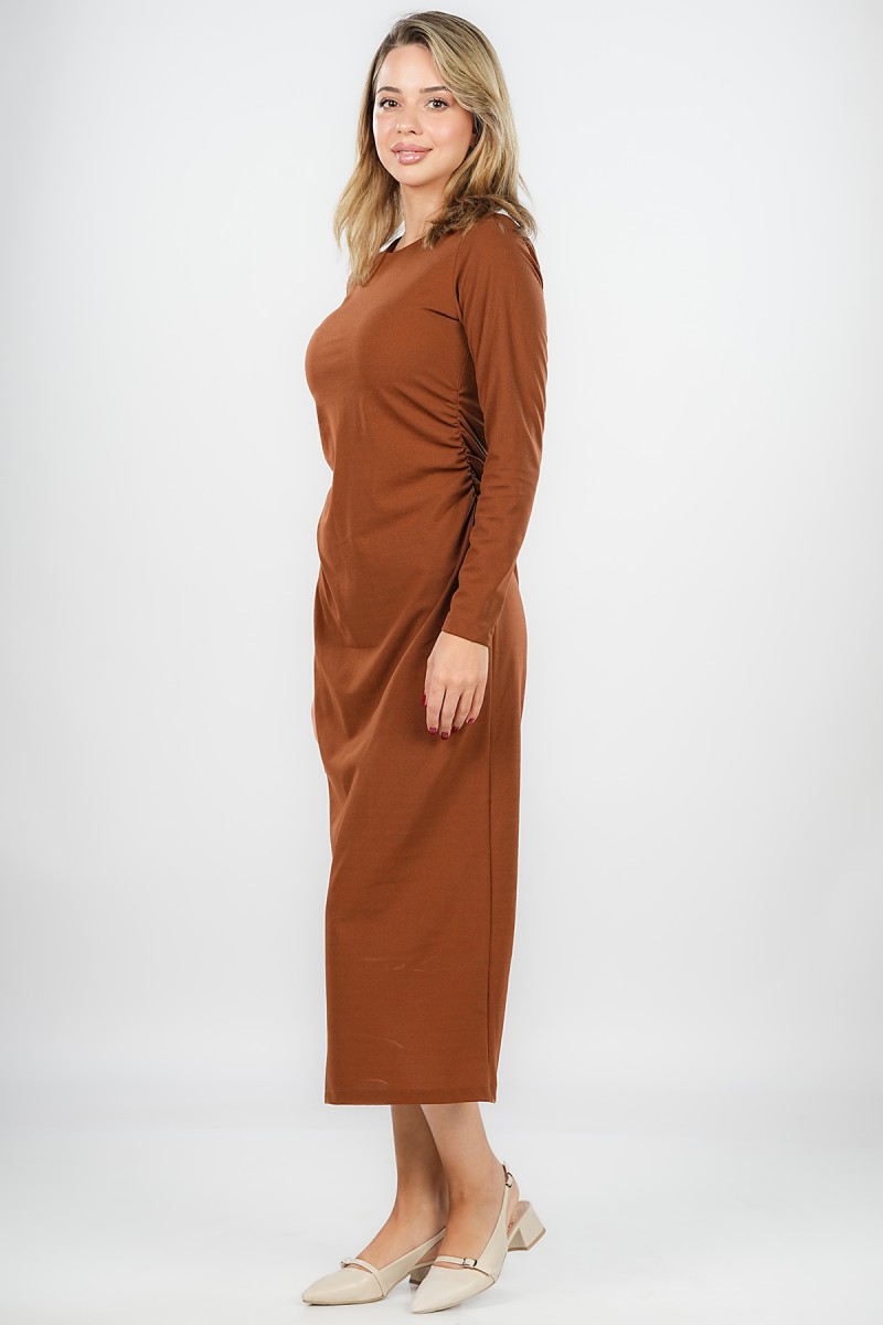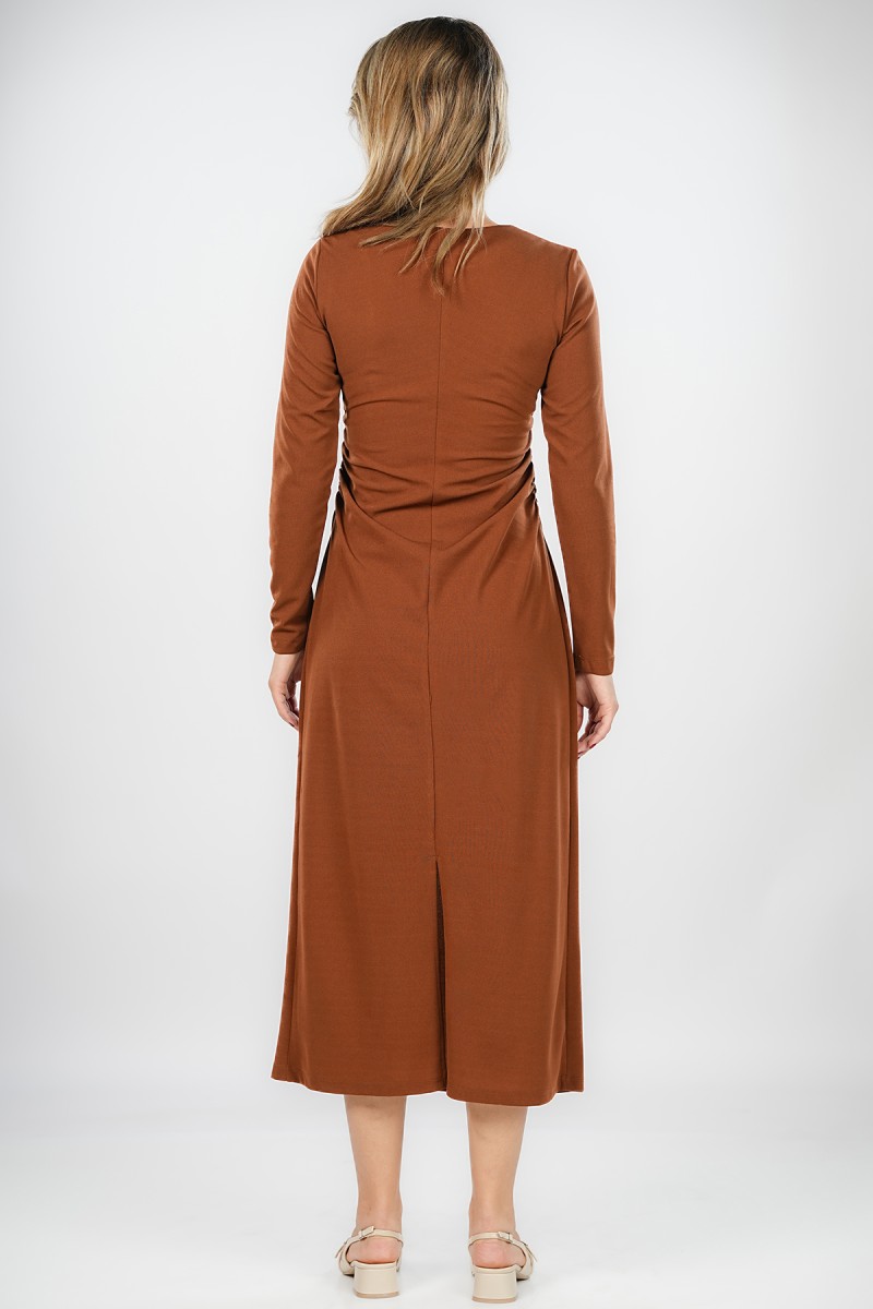 Robe midi froncée sur les côtés, dotée d’une fente à l’arrière, alliant féminité et élégance pour un look raffiné.