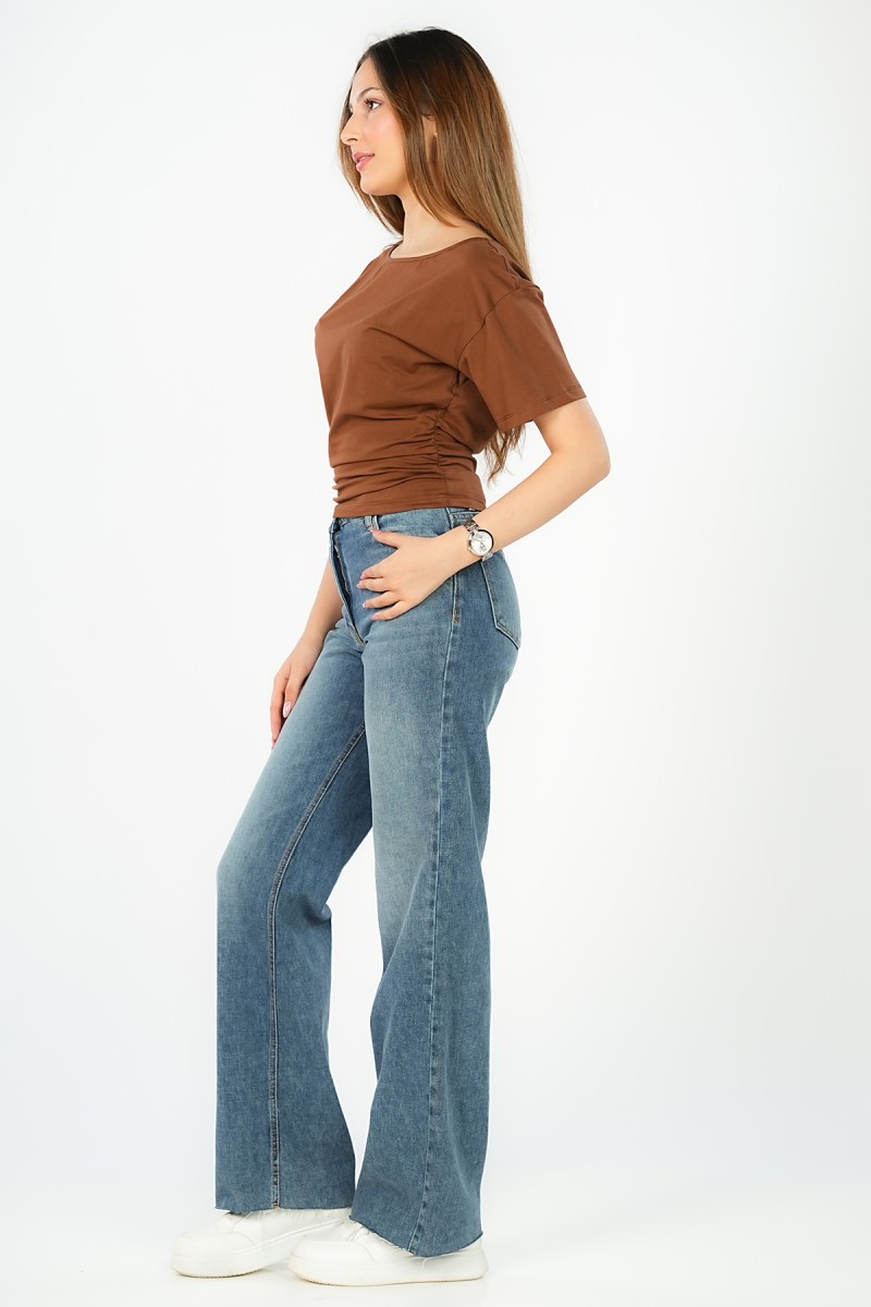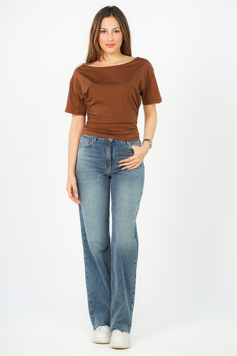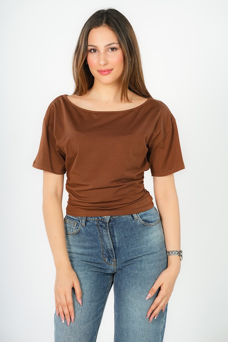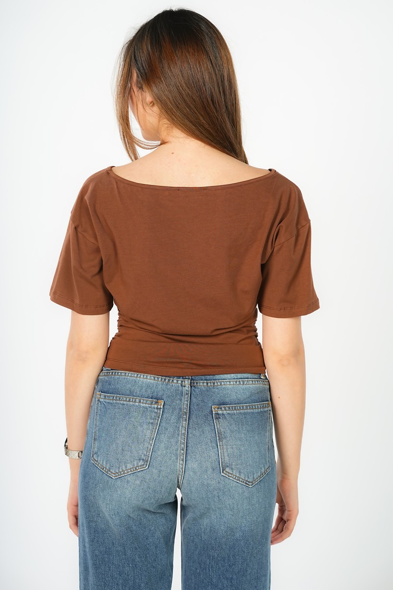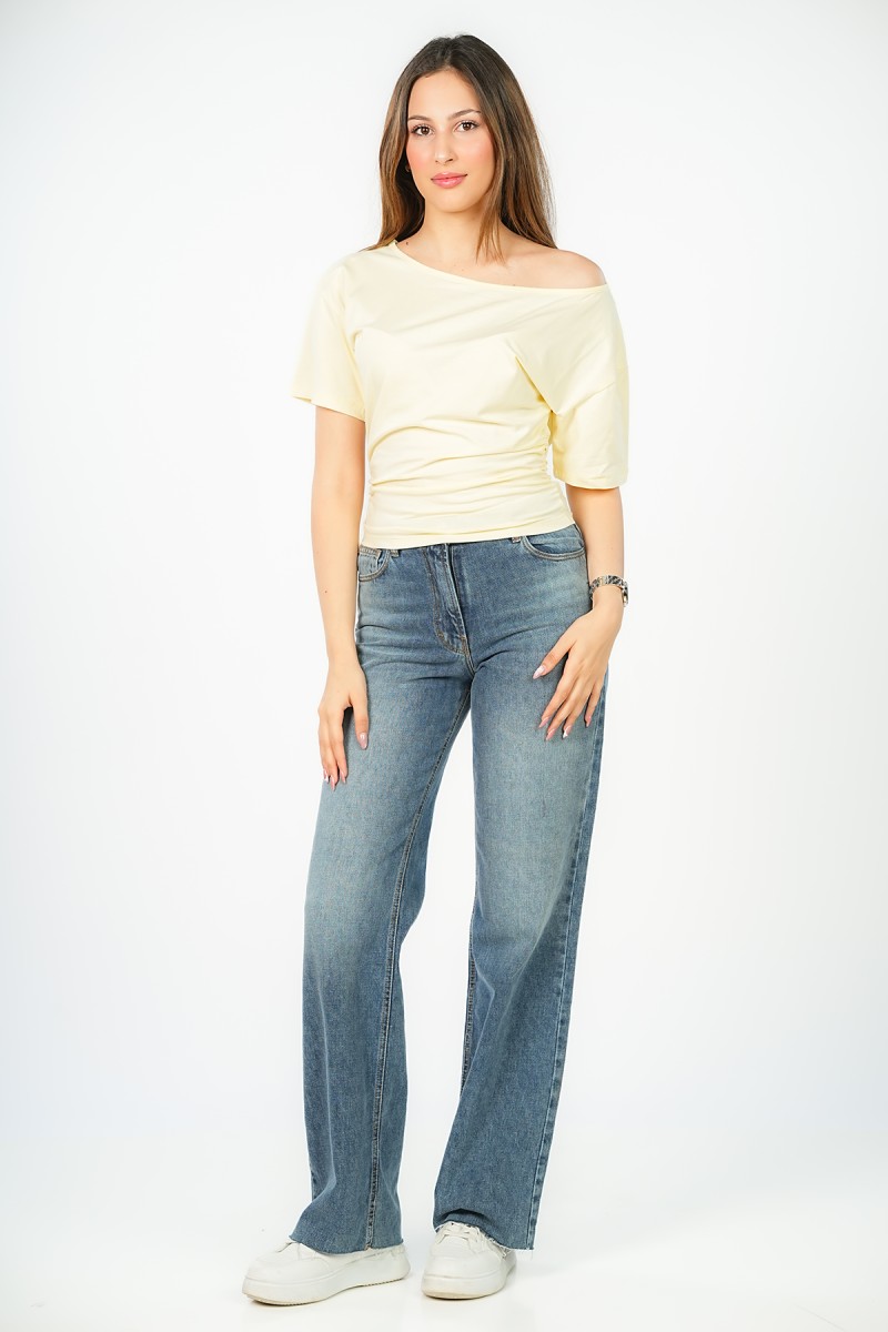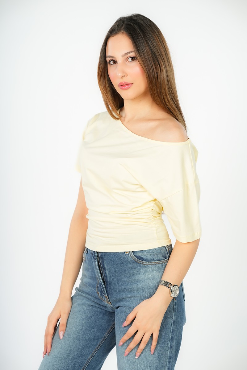 Top asymétrique à manches courtes, doté d'élastiques des deux côtés