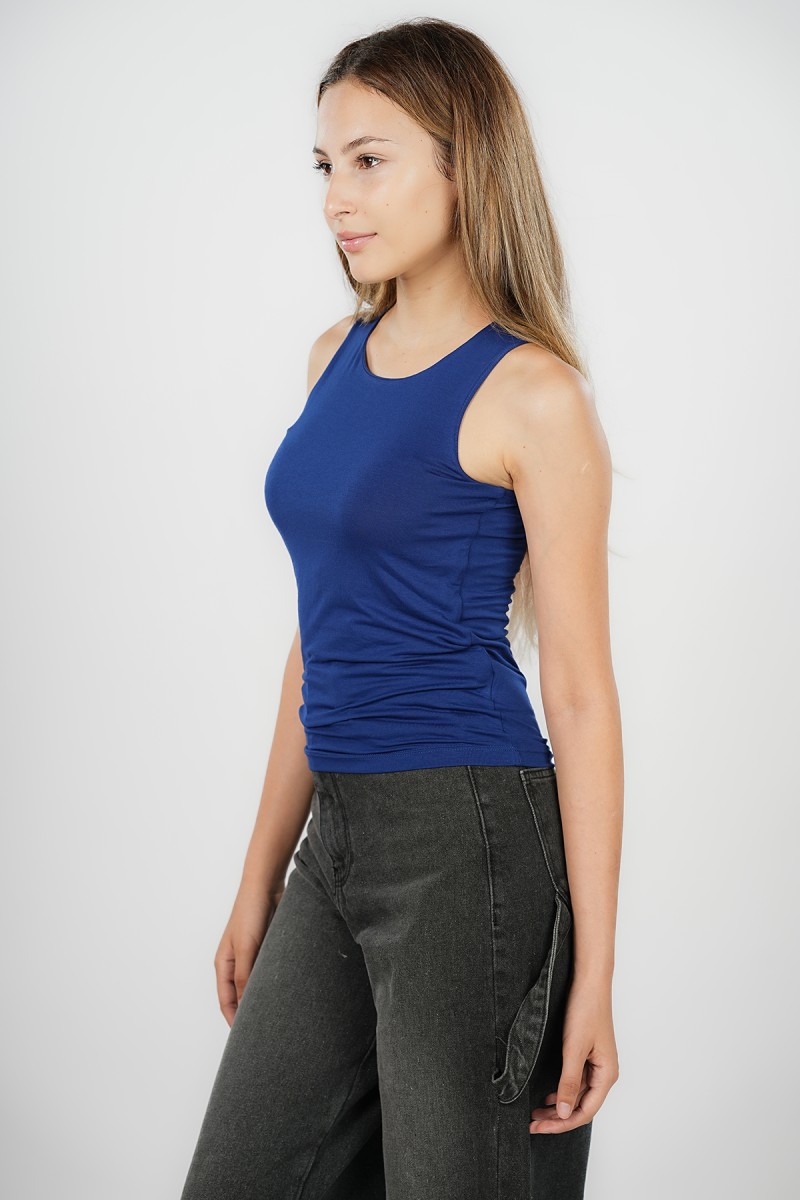 Top basique avec fronces sur les côtés, simple et féminin, parfait pour un look décontracté avec une touche d’originalité. Confortable et facile à assortir