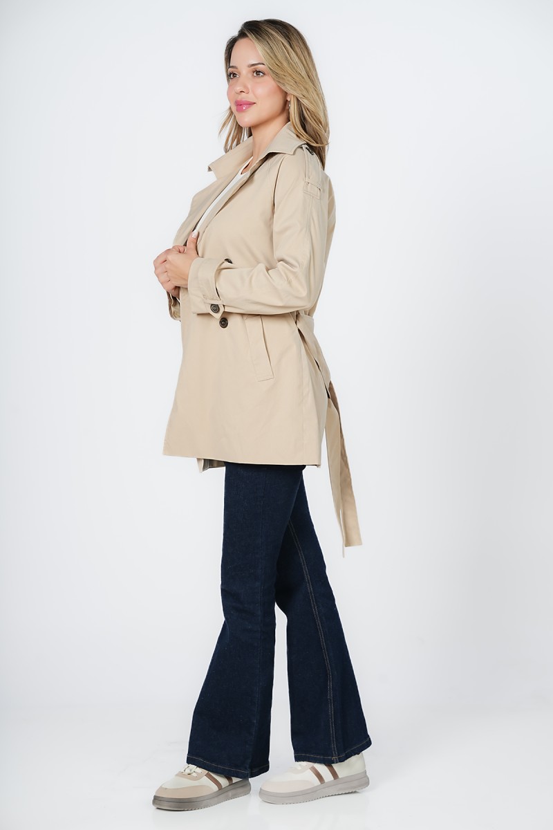 Trench mi-long à double boutonnage, doté d’une ceinture ajustable et de poches pratiques. Sa coupe structurée met en valeur la silhouette tout en offrant un confort idéal au quotidien et un look intemporel facile à assortir.