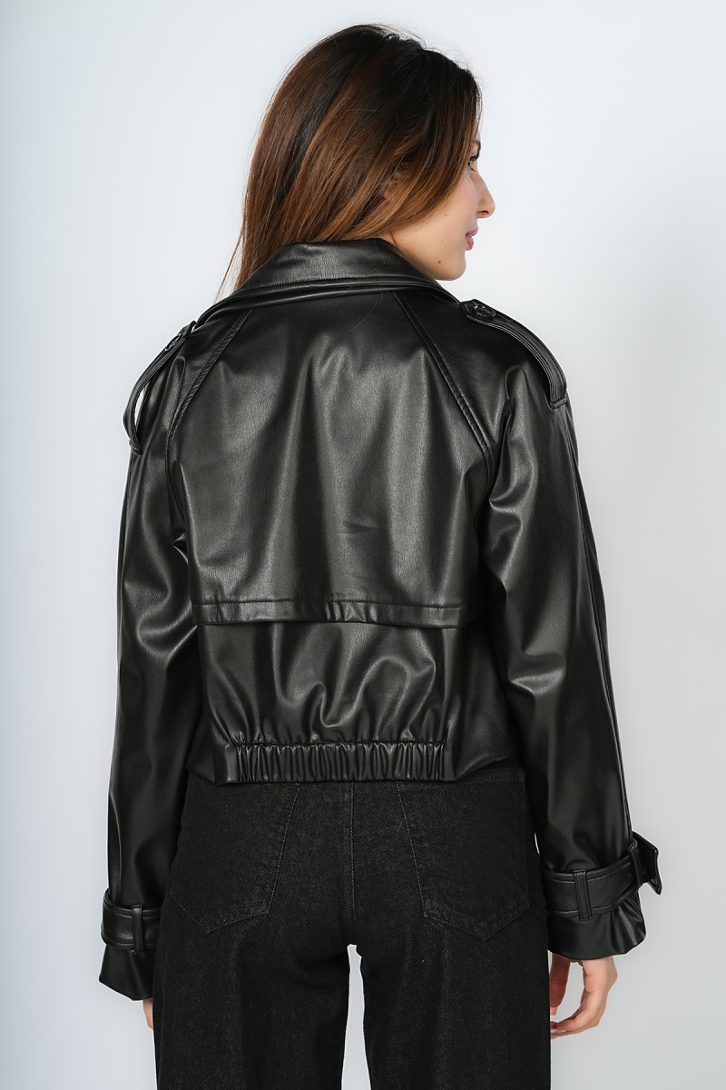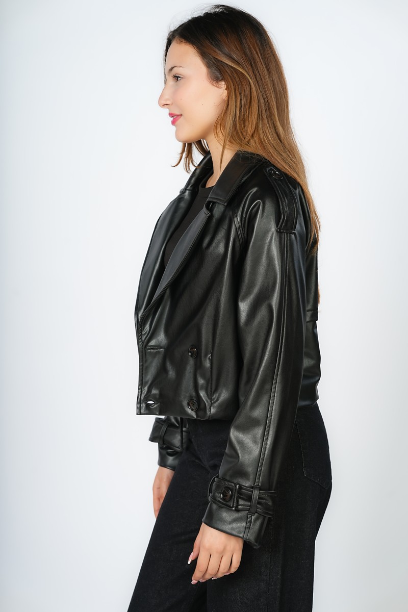 Accueil > Manteaux > Trench court à quatre boutons en similicuir