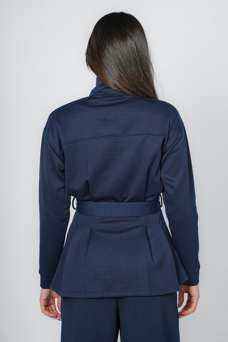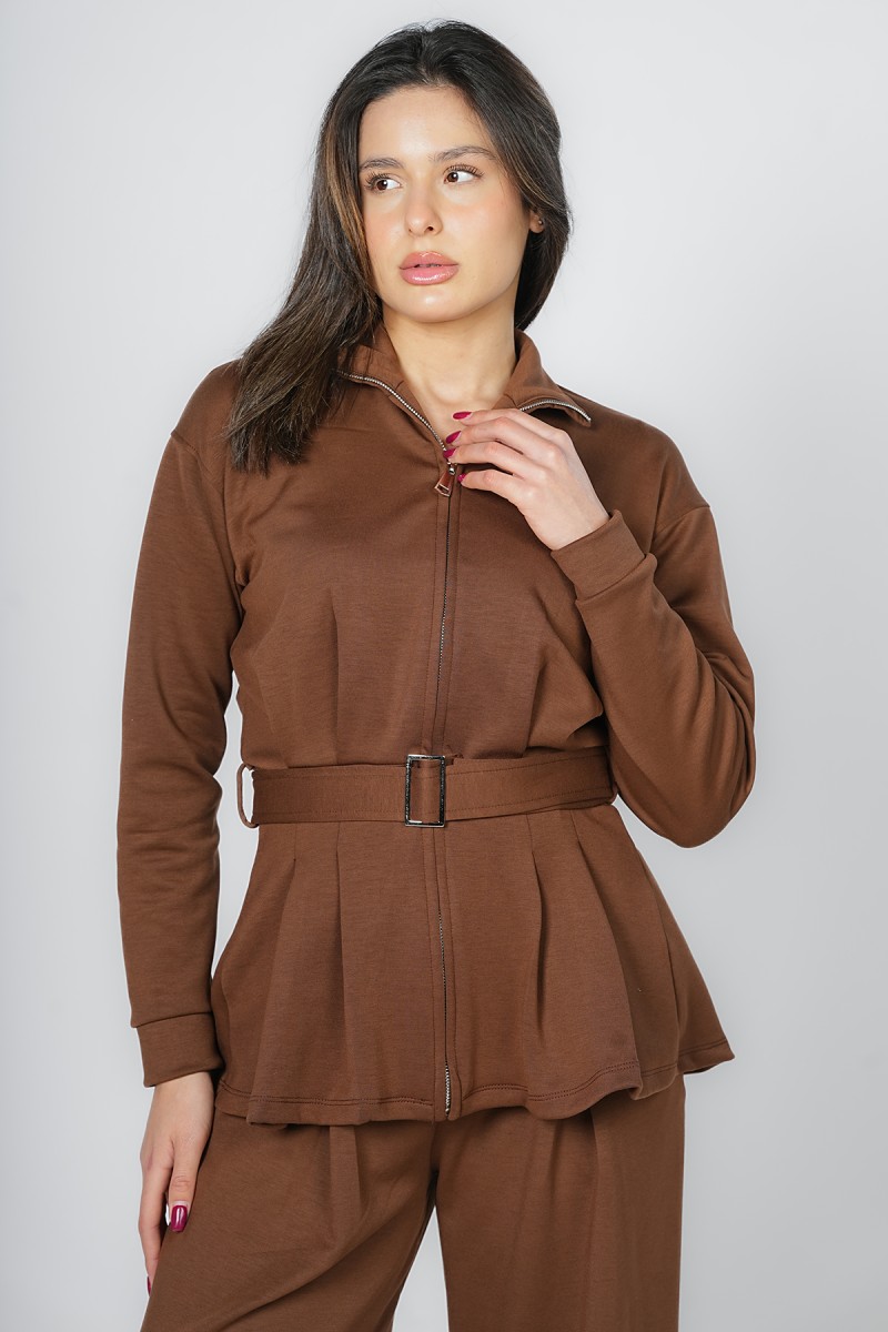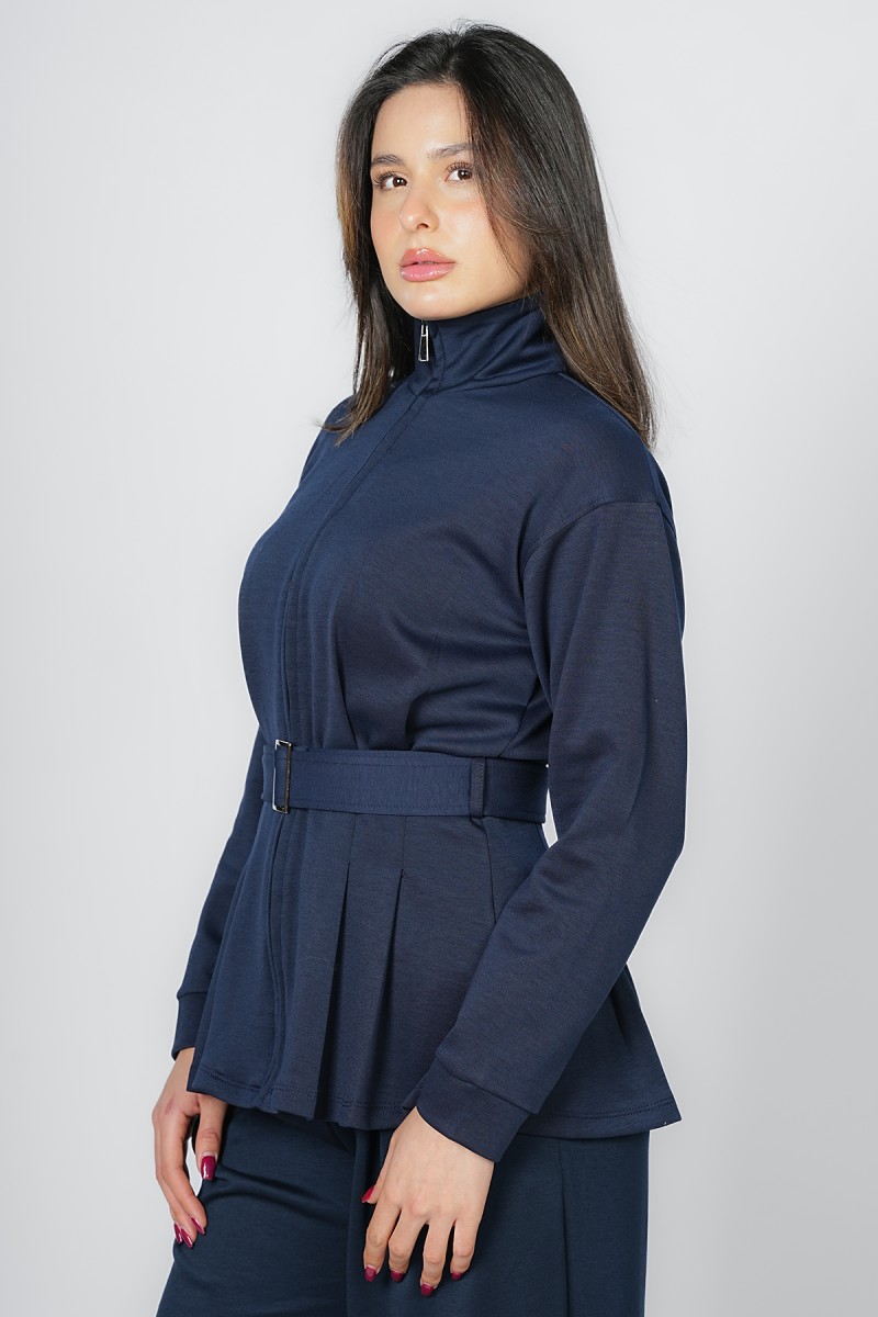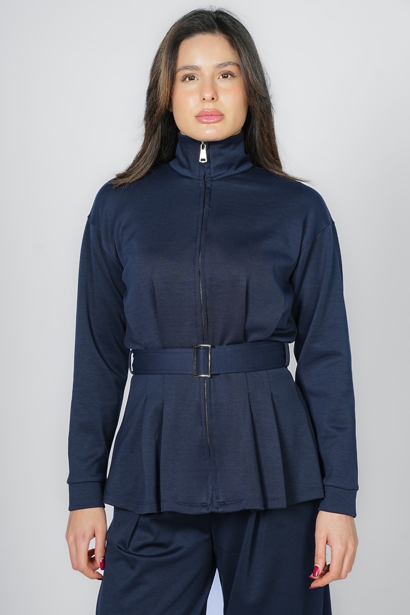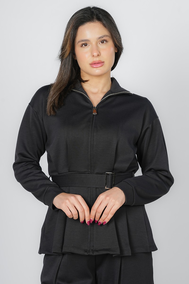 Accueil > Vestes > Veste Zippée à Basque et Ceinture Ajustable - Col Montant