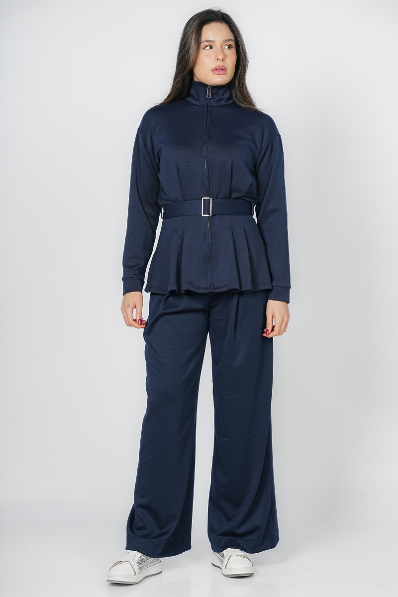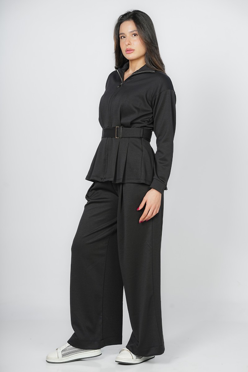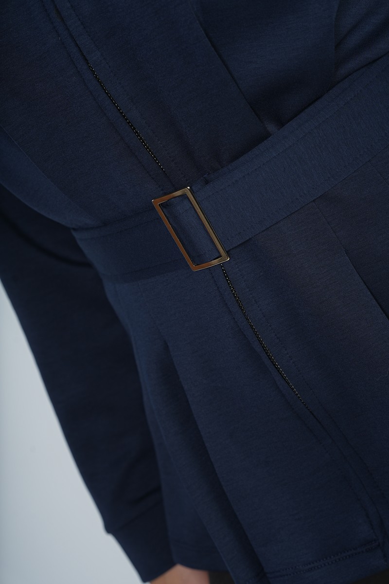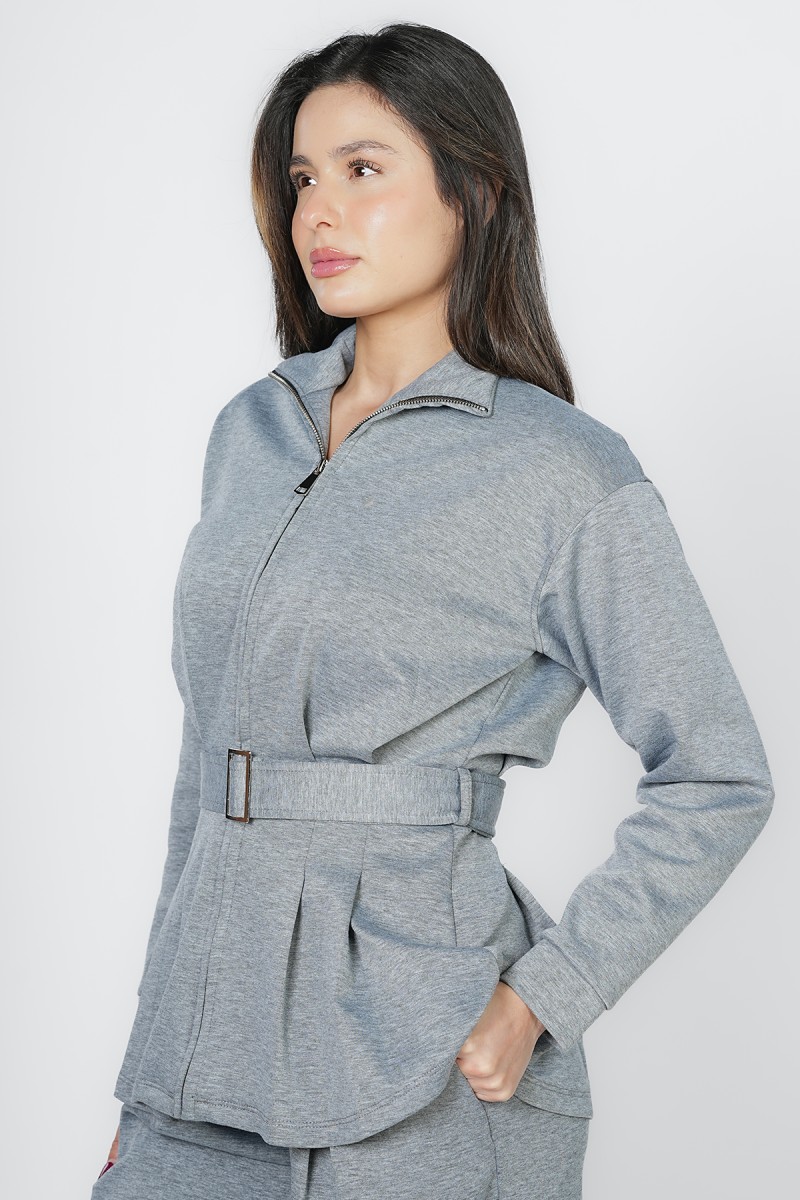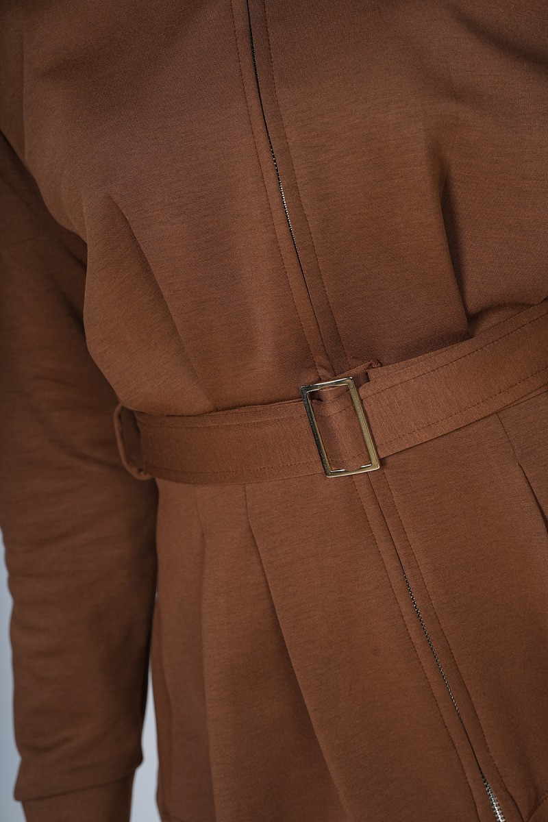 Accueil > Vestes > Veste Zippée à Basque et Ceinture Ajustable - Col Montant