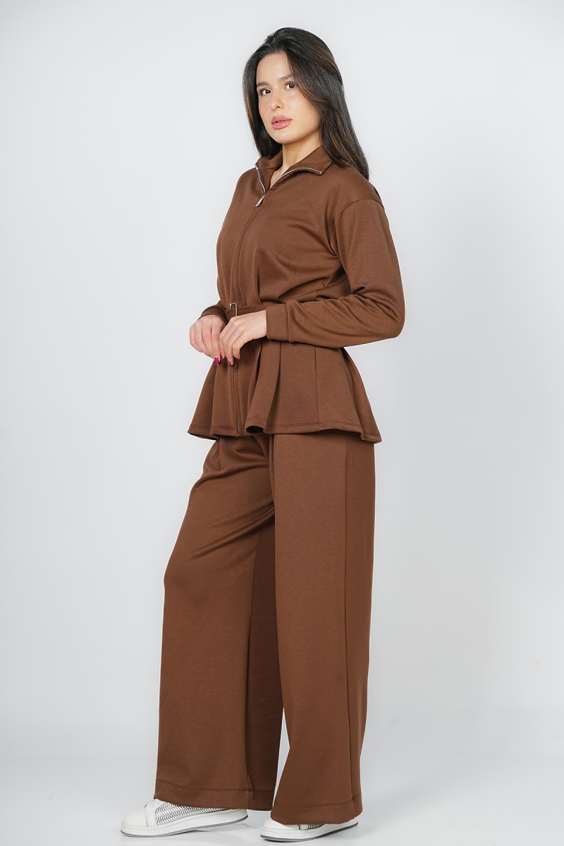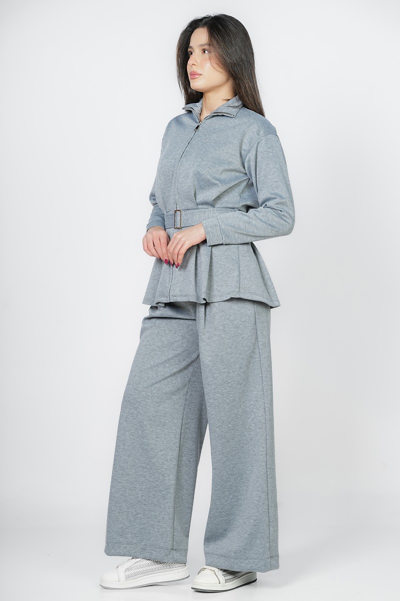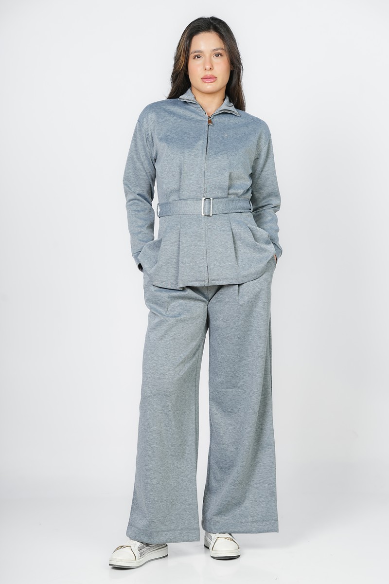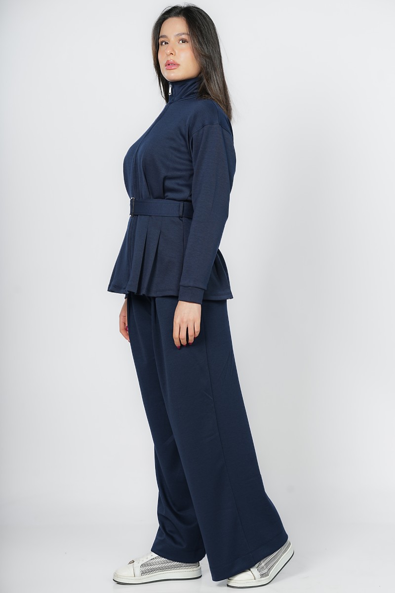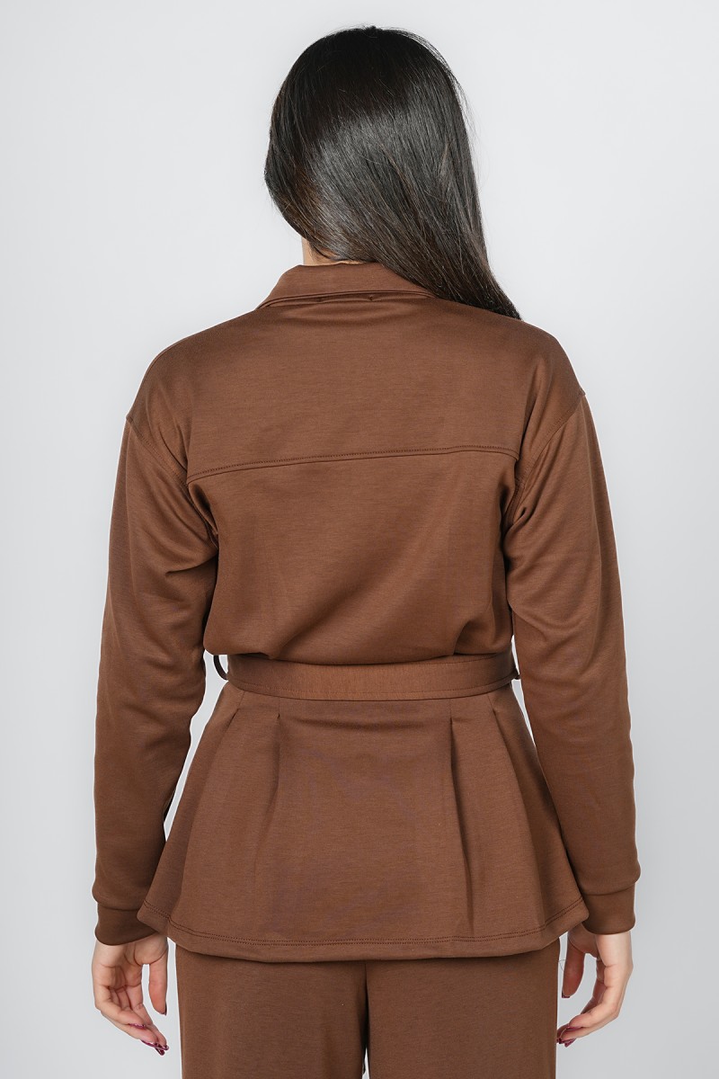 Accueil > Vestes > Veste Zippée à Basque et Ceinture Ajustable - Col Montant