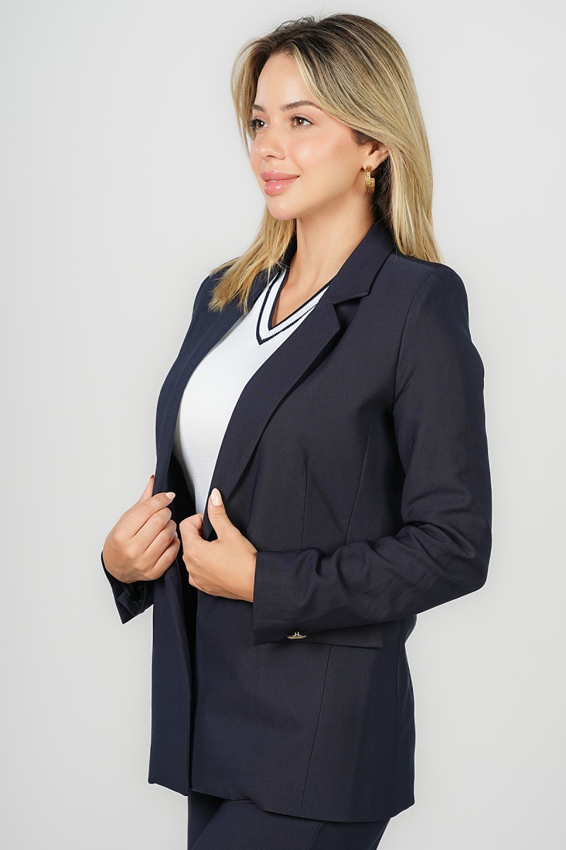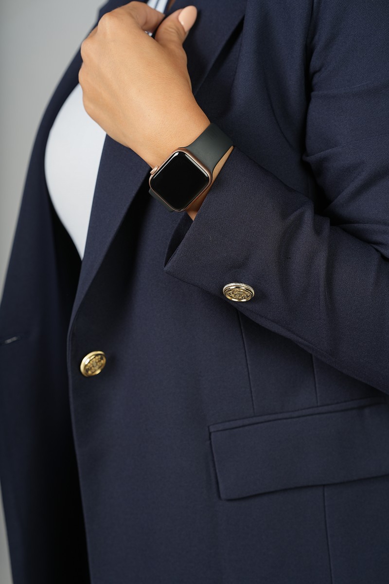 Blazer bleu marine chic et élégant, sublimé par des boutons dorés pour une touche sophistiquée. Sa coupe structurée et son style intemporel en font une pièce incontournable pour un look moderne et raffiné.