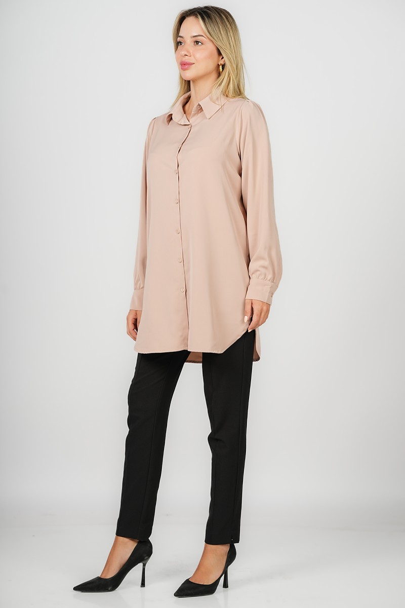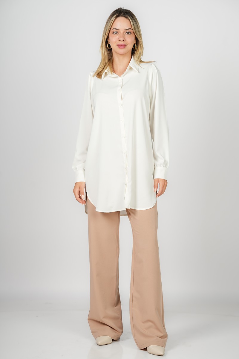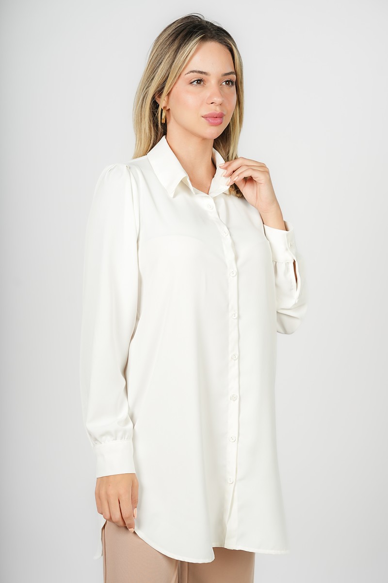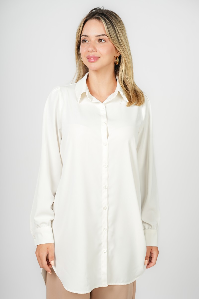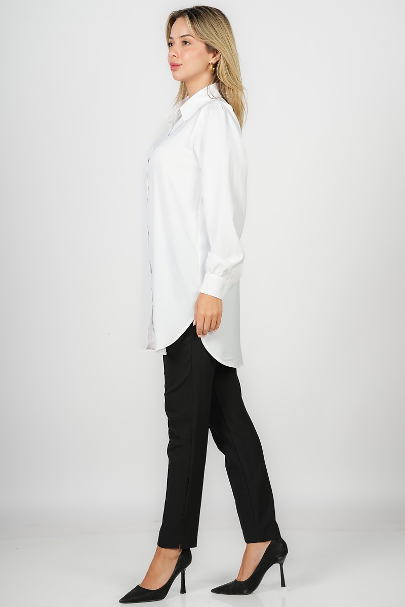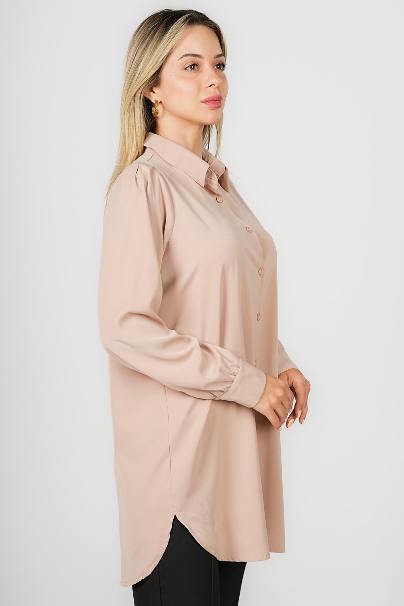 Chemise longue au style moderne et élégant, confectionnée dans un tissu fluide et confortable. Idéale pour un look décontracté ou chic selon vos envies.