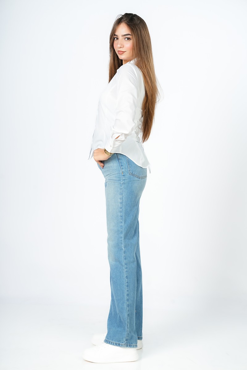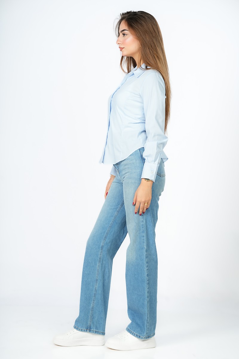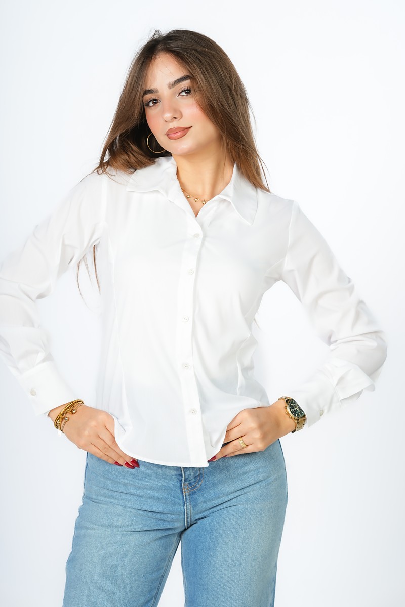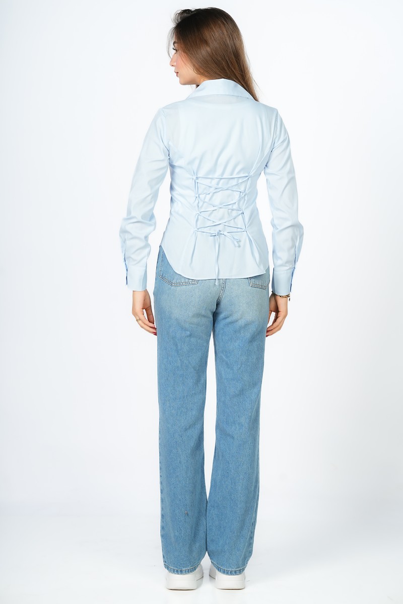 Chemise unie à la coupe impeccable, révélant un laçage sophistiqué au dos pour une silhouette architecturale et ultra-moderne. L'équilibre parfait entre l'épure du col classique et l'audace d'un détail couture qui fait toute la différence.