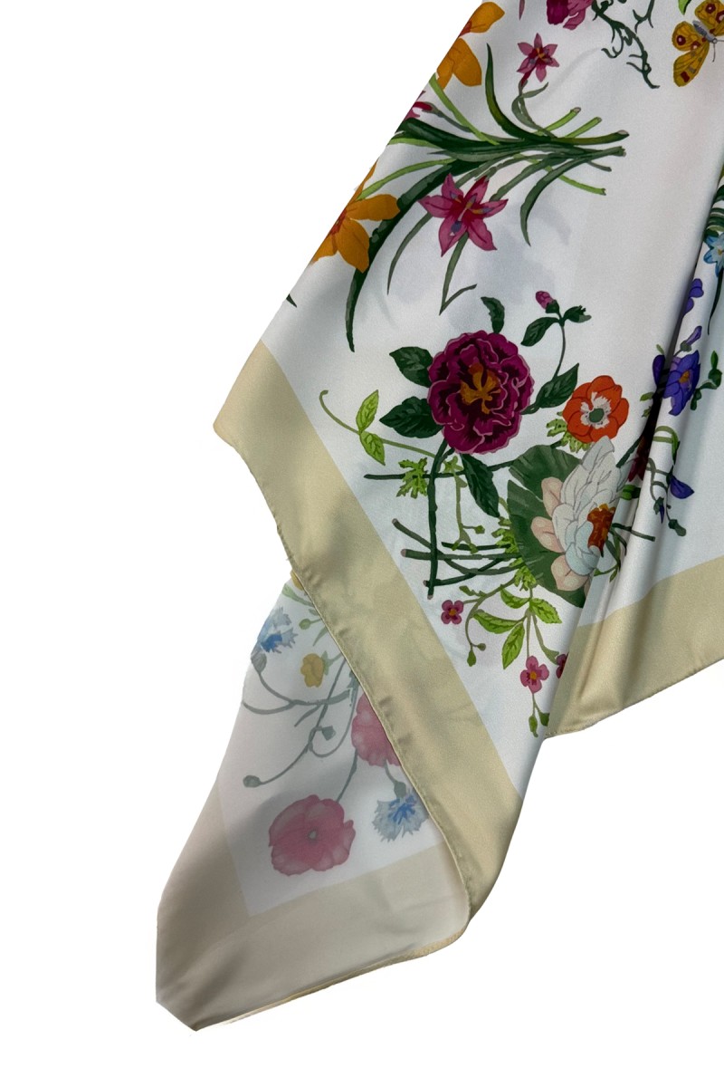 Foulard élégant aux imprimés d’exception et au tombé noble. Un accessoire haut de gamme, facile à porter, qui apporte une touche sophistiquée et intemporelle à toutes vos tenues.