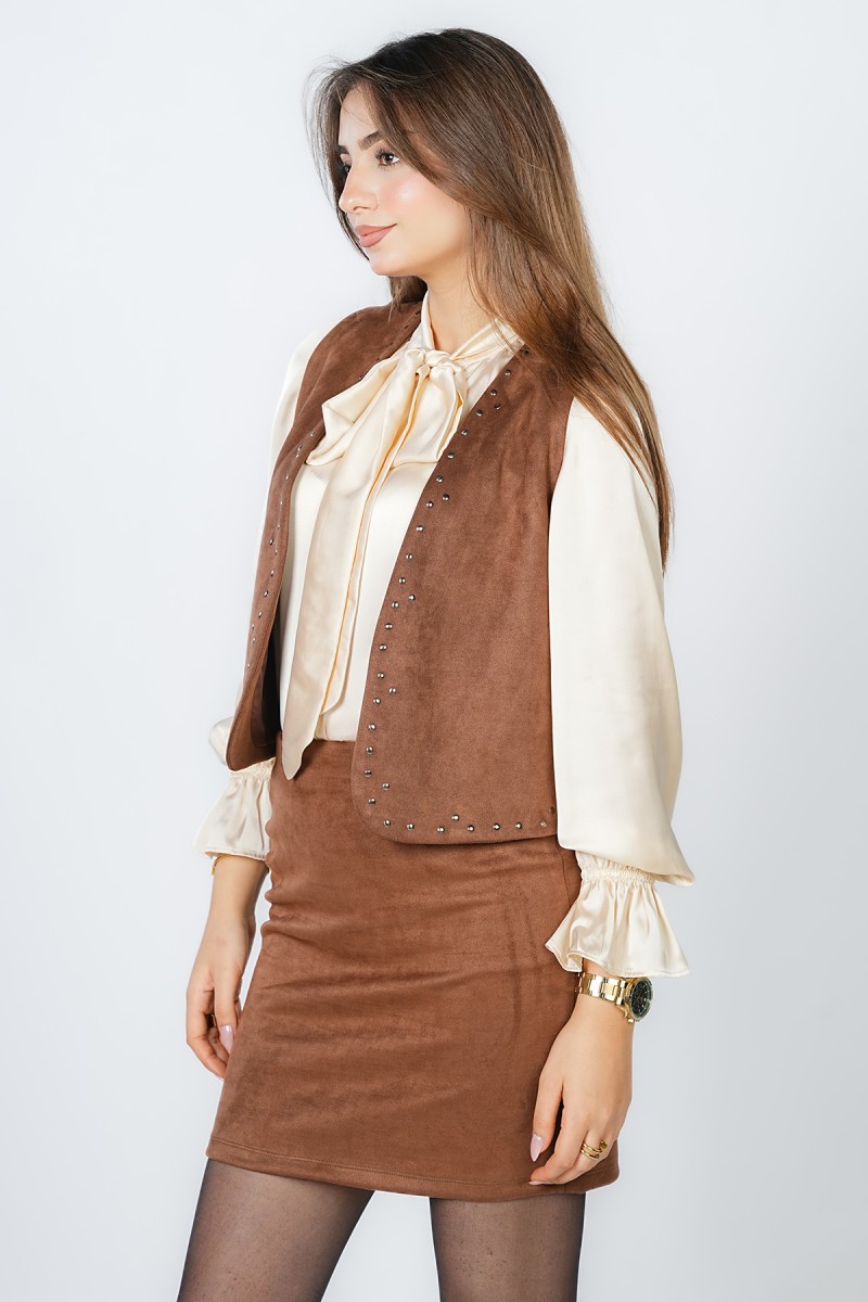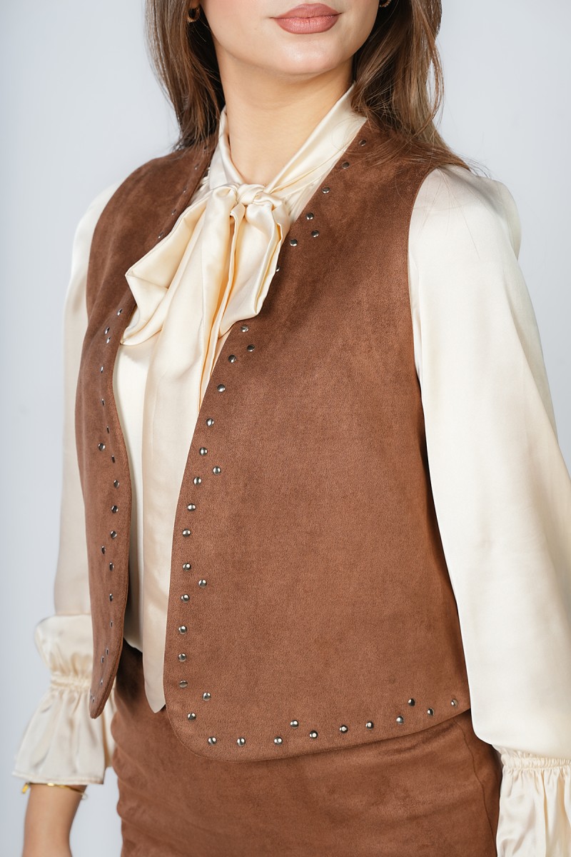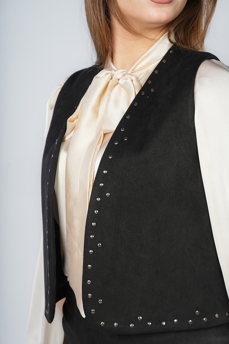 Accueil > Vestes > Gilet Court sans Manches à Détails Cloutés