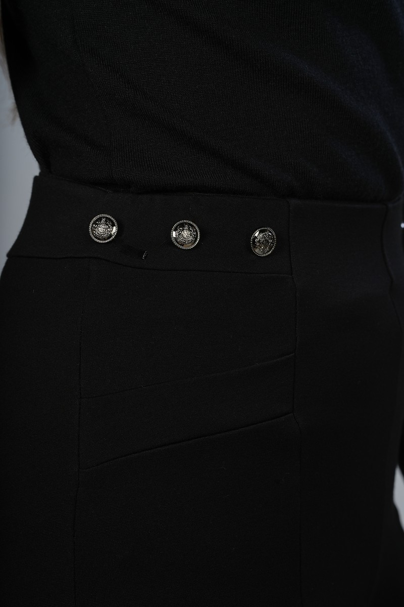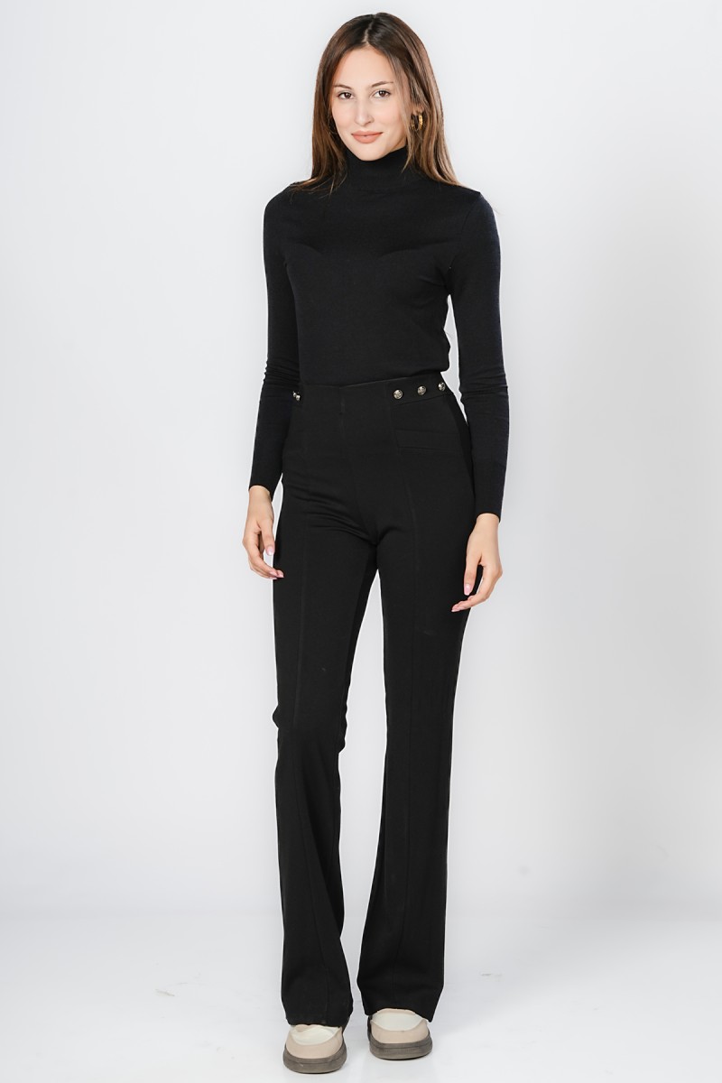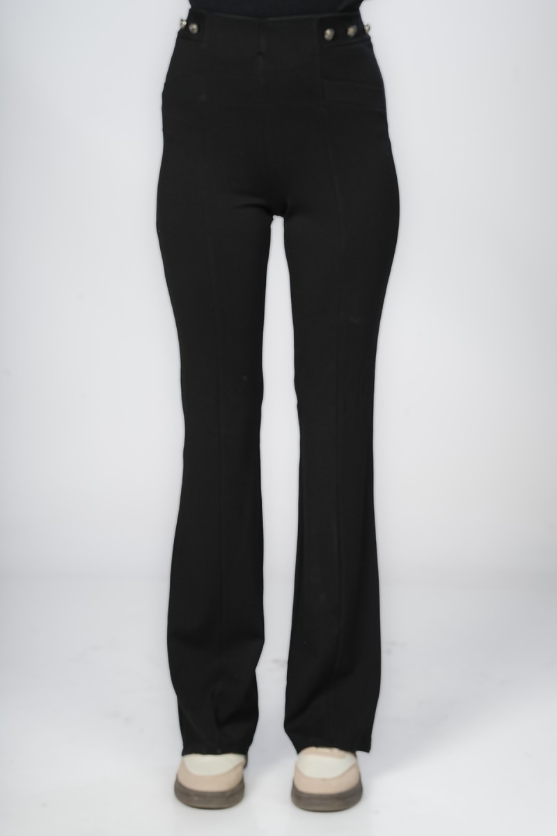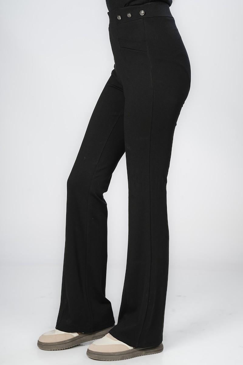 Legging évasé taille haute, confortable comme un legging mais élégant comme un pantalon. Coupe flatteuse, détails de boutons métalliques à la ceinture, parfait pour un look chic au bureau ou au quotidien.