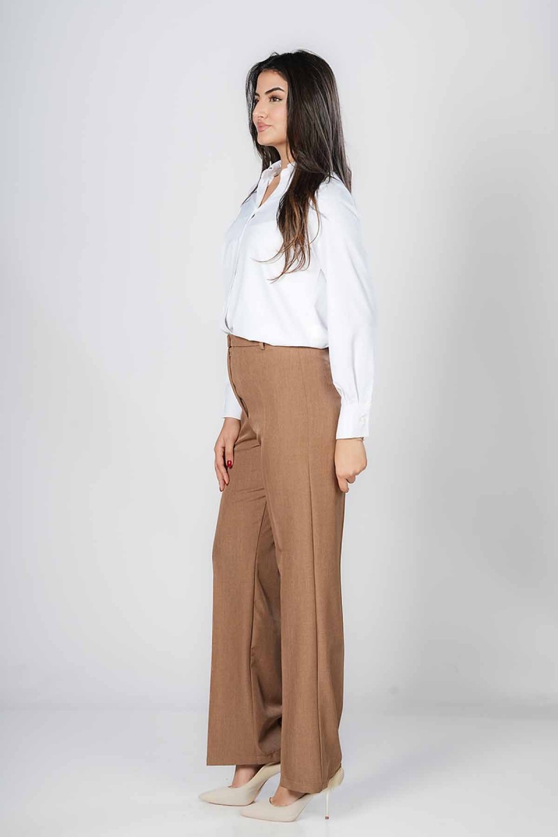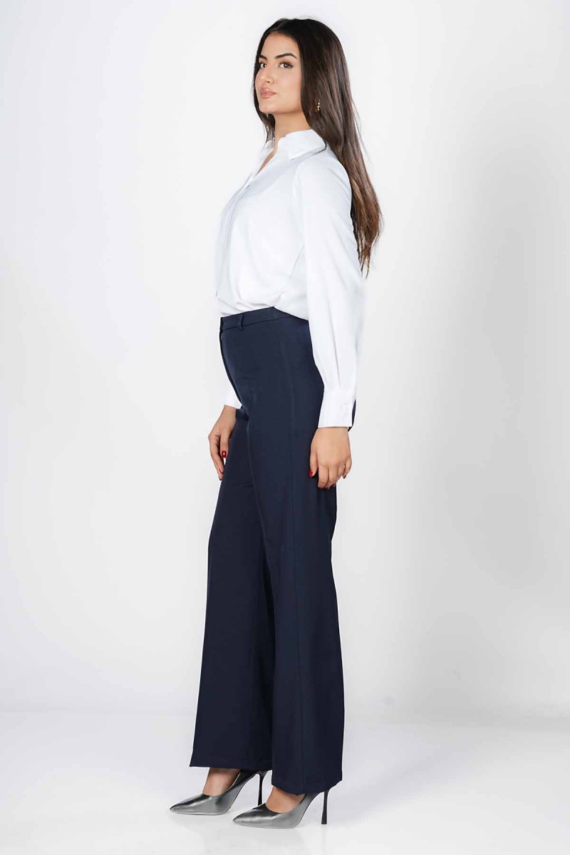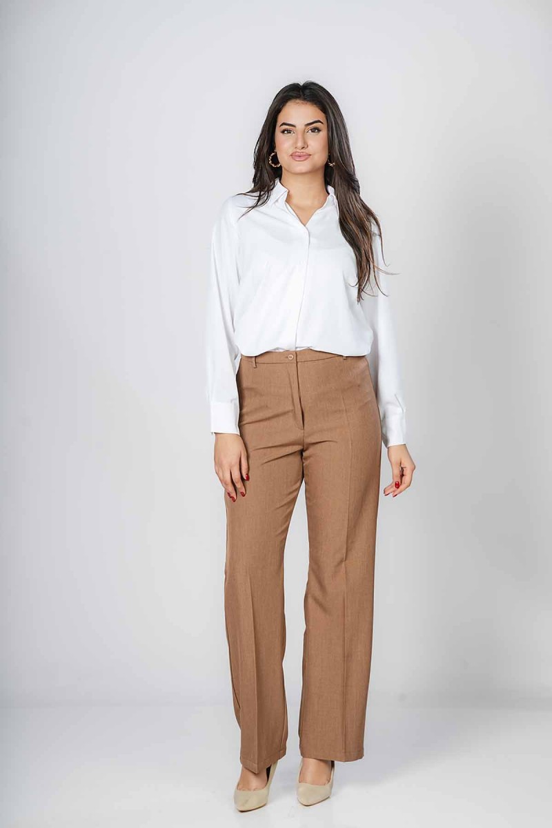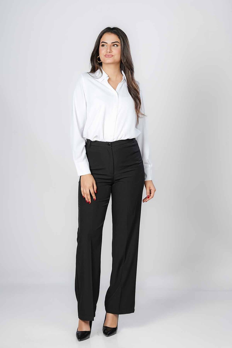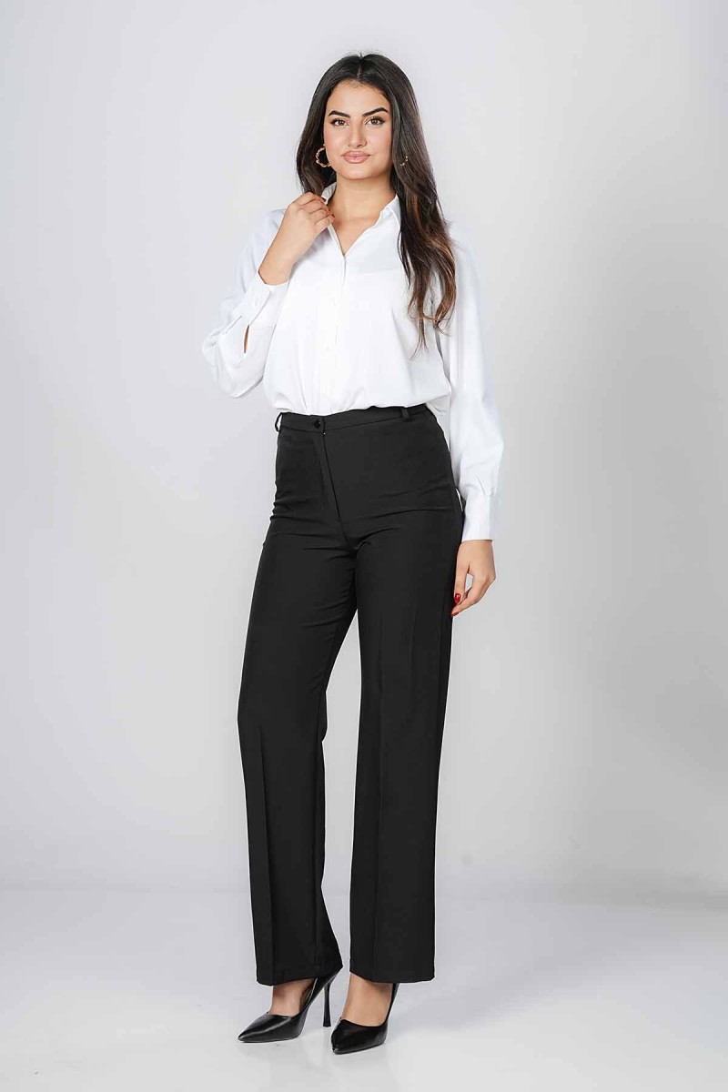 Pantalon droit élégant, confectionné dans un tissu fluide offrant un tombé impeccable. Sa coupe taille haute allonge la silhouette et assure un confort optimal au quotidien. Parfait pour un look chic, professionnel ou décontracté