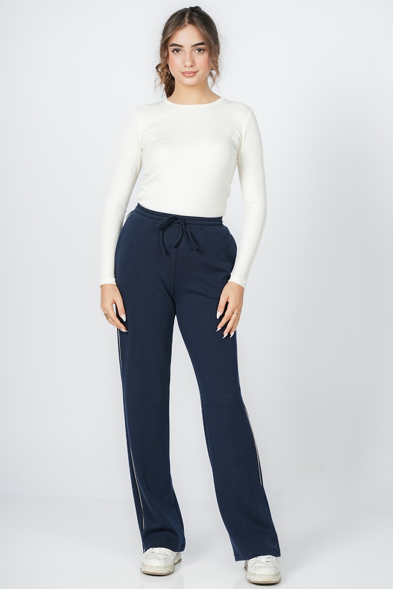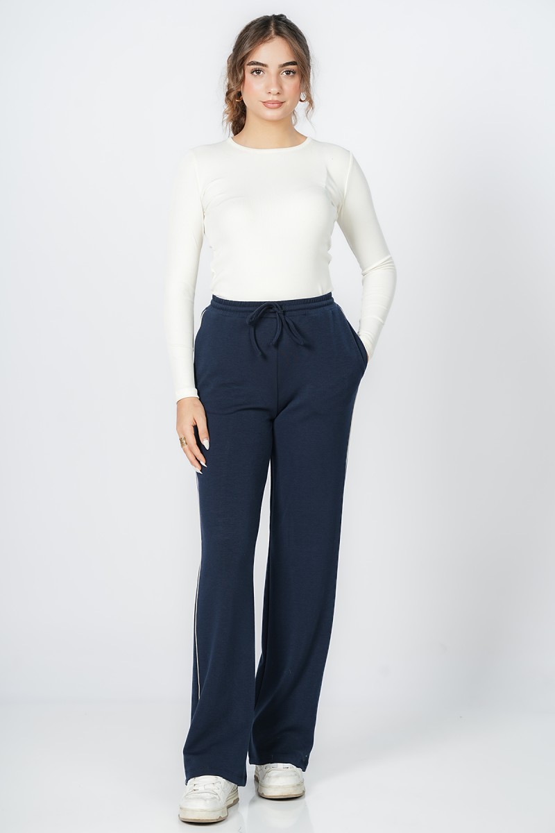 Pantalon jogging large avec nervures sur les côtés, Sa coupe ample et ses détails soignés en font une pièce idéale pour un look confortable.