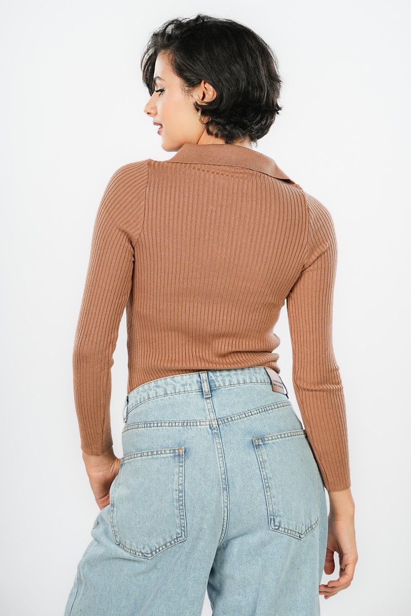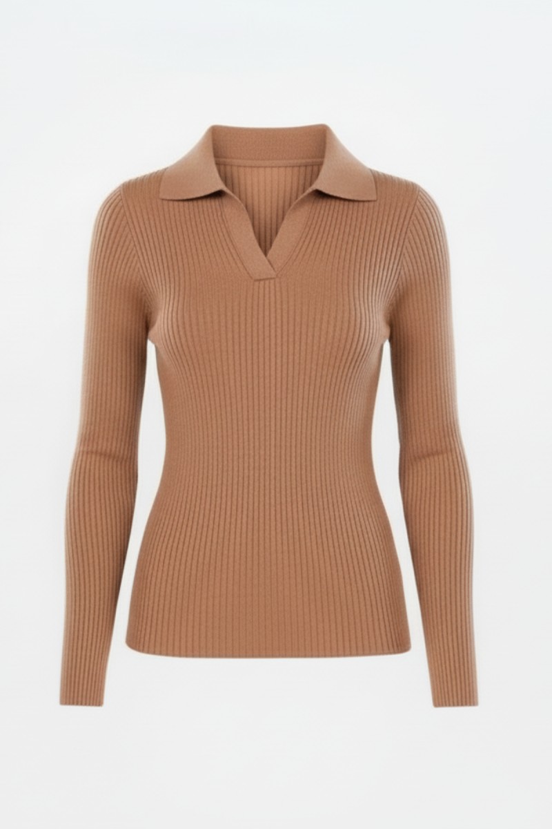 Pull maille fine courte à col polo, confortable et ajusté. Facile à porter avec jean, pantalon ou jupe pour un look moderne au quotidien.