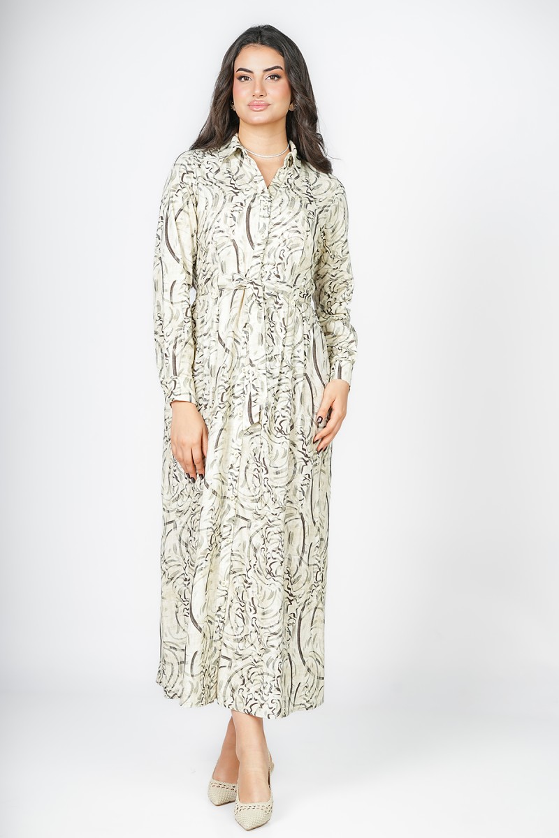 Cette robe chemise longue imprimée allie élégance et confort. Sa coupe ample et sa ceinture nouée sous la poitrine subliment la silhouette, tandis que les manches longues et la fermeture boutonnée sur toute la longueur apportent un look chic et pratique. Légère et fluide, elle est parfaite pour le quotidien et toutes vos sorties estivales.