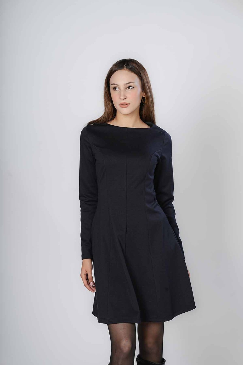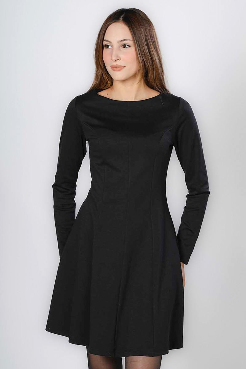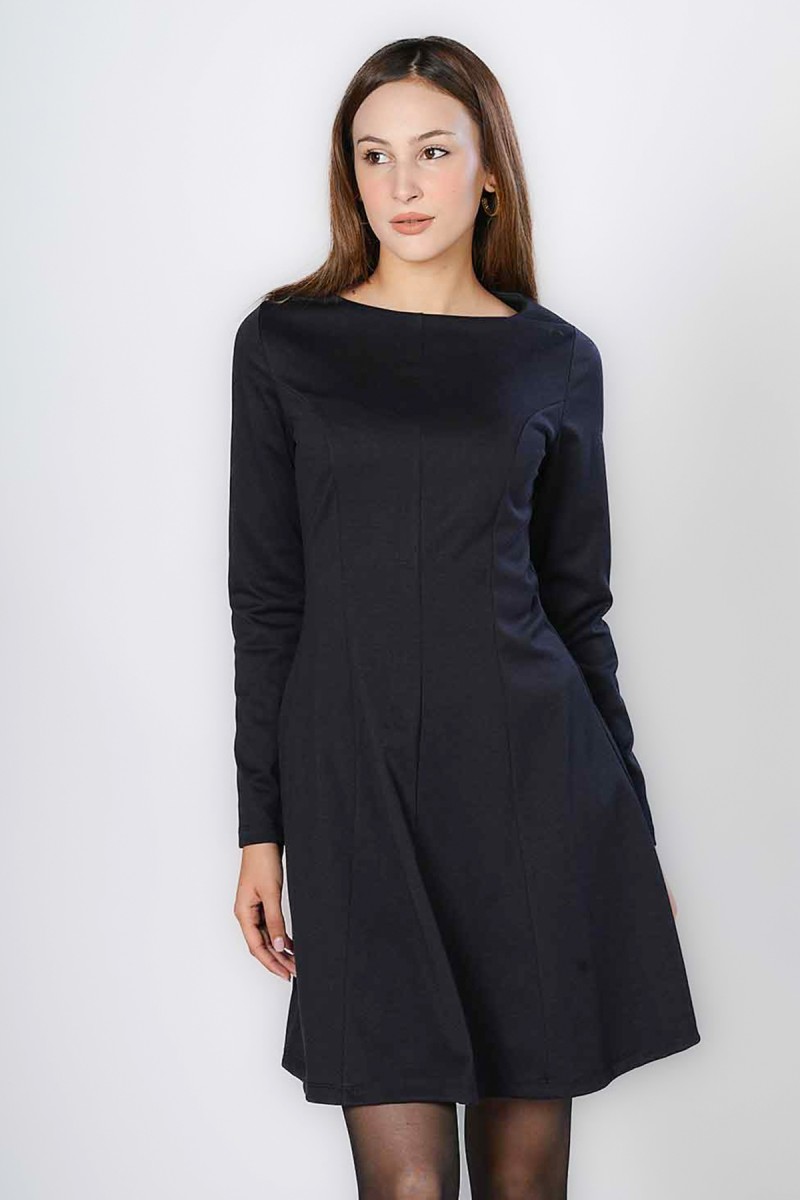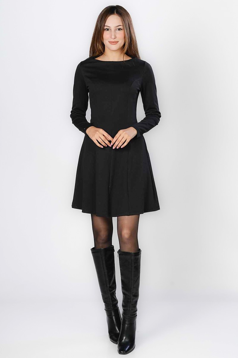 Cette robe mini incarne l'élégance classique avec sa coupe A-line flatteuse et ses manches longues. Le col bateau discret ajoute une touche de sophistication, rendant cette robe idéale pour un cadre professionnel comme le bureau ou une occasion nécessitant une tenue soignée. Facile à styliser avec des bottes ou des escarpins, c'est une pièce essentielle et polyvalente