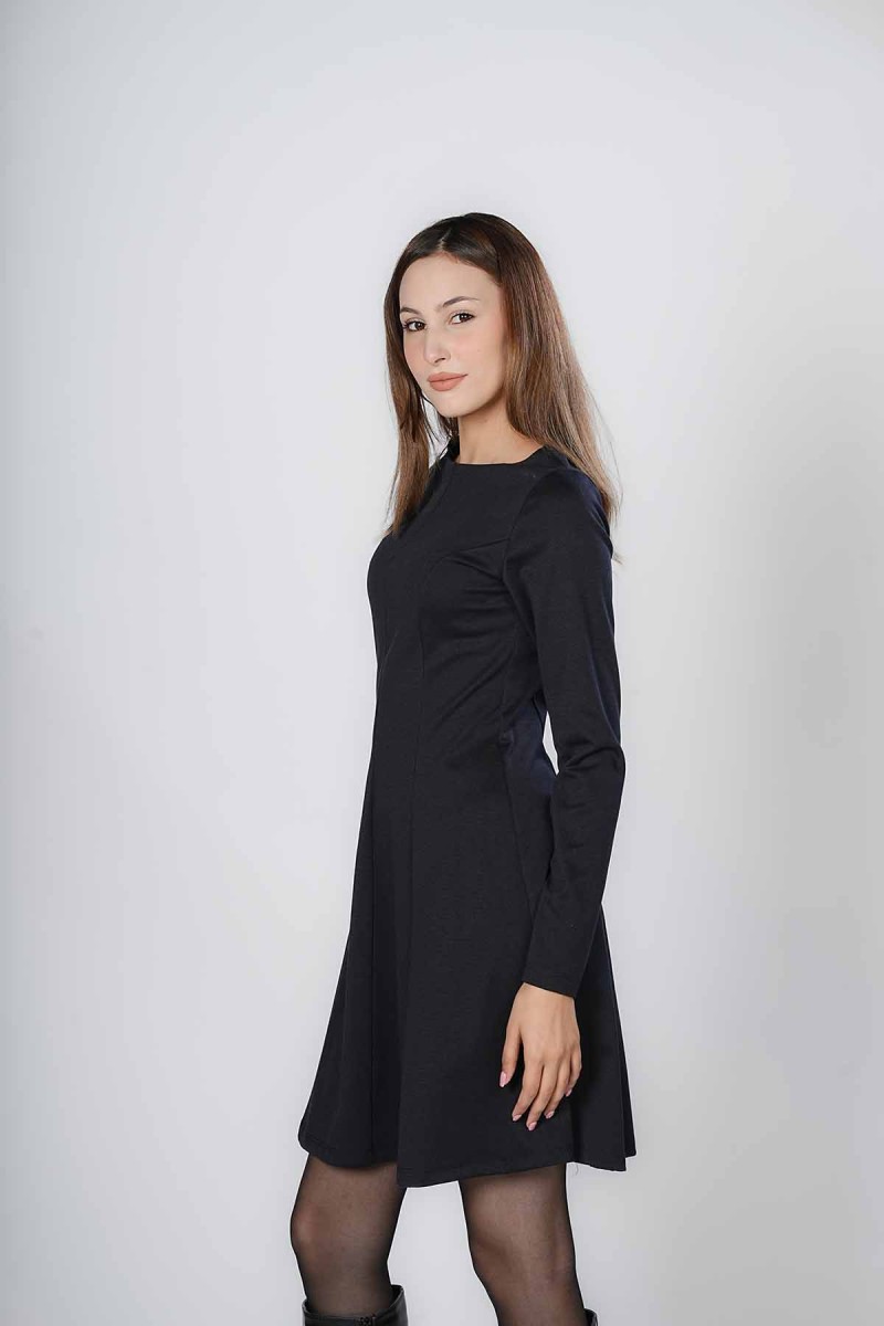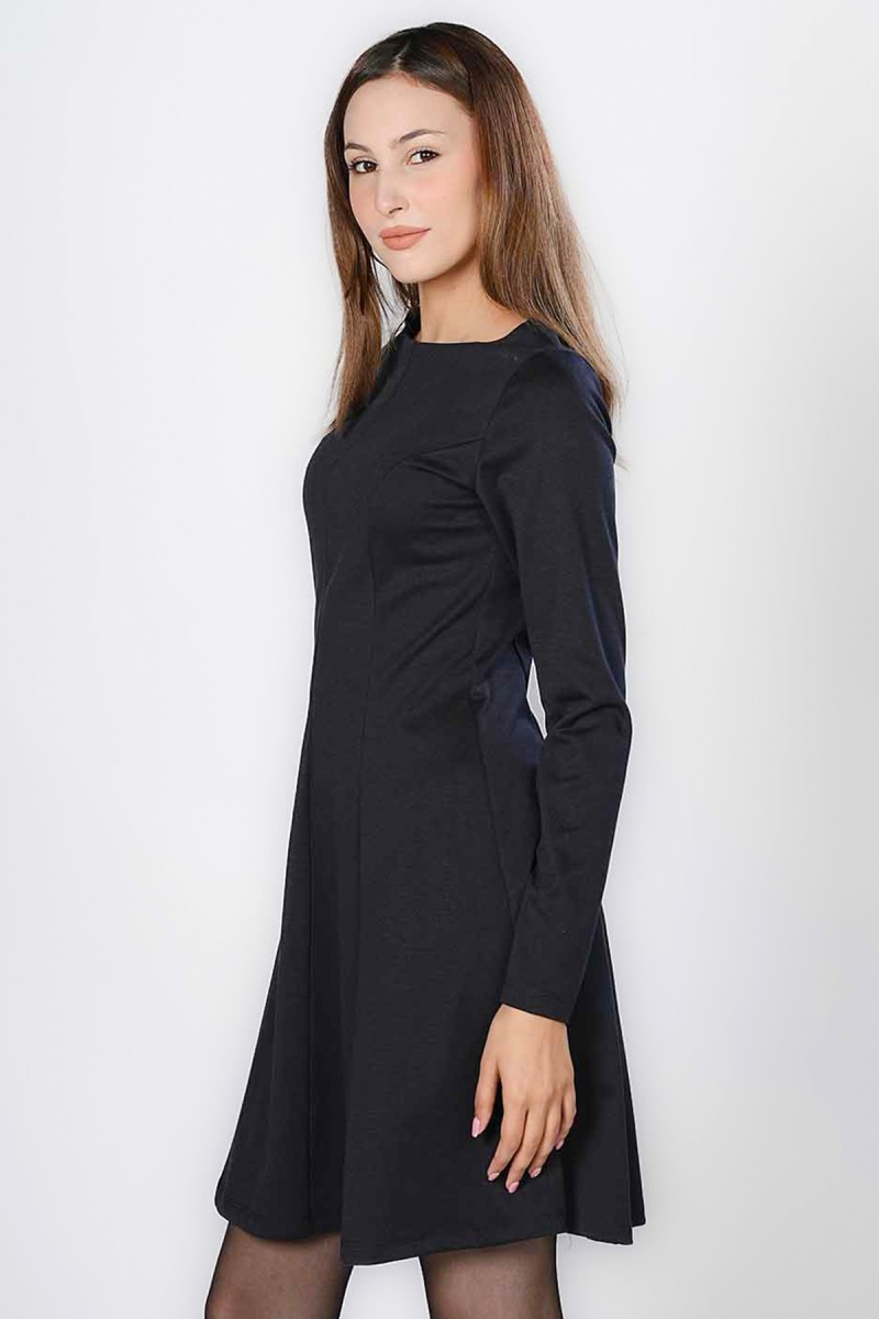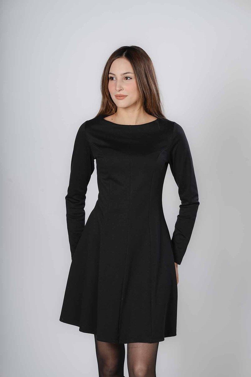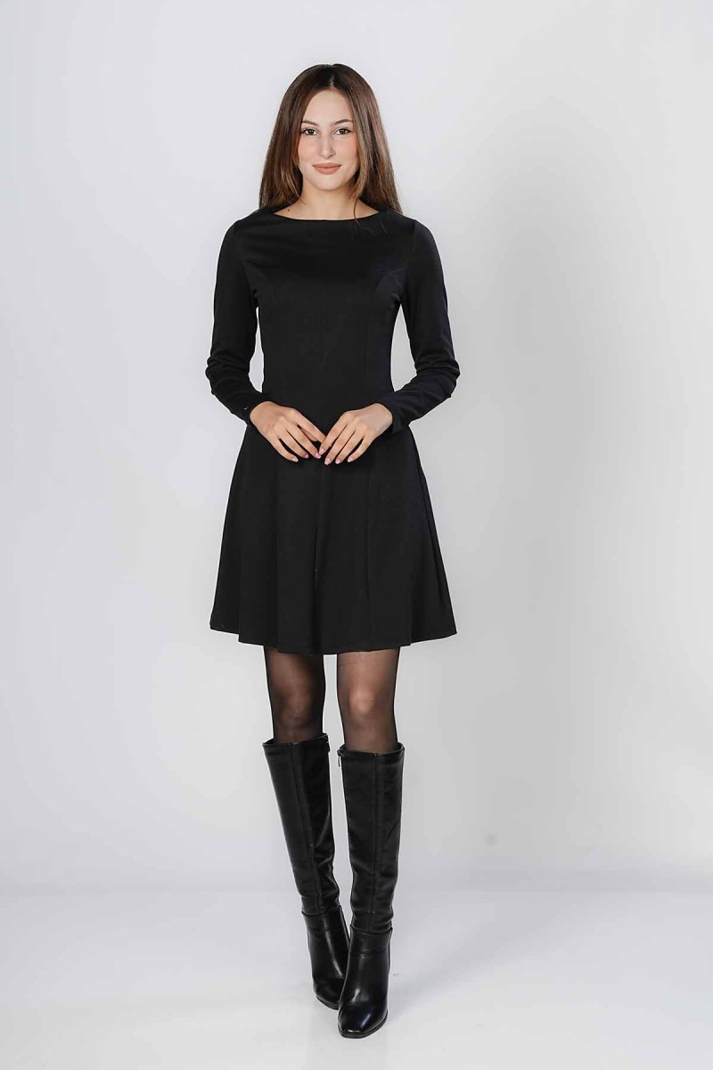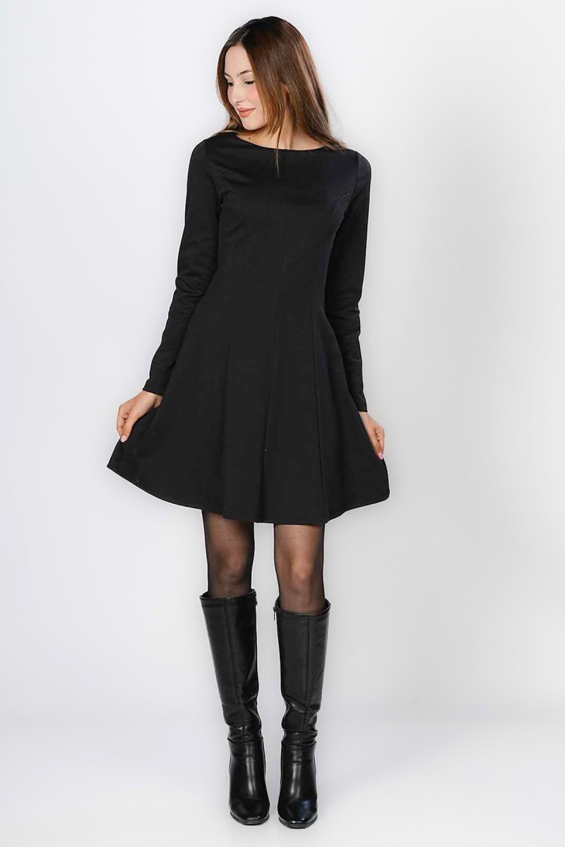 Cette robe mini incarne l'élégance classique avec sa coupe A-line flatteuse et ses manches longues. Le col bateau discret ajoute une touche de sophistication, rendant cette robe idéale pour un cadre professionnel comme le bureau ou une occasion nécessitant une tenue soignée. Facile à styliser avec des bottes ou des escarpins, c'est une pièce essentielle et polyvalente