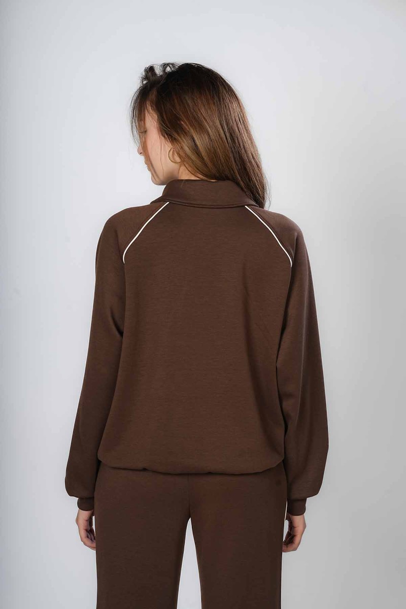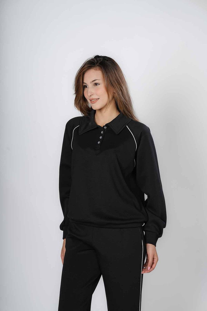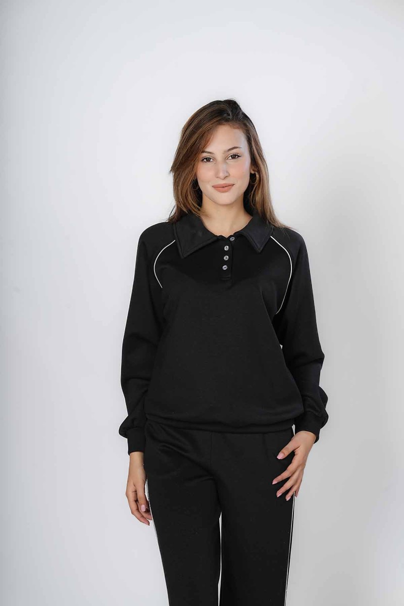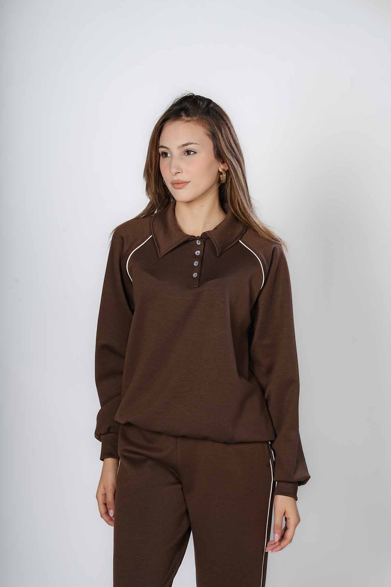 Pull à manches longues doté d’un col à boutons et de lignes contrastées le long des épaules. Sa coupe ample offre un confort optimal, idéal pour un look casual et moderne