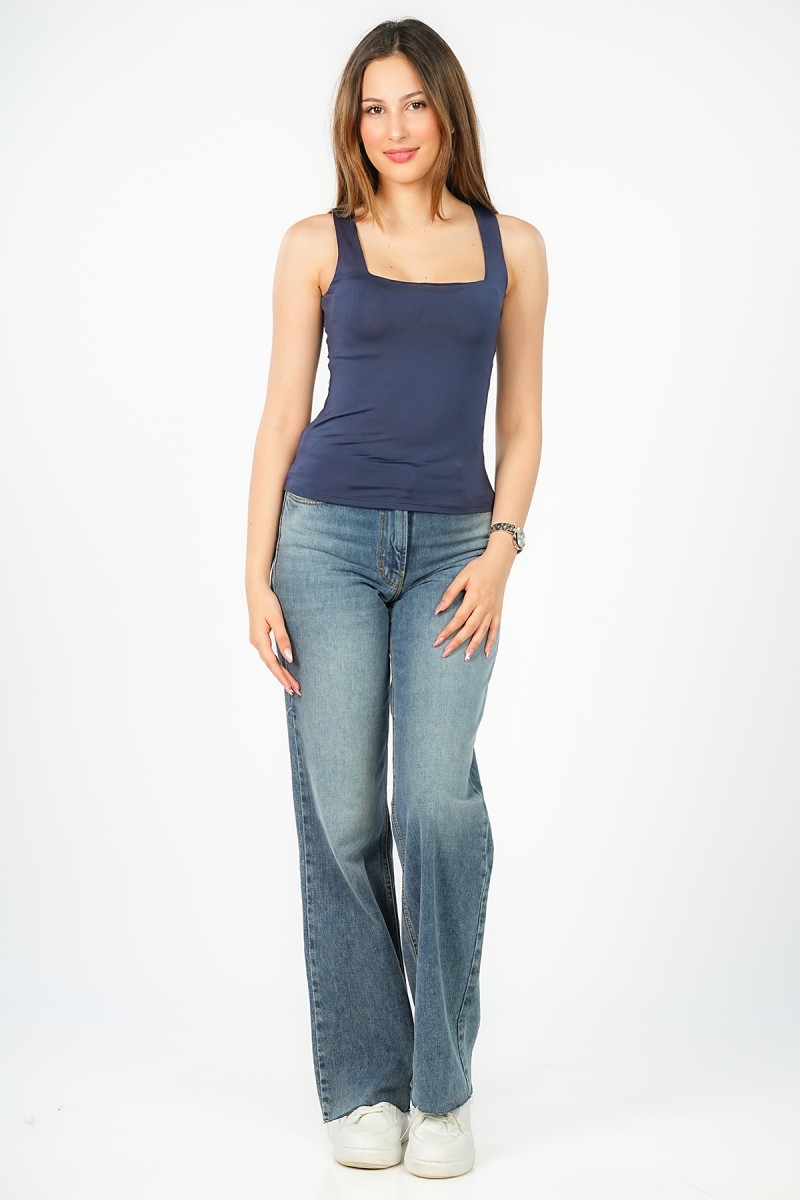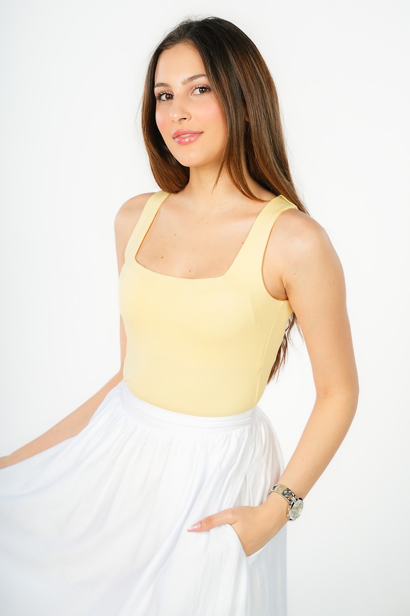 Top Basique à Encolure Carrée